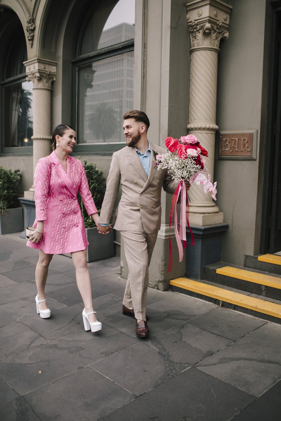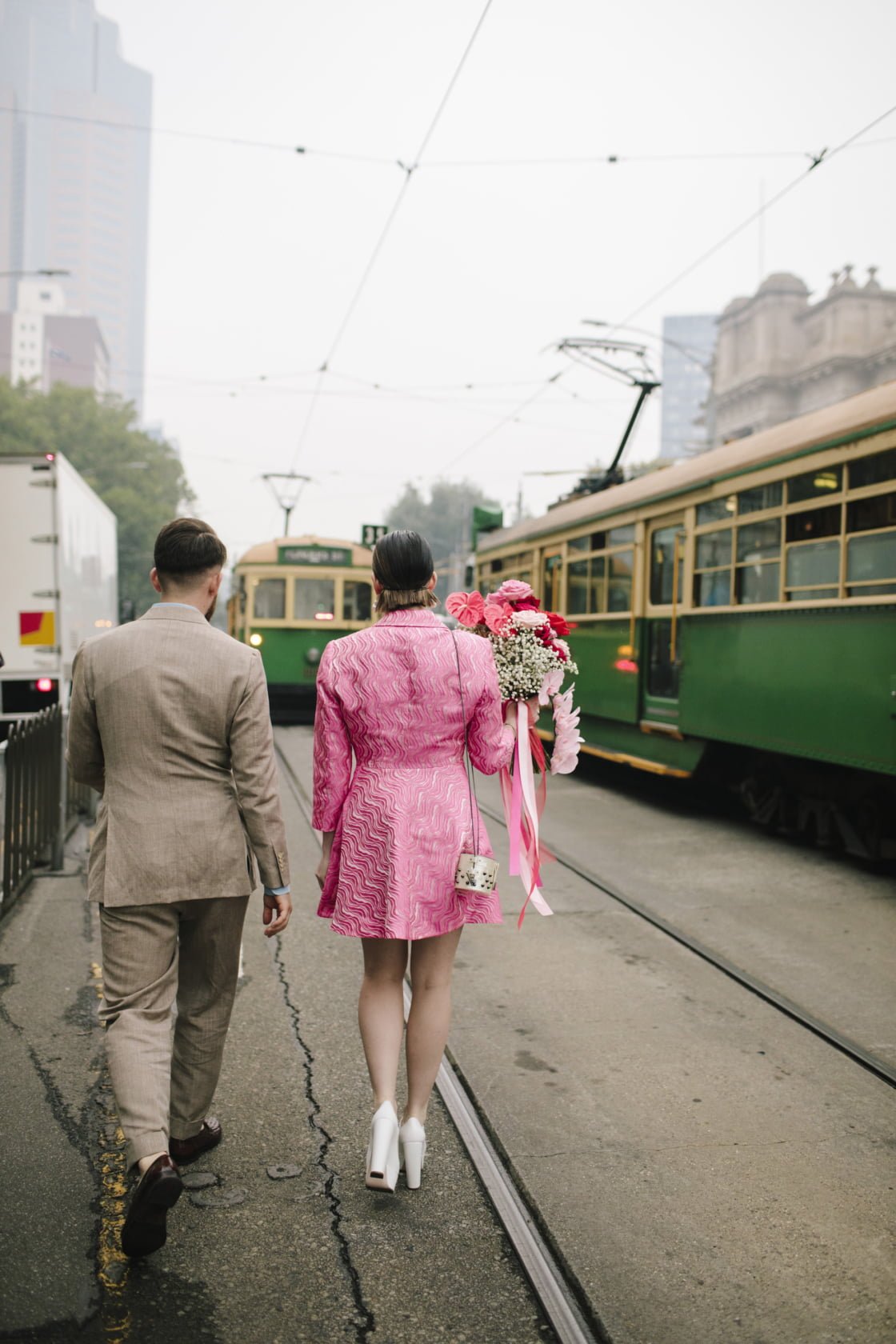 CONTRIBUTING VENDORS Photographer It’s Beautiful Here Florist Bloom Boy Stationery & Signage Mikey Ting Ceremony Victorian Marriage Registry (Old Treasury Building) Reception The Everleigh Catering Bar Margaux Cakes Torte by Mirjana Entertainment The Shuffle Club Rings Seb Brown THE BRIDE Bridal Gown Rotate by Birger Christesen Alterations Jose Zarpan Veil Dove Grey Bridal via the anti-bride Reception Dress Caroline Constas Shoes miu miu Reception Shoes Vintage miu miu via Vestiaire Collective Earrings Reliquia Collective Bridesmaid Dresses Jonathan Simkhai Bridesmaid Shoes Francesco Russo Hair & Makeup Danny Puopolo THE GROOM Suit & Shirt Oscar Hunt Tailors Shoes Vintage Bally via Vestiaire Collective Grooming Renard’s Barber Shop