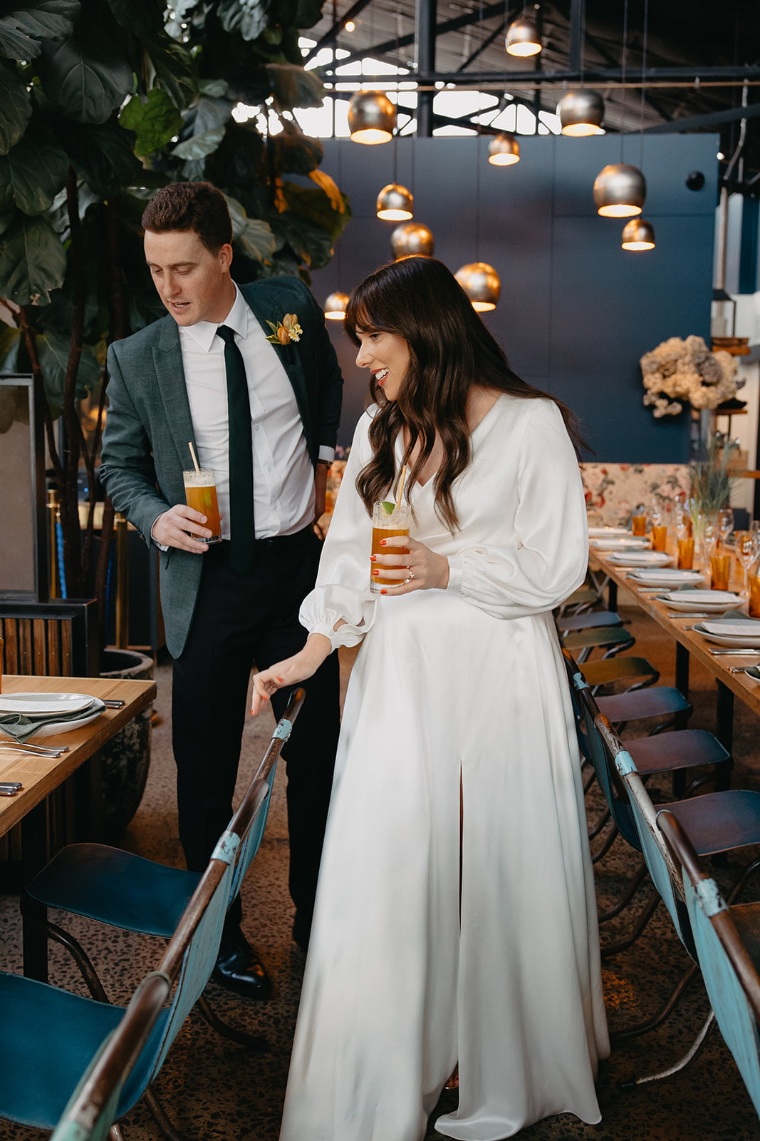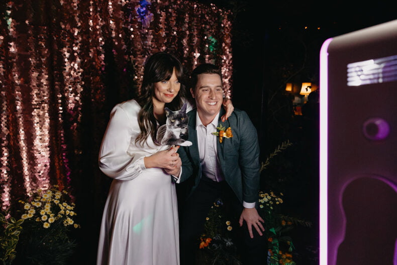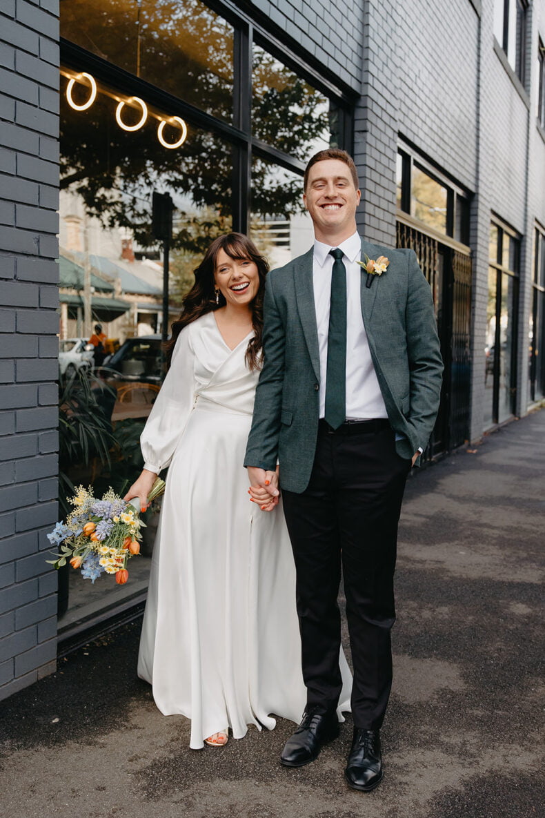 “We briefed our vendors with something like, ‘a casual, fun, indoor jungle, d-floor rager of a love party’ and ran with that vision!” says bride and groom, Dani and Adam, of their epic Melbourne wedding held at one of our favourite venues, Rupert on Rupert. These two lovely humans – together for seven years (as long as their cat Oscar has been alive “so it’s easy to keep track”) – say as a graphic designer and insurance broker, they perfectly balance each other out. “When it came to wedding planning, that meant I was off creating mood boards, designing stationery and briefing vendors with our vision, while Adam was the official master of the spreadsheet and made sure we could afford everything!” laughs Dani.