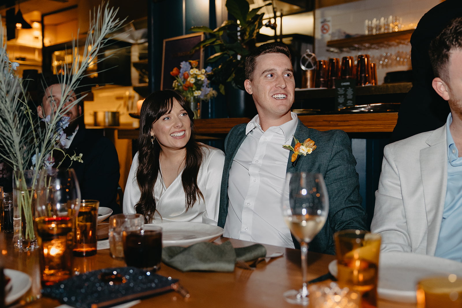 WE’RE SO GLAD WE… “Invested in superstar celebrant – Nat Sproal. Her ceremony set the tone for the night and she had our guests smiling, laughing and happy crying. Absolutely smashed it. She introduced us to the concept of ninja vows, which was such a fun way to kick off in a lighthearted way. Adam and I both wrote four or five vows for each other to blind read out on the day, so we got to stitch each other up a bit and share our in-jokes with our guests. eg. I wrote for Adam “I promise to accept that pizzas never have.. and never will… have nine slices”. Total stitch up. Nat empowered us to make the day our own with confidence and ease.”