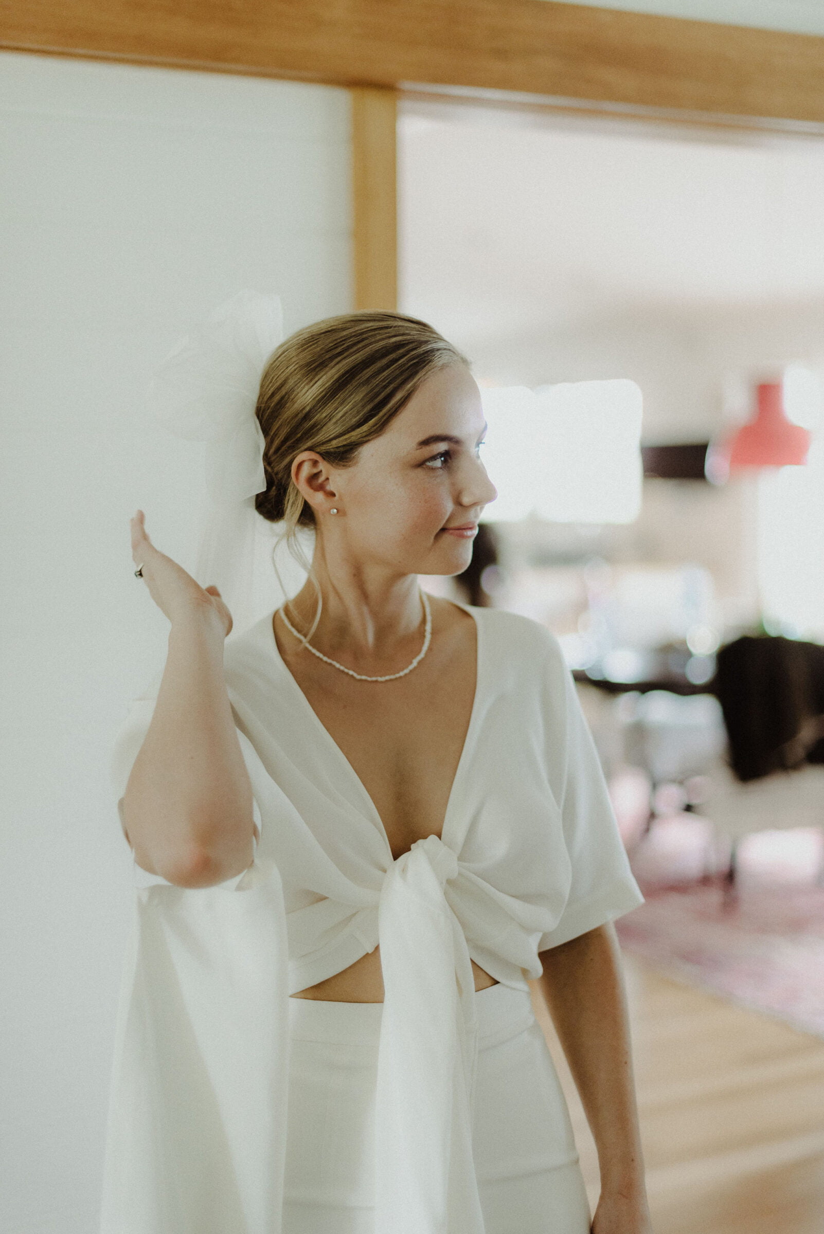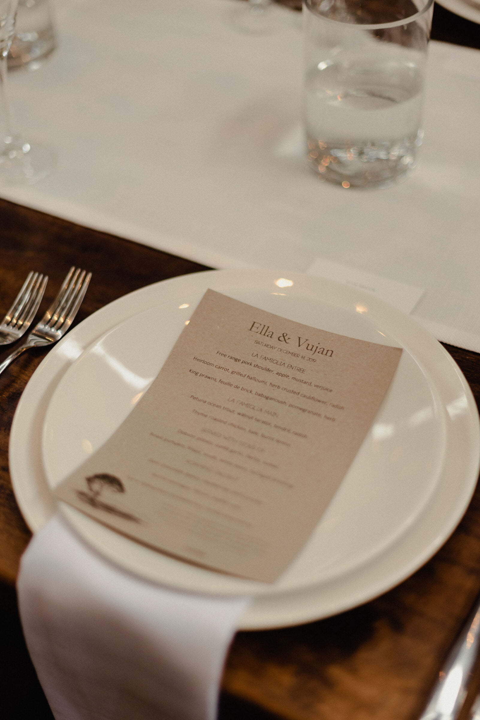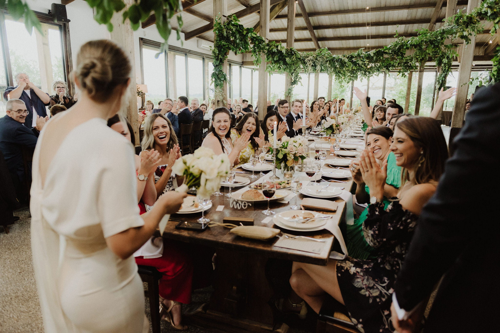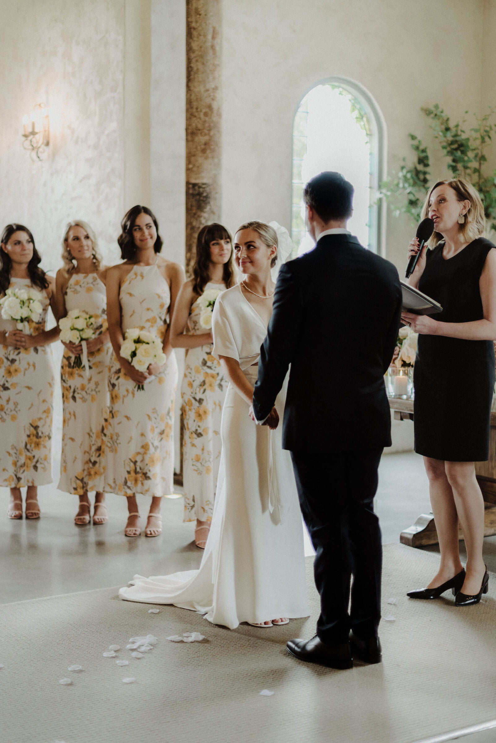 FAVE MOMENTS “I would have to say my top three moments were: the ceremony – walking with my dad down the aisle, finally getting to see Vujan. Reading our vows, and having petals thrown on us at the end! 2. Getting ready with my bridesmaids [who wore Bec + Bridge]. The night before and day of was so exciting and fun. The girls really made it special and stress-free. 3. Walking into the reception and seeing all of our favourite people there and knowing we had a whole night of good food and dancing ahead.”