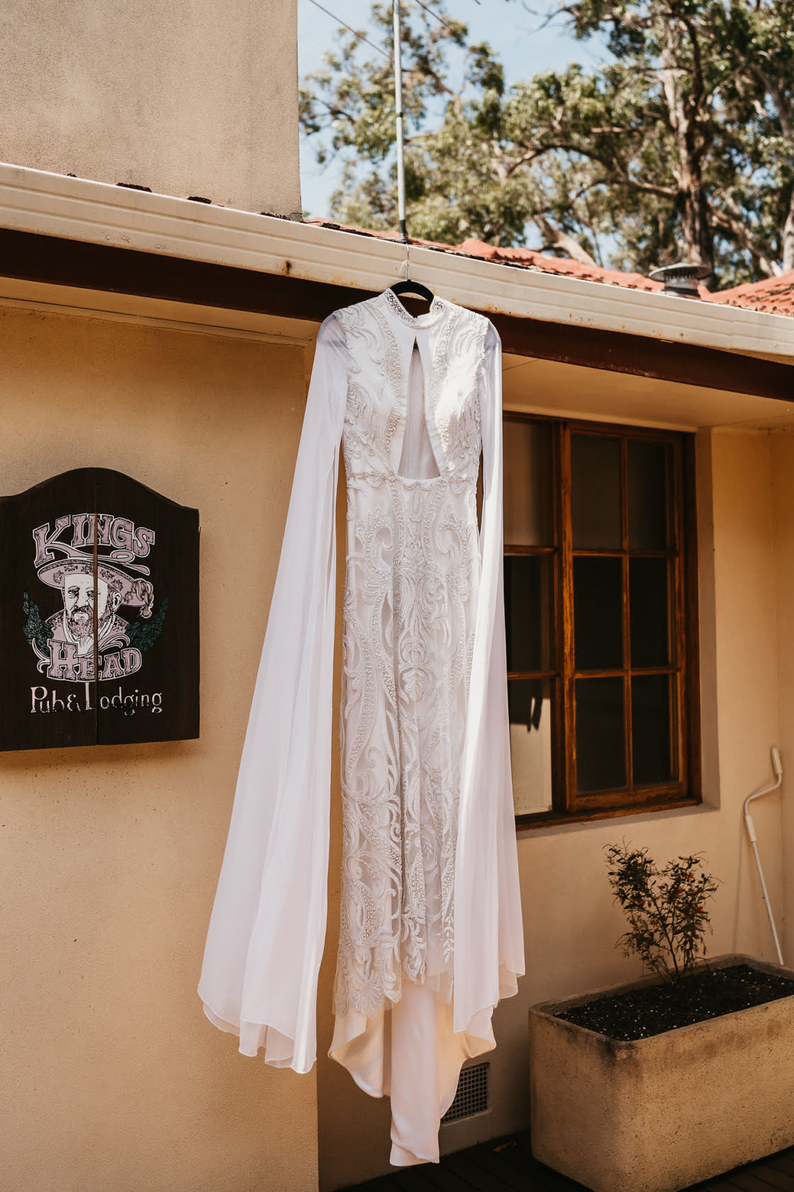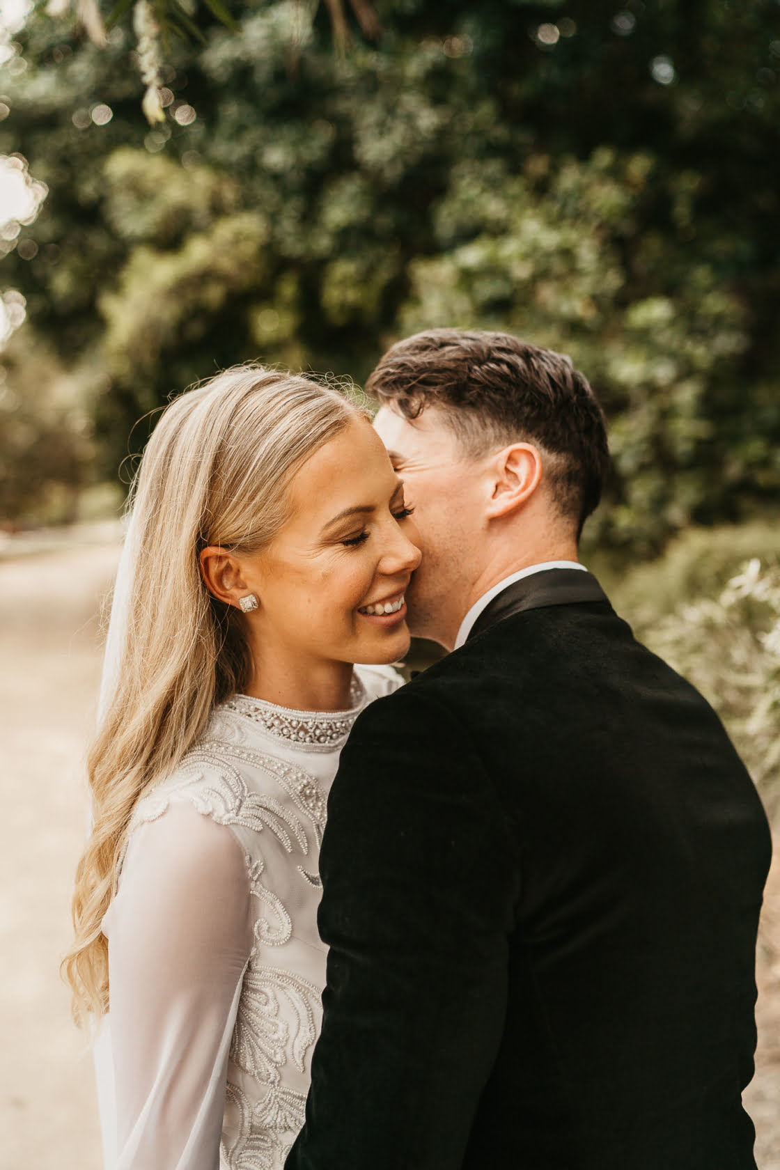 THE DRESS “My dress was my own design. I didn’t go and try on any wedding dresses because I knew I wanted something different. I love extravagant sleeves so I definitely wanted to incorporate that. I also get a red rash over my chest, shoulders and neck when I’m nervous/anxious so I had that in the back of my mind. I took inspiration from a couple of photos I found online. It took around 4 months to make. Tania Stokes, my dressmaker, was incredible. She just got my vision instantly and made it even better than I could have imagined. I loved everything about this experience. There was a bit of a hiccup with my material in which the wrong colour was ordered, so we ended up changing the lace completely which actually worked out for the better because it had amazing pearl and beaded detail which really stood out.”