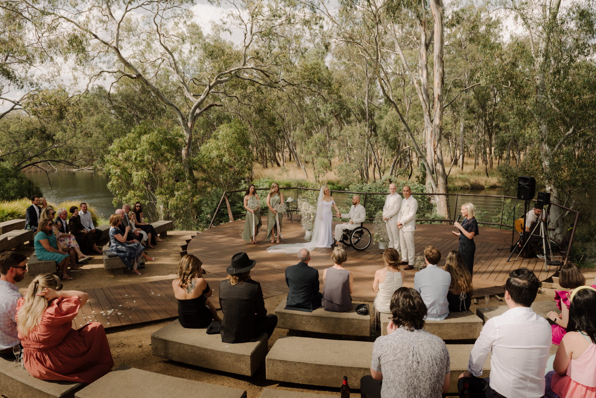 WE’RE REALLY GLAD WE… “Had the wedding at a venue like Mitchelton Wines where the ceremony, reception and accommodation was all in one spot. We didn’t have to waste the day travelling. We had the ceremony on the river, canapés on the lawn and the reception in the cellar, which were all such amazing and different experiences, yet everything was literally less than 100 metres away. All of our friends stayed at the hotel so the next morning we got to hang out poolside and have a big breakfast together.”