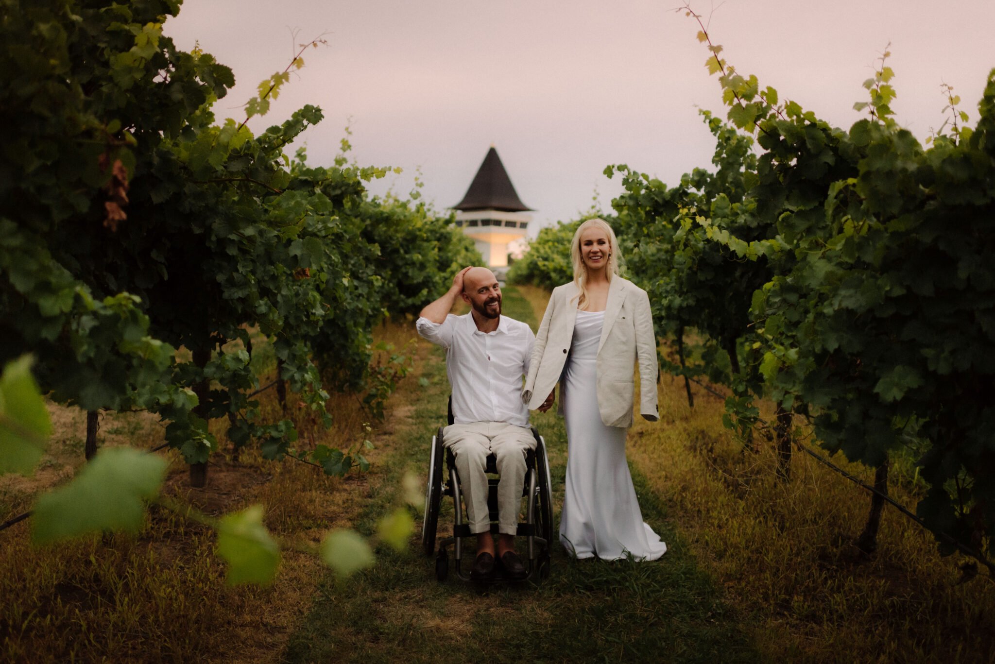 For creatives, Emma (a graphic designer) and Nick (a photographer), being exposed to such beautiful inspo on the daily made it hard to settle on a direction for their wedding, “But once we did, we were pretty good at sticking to it,” says Nick, who was suited up by Oscar Hunt. Held at a stunning winery an-hour-and-a-half out of Melbourne with entertainment provided by the legends at Logan Ent., Emma and Nick’s weekend celebration went off without a hitch, and marked the fifth anniversary of their first date. Love that! One of our favourite duos She Takes Pictures, He Makes Films were there to document all those feelgood moments. We’ll let Emma and Nick fill you in on the best bits…