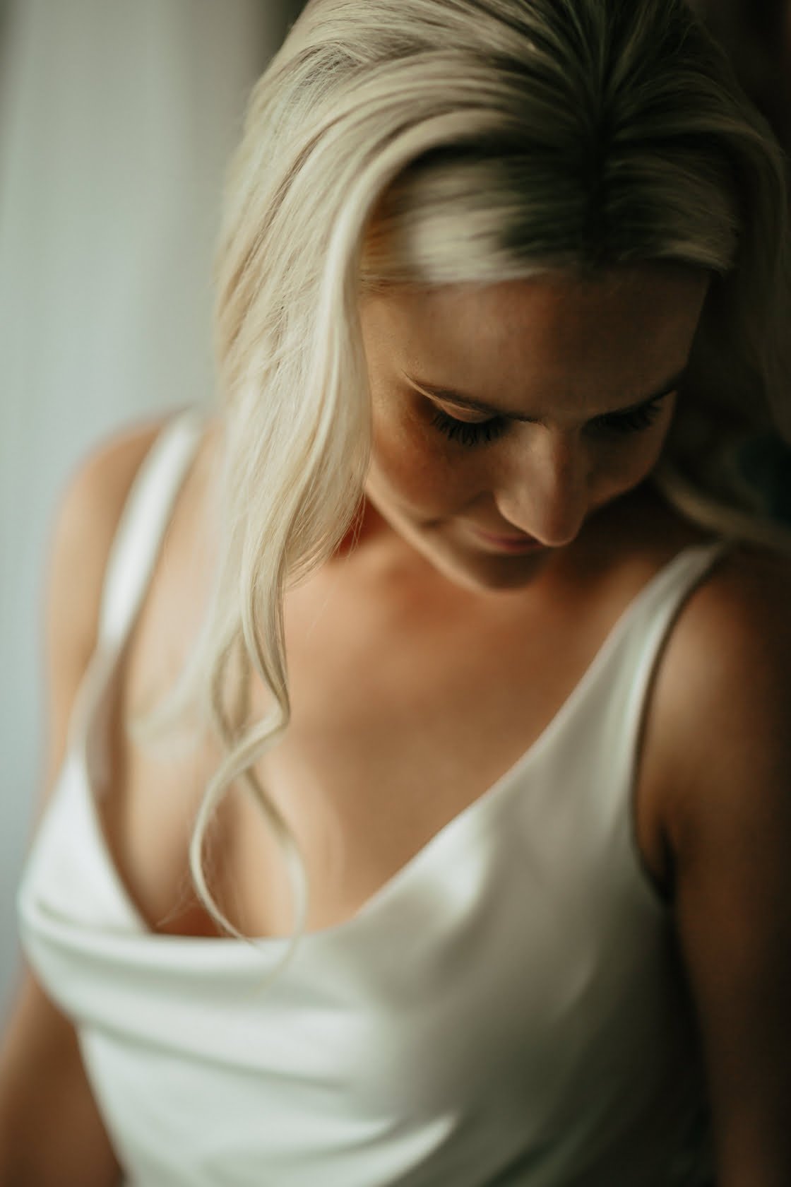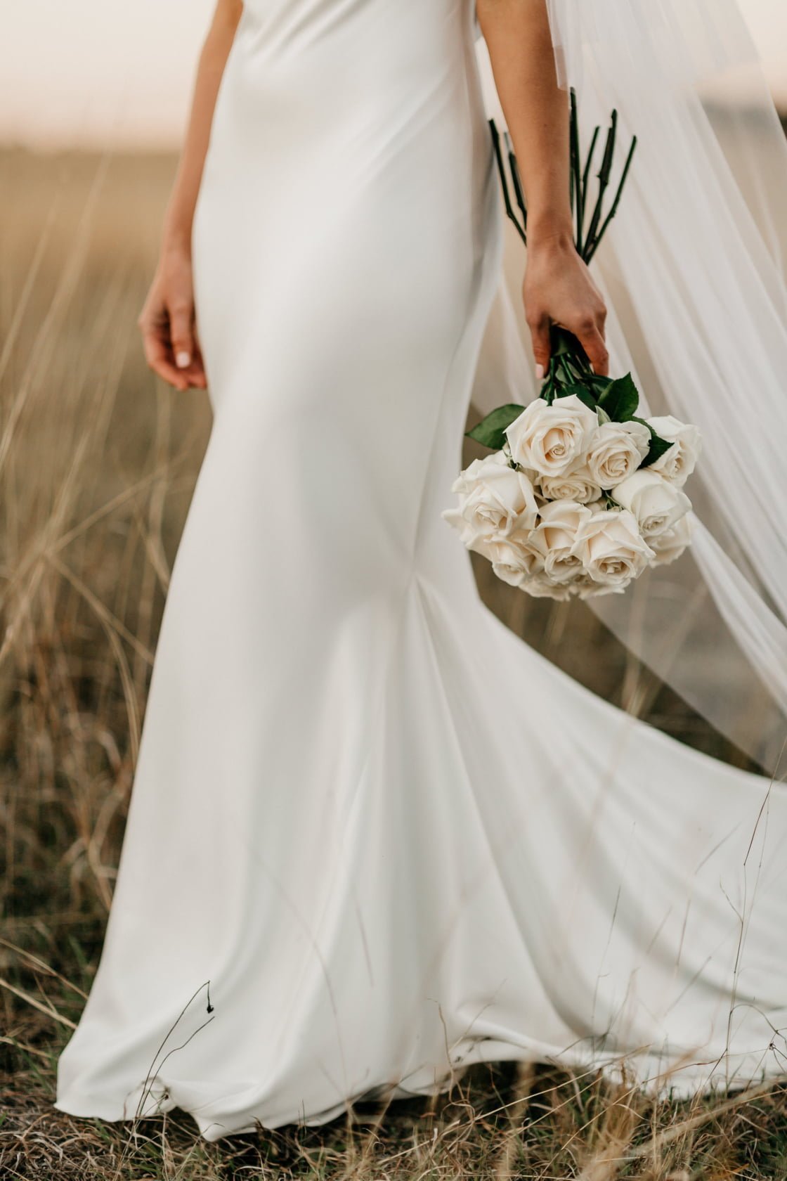 THE DRESS “I’ve always loved the simple elegance of the Narciso Rodriguez wedding gown that Carolyn Bessette Kennedy wore, and this was very much the inspiration for finding my dress. From the moment I tried it on, I knew it was THE ONE. I’d spent months shopping around until I came across the Pronovias dress via David Jones Bridal in Sydney. Their service and attention to detail was exactly the bridal experience I was after.”