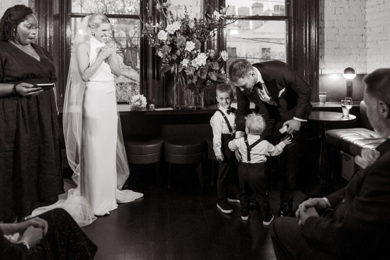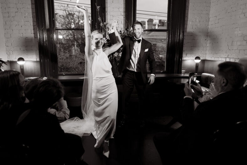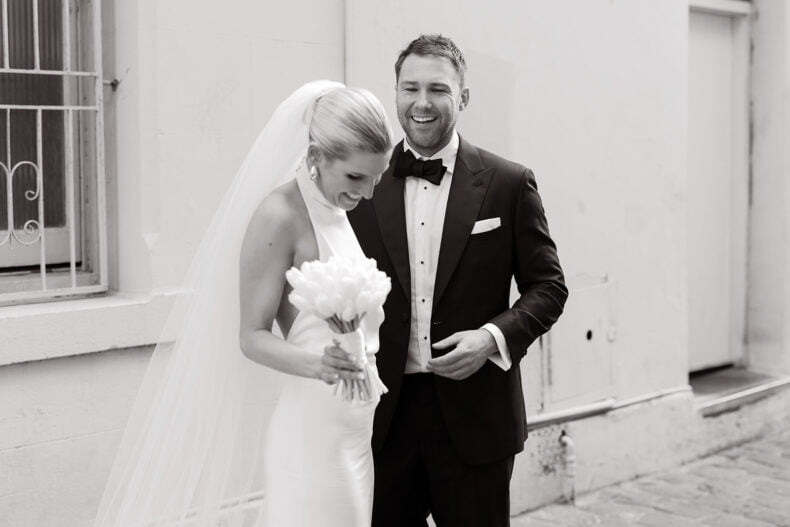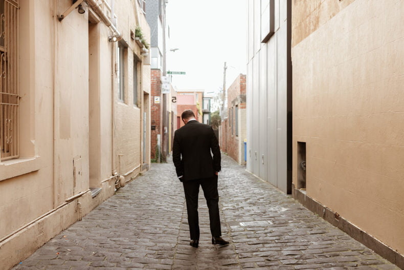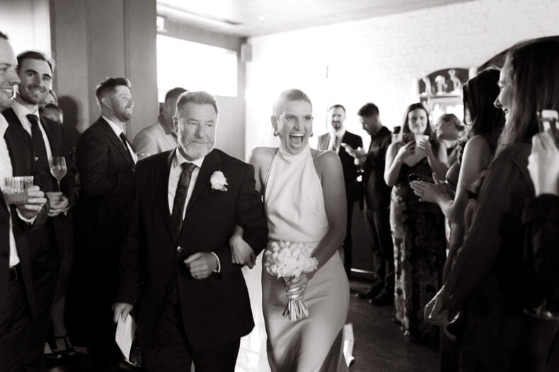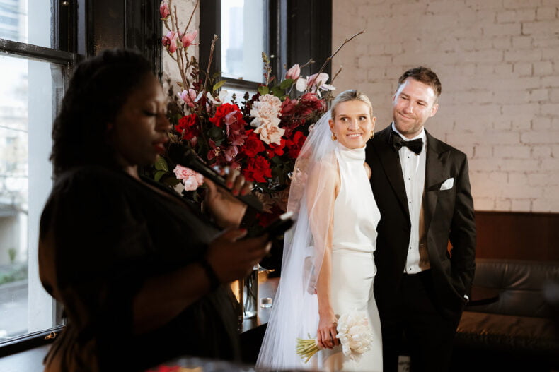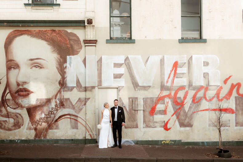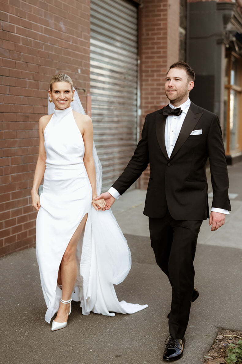 Together for nine years, Erica and Jesse got engaged while holidaying in balmy Noosa before booking their quintessential Melbourne wedding during winter 18 months later. The pair picked Poodle Fitzroy to host their love party with 80 of their nearest and dearest watching on, and uber-talented lens lady Nikki McCrone along for the ride to get the epic snaps. Both these folks also looked grand in their big day ‘fits, hers a stunner made by a talented bestie (so impressive!) and his a classic Oscar Hunt Tailors tux. Scroll down for all the deets…