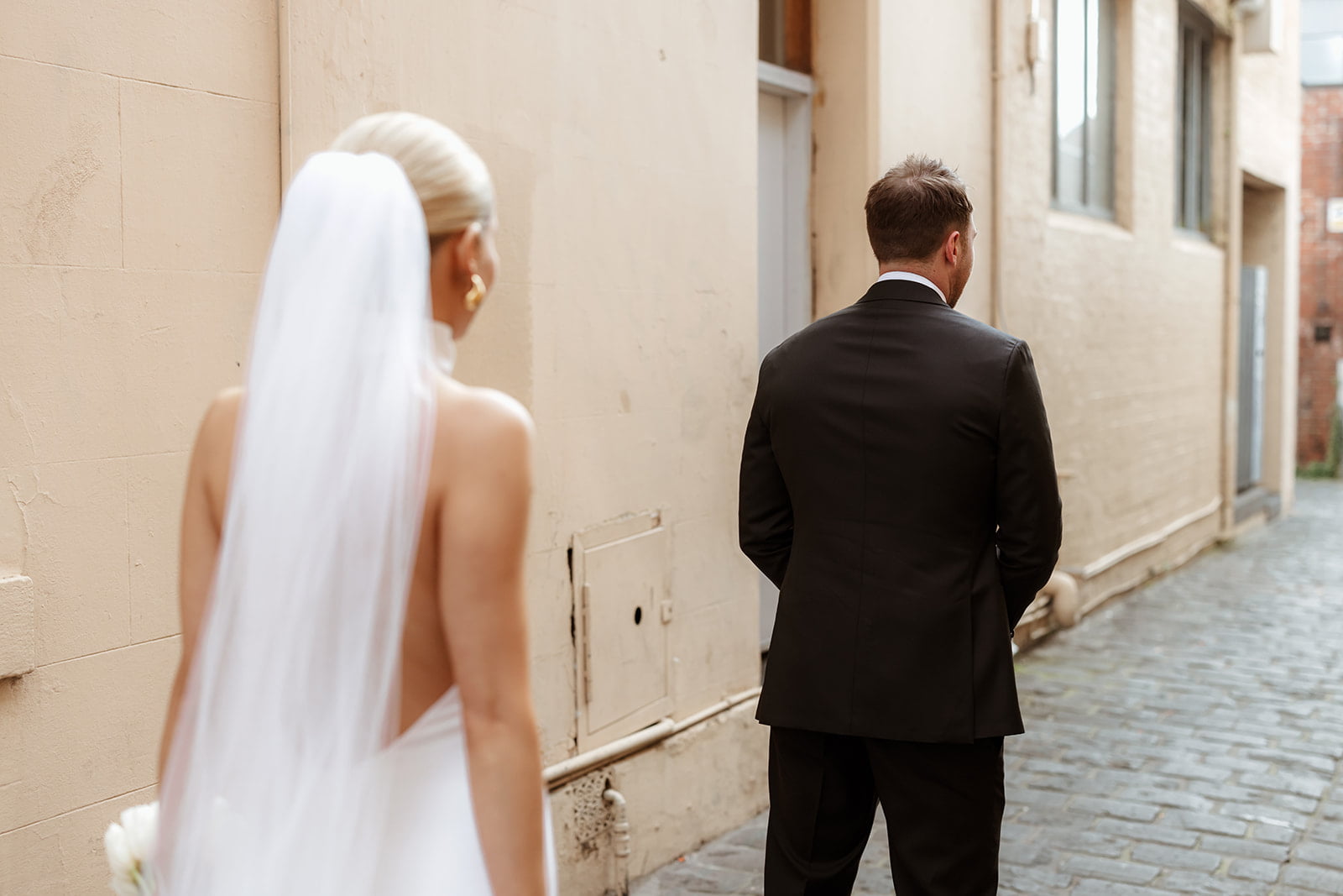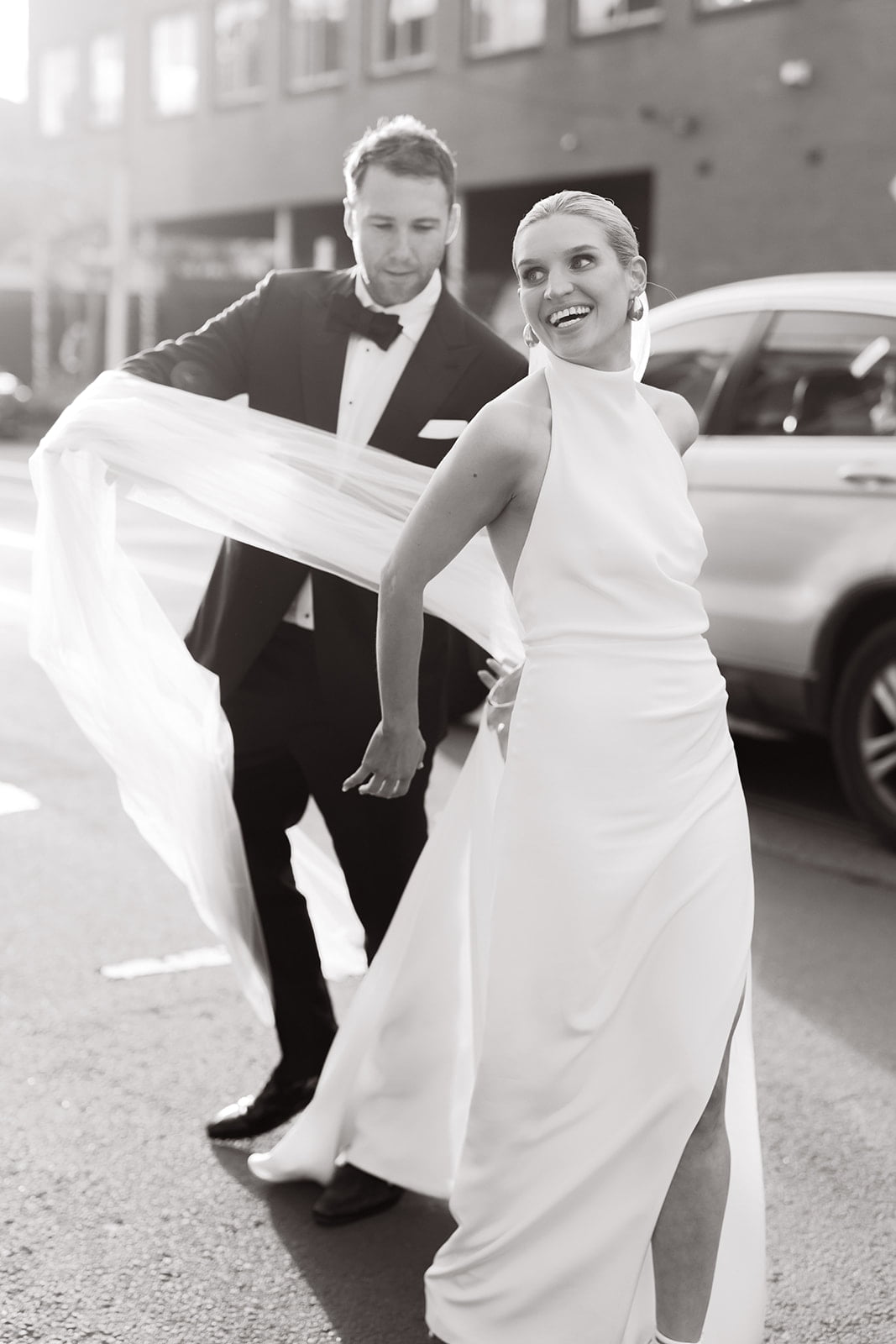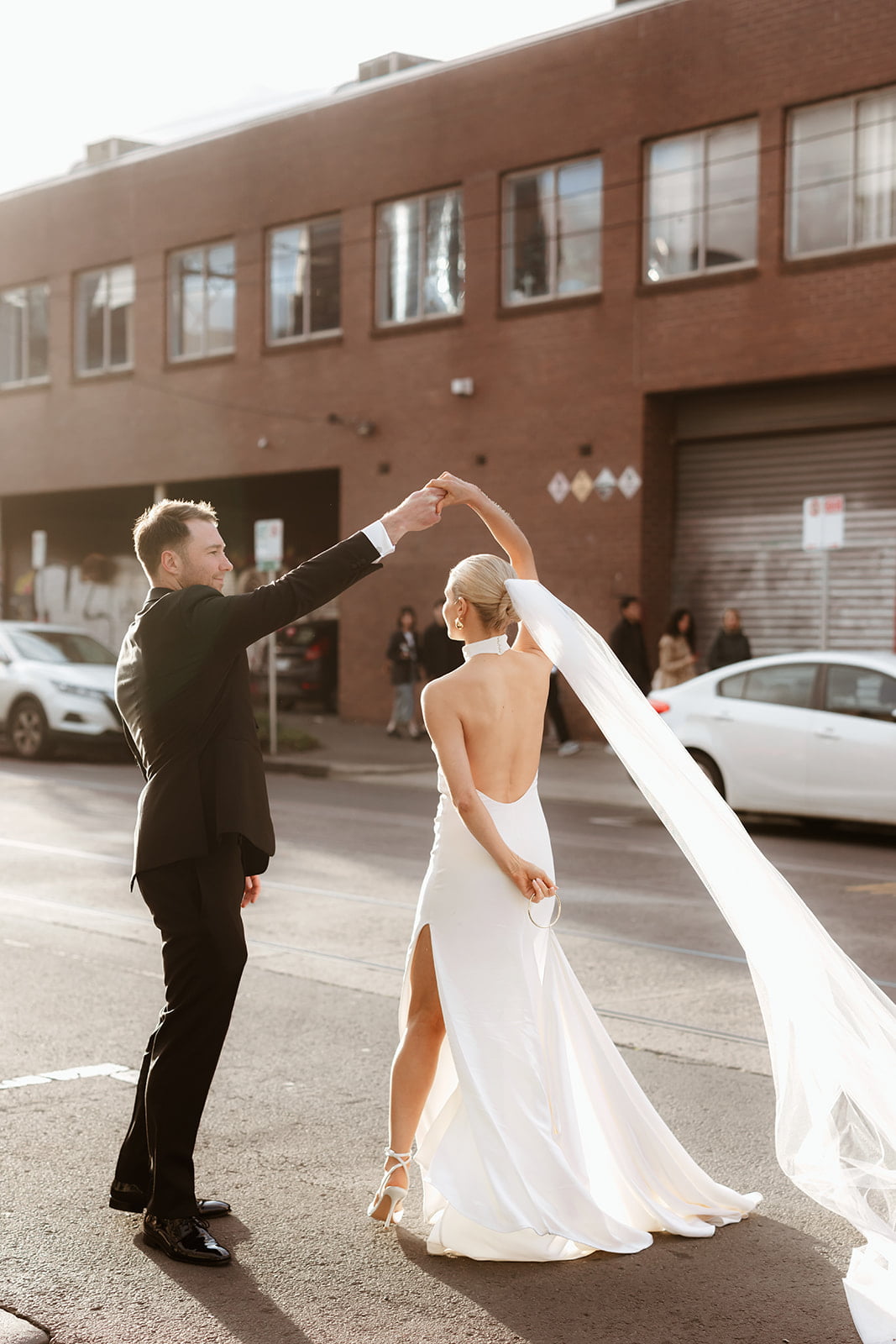MEMORABLE MOMENT “It is a testament to our photographer Nikki that the first look photos would be our favourite part of the day. Nikki lead us around the lanes of Fitzroy with music playing through a speaker clipped to her belt, alongside the three cameras used to photograph us.”