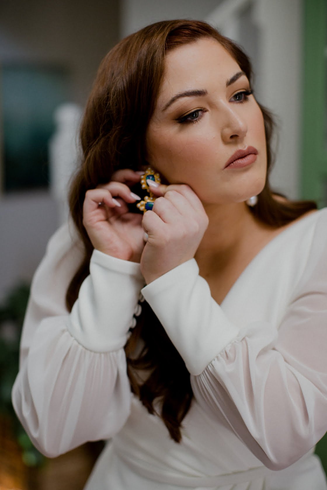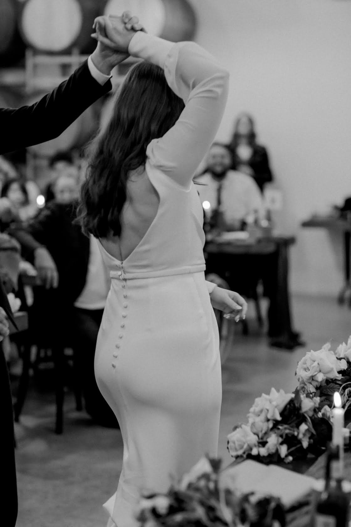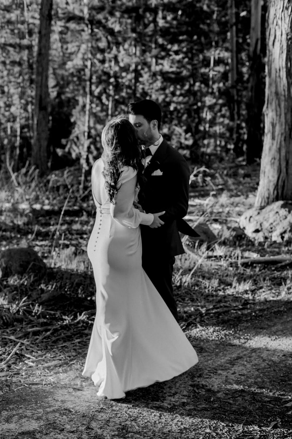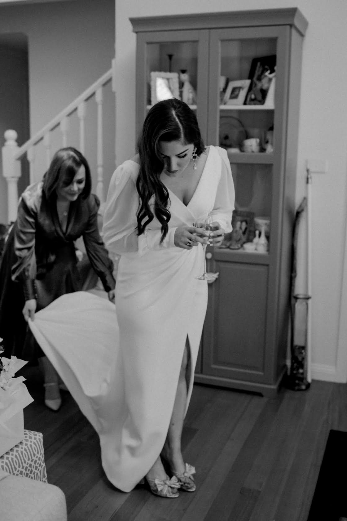 THE DRESS “I found my dress on the first day of looking around High Street Armadale. It was at Karen Willis Holmes, and the sales assistant’s name was Erin (which felt like a good sign). We were greeted with little bottles of bubbly! It was one of those movie moments where I’d already chosen a few dresses to try on, and Erin asked me what other dresses I’d tried at other boutiques and what about them I had liked or disliked. Then she said ‘I think I’ve got an idea’ and disappeared. She came back with a dress I hadn’t looked twice at, with some extra sleeves. She put the dress on me and pinned the sleeves on behind a curtain so that no one could see, and then did a big reveal. Everyone teared up! It was actually so perfect – Beyonce’s ‘Love on Top’ was even playing. I genuinely felt like I was in a movie and was in awe at how good this girl was at her job! I had to pay $50 for the appointment at KWH and I remember feeling outraged by that price because nowhere else was doing it, but the experience was second to none. Every other place was rushing me, putting limits on the number of dresses I could try on, and absolutely packed.”
