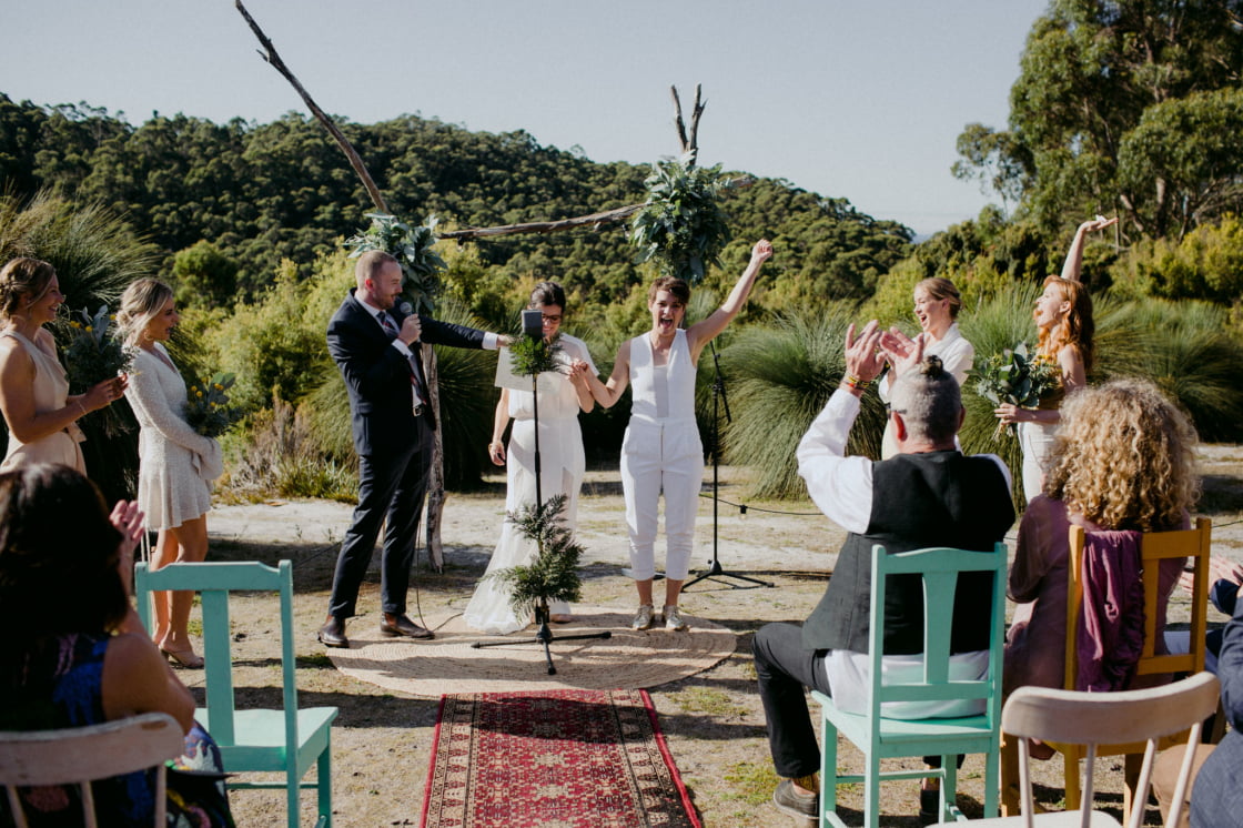 STANDOUT VENDORS “Our celebrant, Hunter Smith, is also our daughter’s dad. He is one of the best guys we know. He not only gave us sperm to make a baby but also worked his arse off to do a celebrancy course so he could marry us. It was so incredible having him there and play such an important part in our day and made us feel really bloody proud of our rainbow family. Also, Bec from Sandridge Estate and Danielle from Hubert and Dan.”