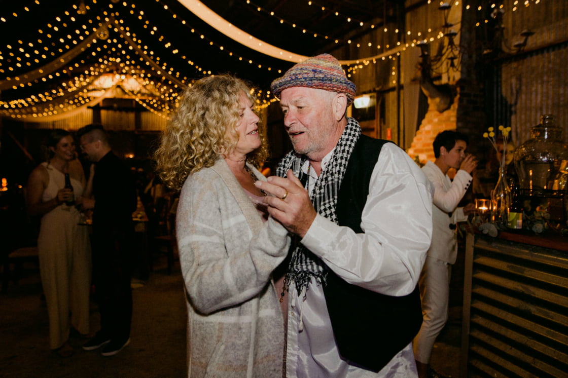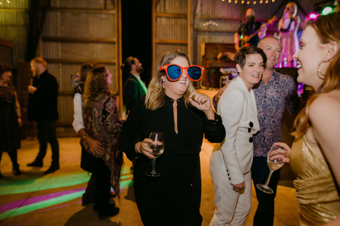 MEMORABLE MOMENT “It’s a dead heat between two of our mates getting up on stage with the band and surprising us with a rendition of John Farnham’s ‘You’re the Voice’ (Loretta’s favourite wedding song of all time), which resulted in a massive sing/ shout along and entering the shed and doing out first dance wearing our massive paper mâché heads, singing ‘Nothing’s Gonna Stop Us Now.’ We were a little apprehensive about having everyone look at us when we walked in and did our first dance, so we disguised ourselves as ourselves.”