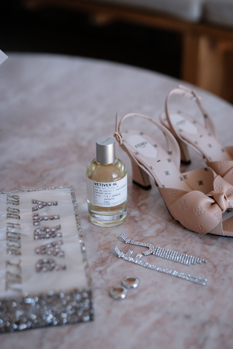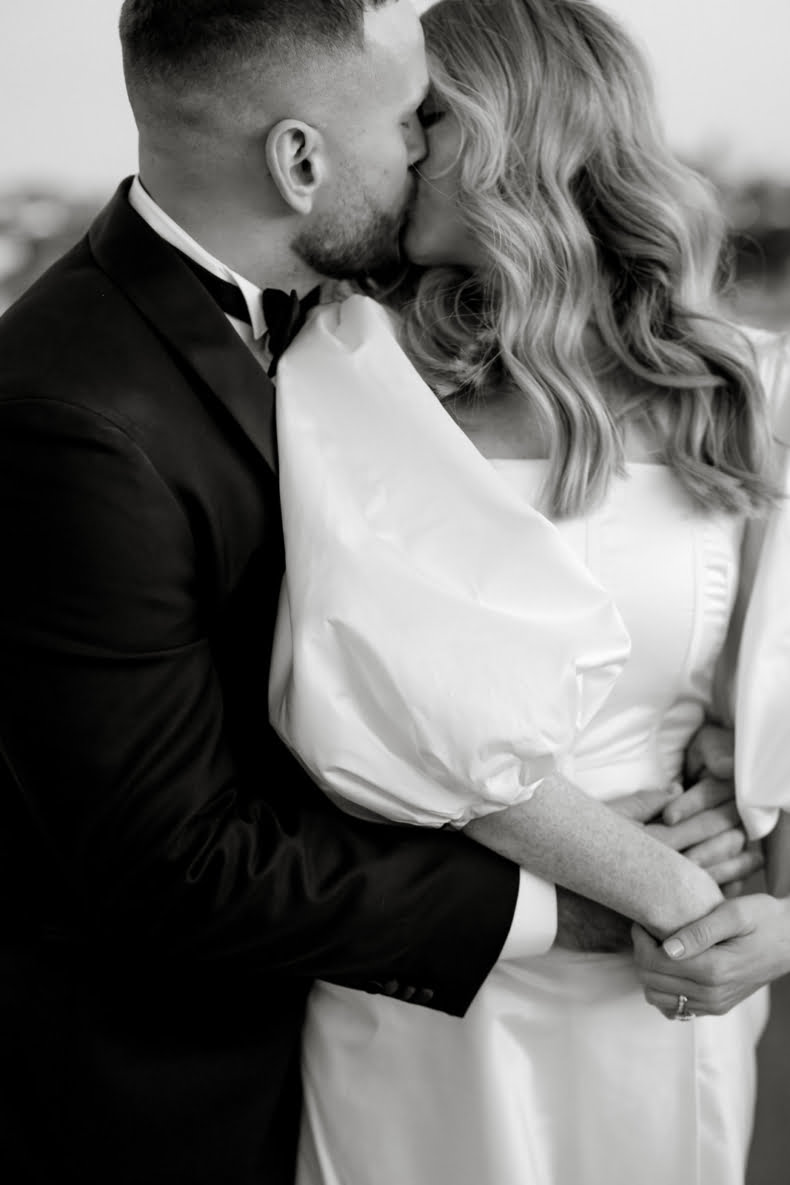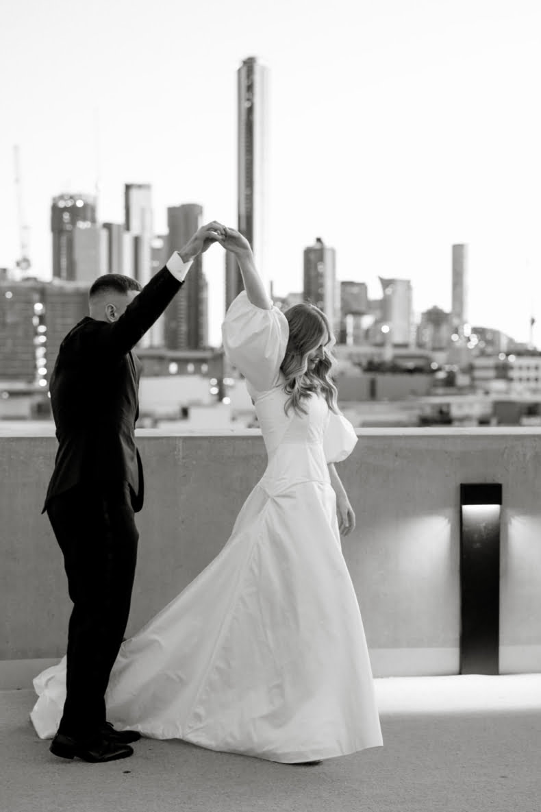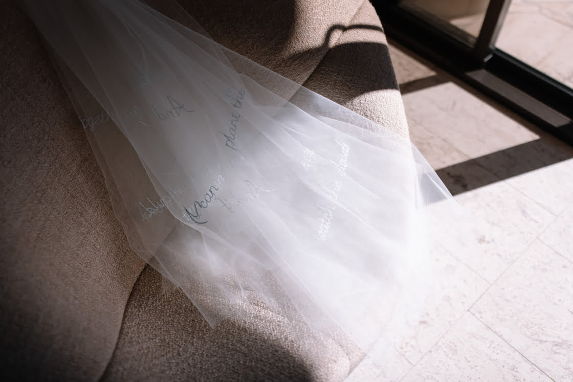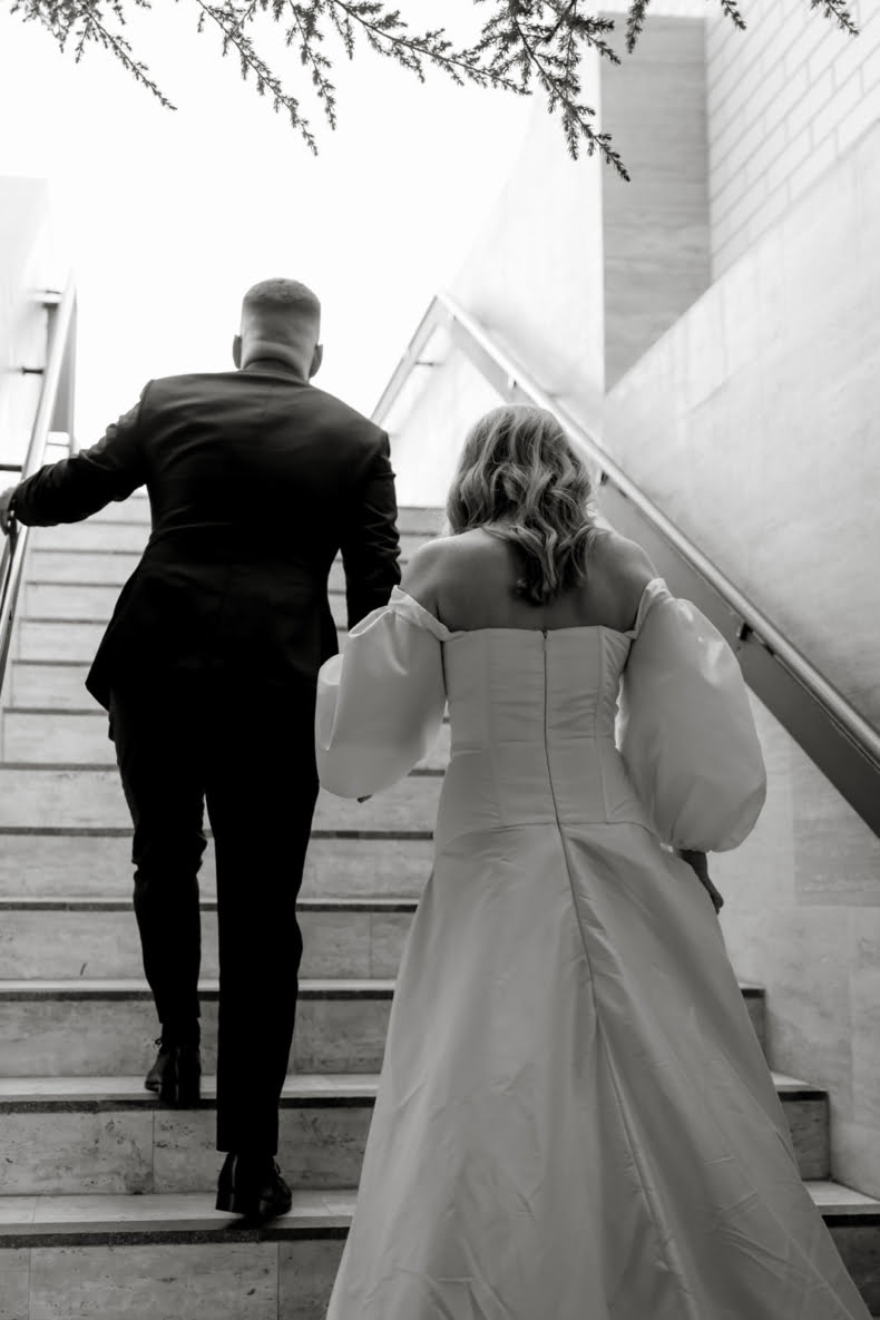 THE DRESS “The dress! Oh, the dress. What a journey it was. My initial vibe leading up to the wedding was to purchase something online that was understated and to pair it with an epic veil. I had a Net-A-Porter package arriving every week, but nothing felt right. Eventually, I landed on this beautiful Vanessa Cocchiaro jumpsuit that I was intending on pairing with a Harriette Gordon veil. Ten weeks out from the wedding I went into Bloom bridal boutique to try on the veil and ended up trying on the Harriette Gordon Lantern gown, and I was sold. The jumpsuit was a mere memory. Thanks to some very quick work from Sam at Bloom and the team at Harriette Gordon, my dress was ready to go the week before the wedding. It all fell into place and the dress couldn’t have been better. The complete opposite of my original relaxed vibe (who was I kidding with that?!).