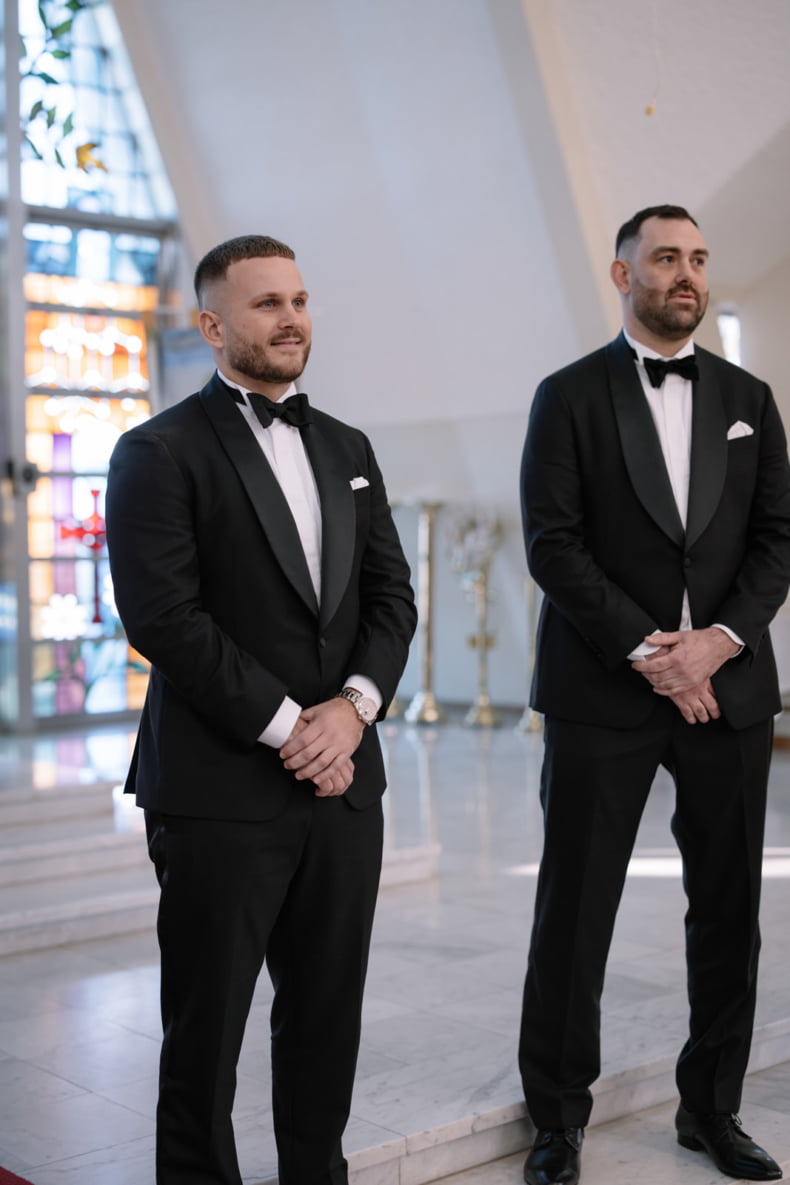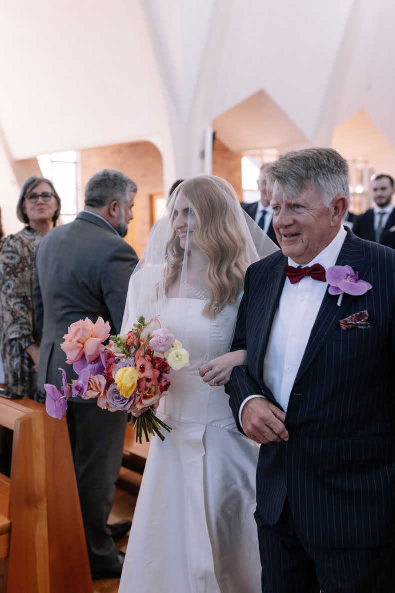 TAKE ON TRADITION “The celebrant, Fr Richard James is a really close family friend. His family and mine have been very close since his daughter and I started grade 1. I knew it had to be him that married us. He is an Anglican Priest though and the church was Catholic, so we had to jump through a few hoops but I wasn’t going to have it any other way. After multiple meetings we got the green light and it was perfect. It felt so special to have someone marry us that had been such an important part of my life and also that we could do it in the chapel where I spent my high school years.”