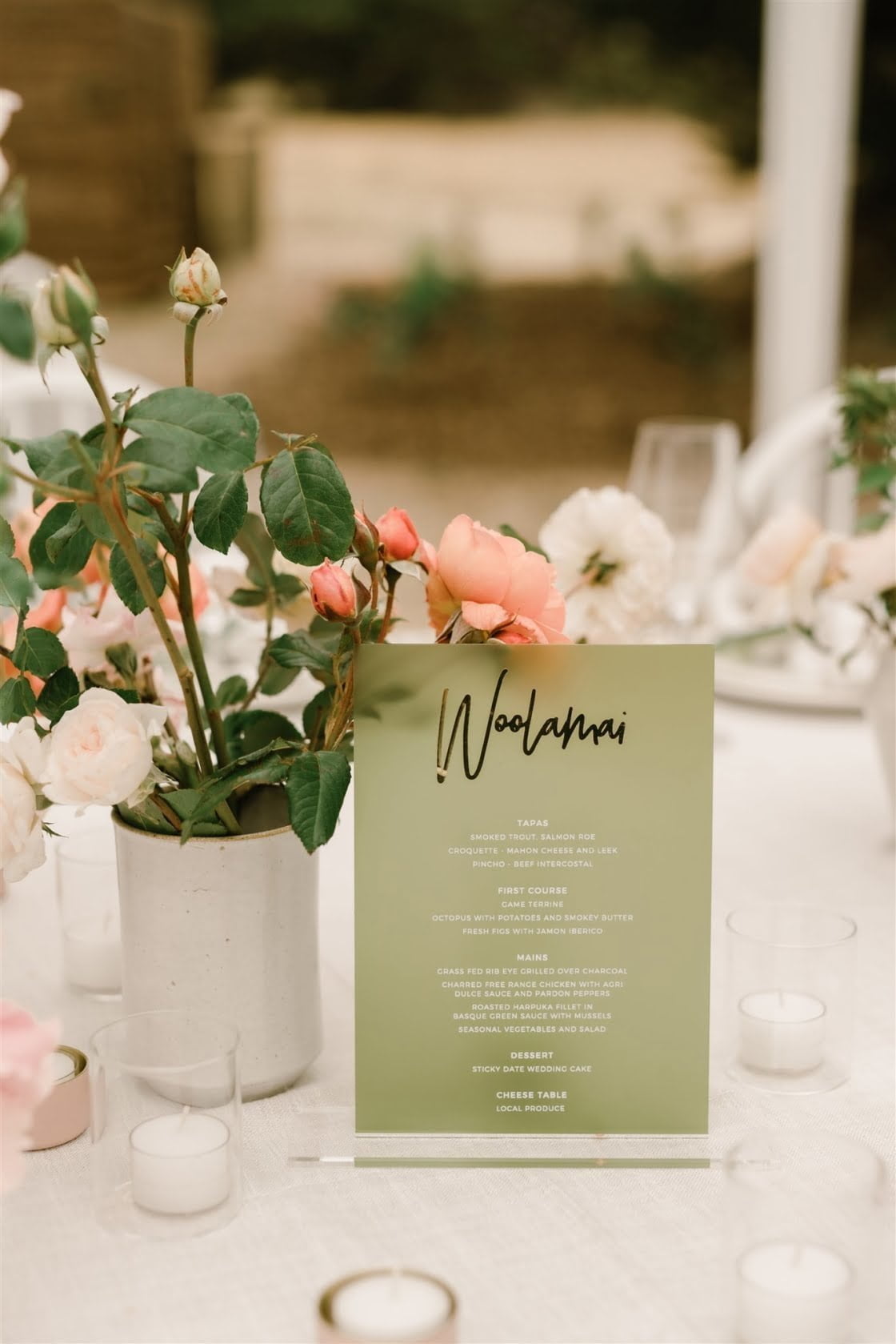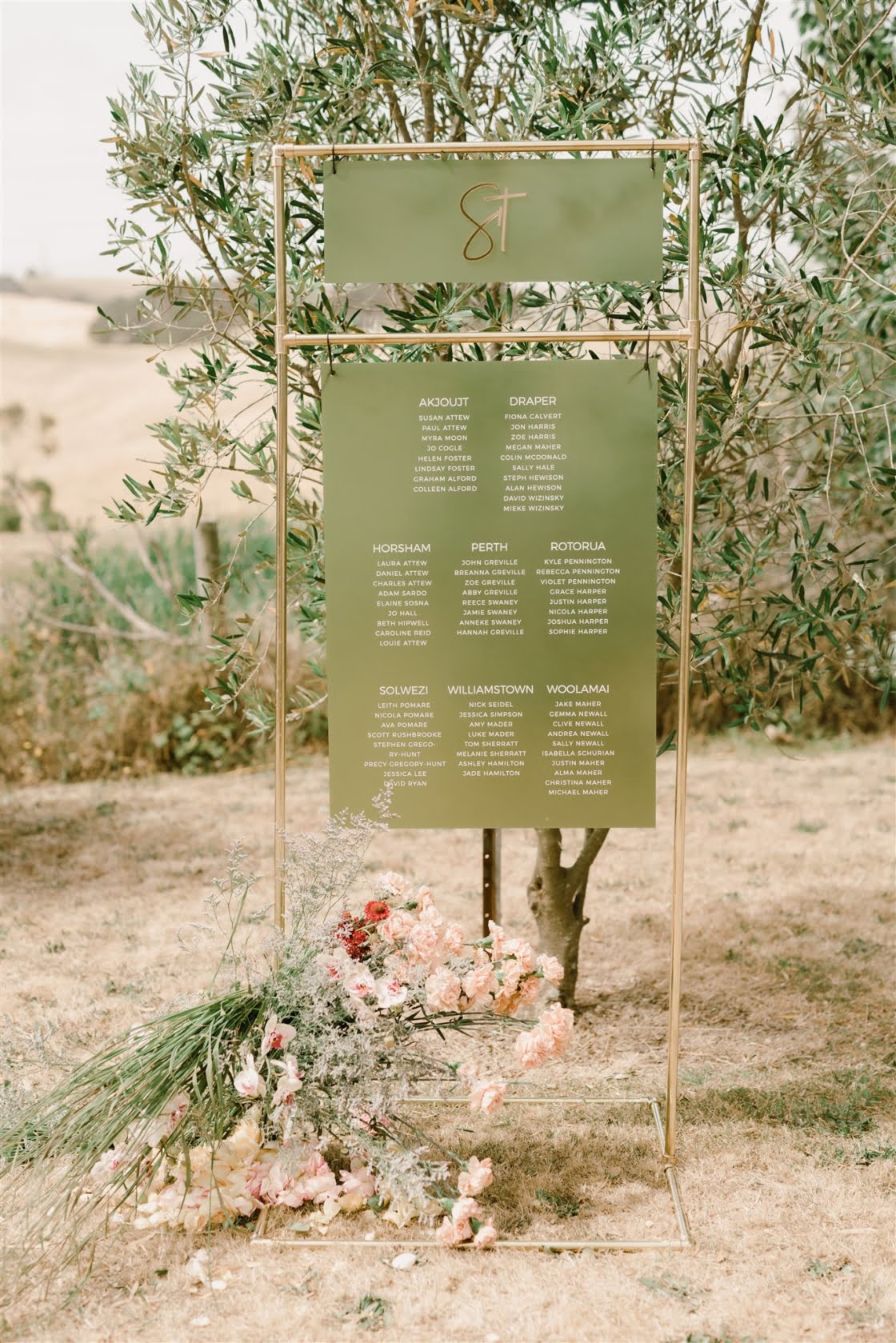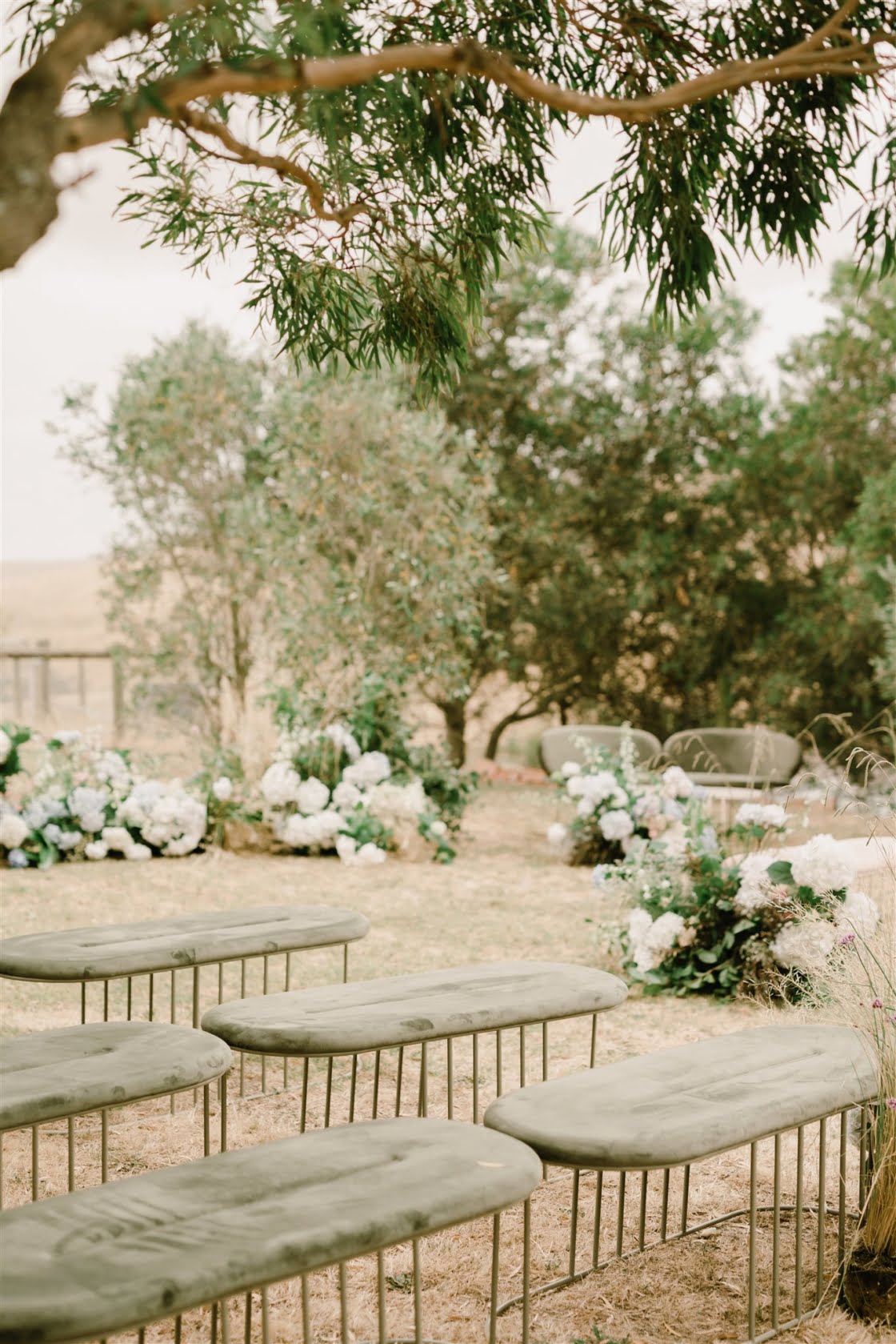 CONTRIBUTING VENDORS Photographer Blossom Daisy Creative Event Planner & Stylist Events By Kate Florist Cecilia Fox Stationery & Signage Sketch and Etch Ceremony & Reception Private Property Catering MoVida Cake Friend Marquee EBK Structures Entertainment Jojo Rainwater (Ceremony) Nicky Bomba (Reception) Celebrant Pete the Celebrant Rings Lacy Jewellery Furniture Harry the Hirer Caravan Bar Mavis & Lou Lou THE BRIDE Bridal Gown & Veil Chosen by One Day Shoes Jimmy Choo Hair & Makeup Sophia Lambrinakos Bridesmaid Dresses Marry by Tessa Cox Birch THE GROOM Suit, Shirt & Shoes American Tailors.