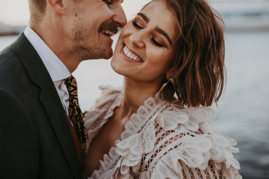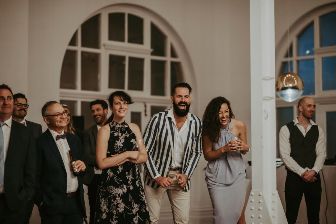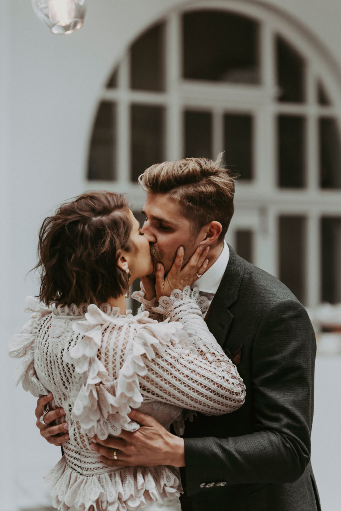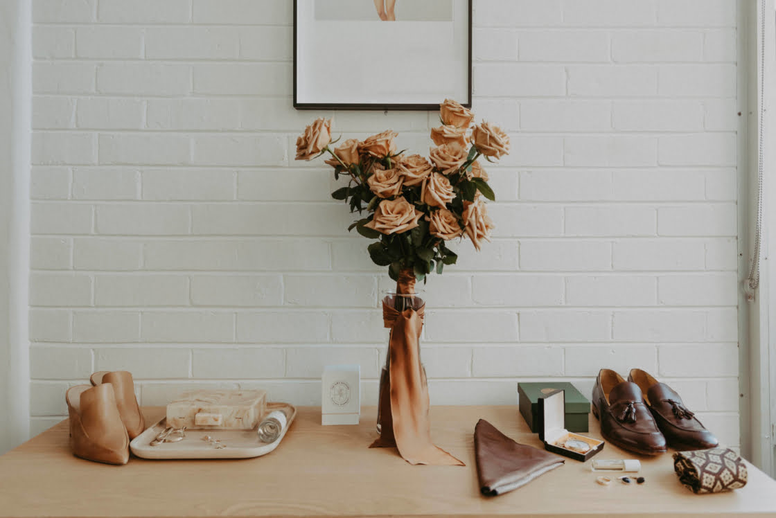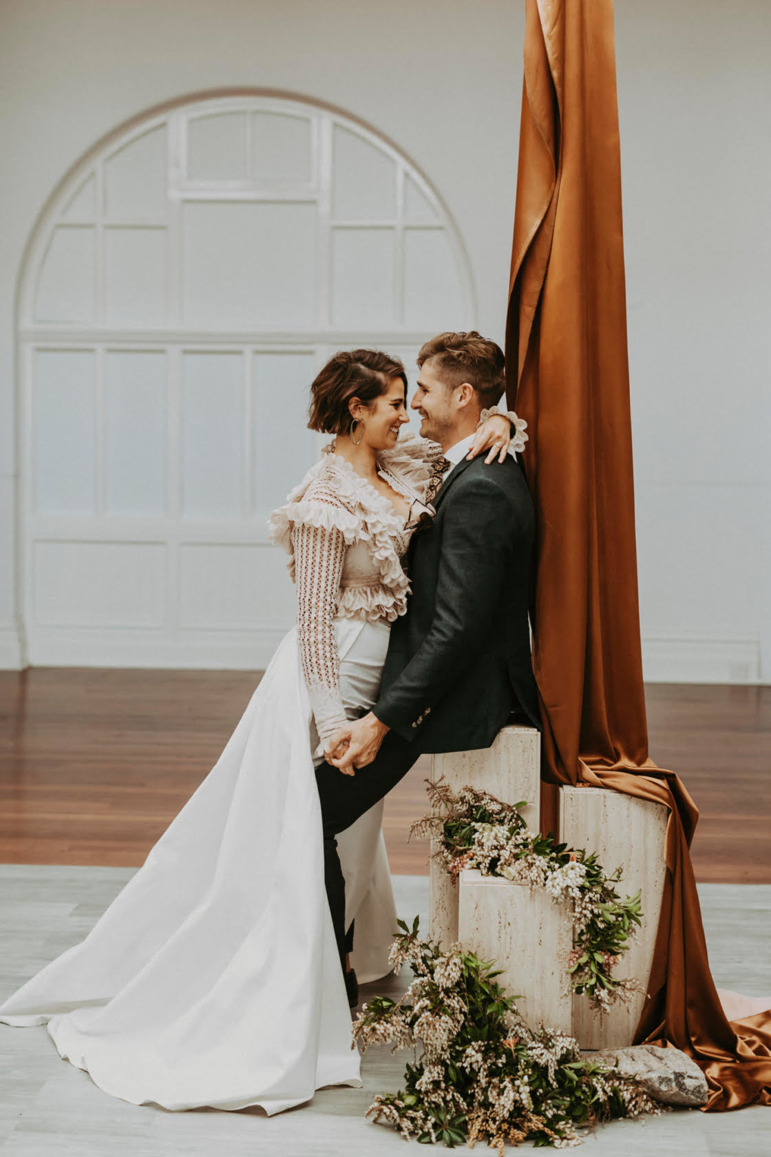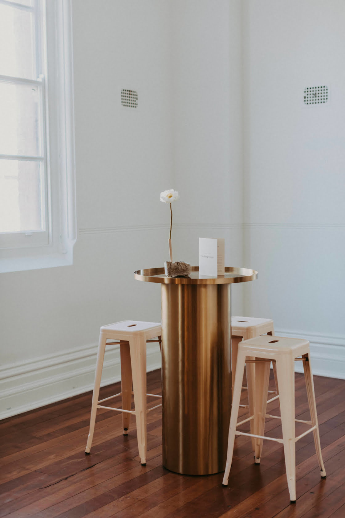 FAVE DETAILS “From a styling perspective, the collaboration between Tiffany Keal Creative Studio and the gals from florist Sir Botanical was so wonderful. This band of women who I admire so much, coming together and collaborating to create this visual feast for us was incredibly overwhelming. I wanted an organic, yet edgy feel, without going over the top with moolah. They respected this from day one which was so appreciative. The Sir Botanical gals had concrete vases made to accomodate single stem ‘art sculptures’ (which we now have sitting proudly on display on our dining room table). The furniture was selected as a part of the styling brief, yet all functional. The speeches were also an incredibly powerful moment for both of us. The design of the room allowed everyone to be intimate and be surrounded by guests rather than feel elevated onto an isolated platform. I have never felt more loved that that moment, hearing honest words from our family members.”