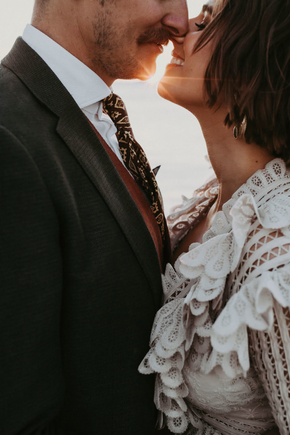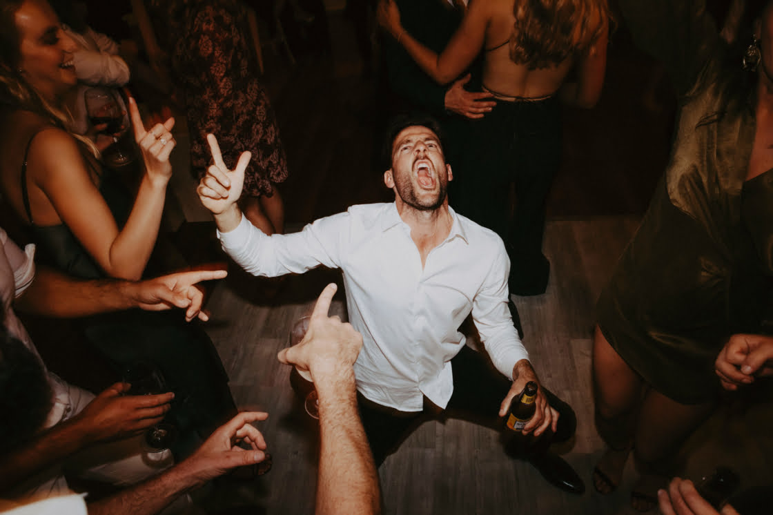 THE VIBE “We wanted our day to have a sense of ease and subtle fluidity to it. Rather than labelling it a ‘wedding’ it was more of a ‘celebratory soiree’. A stripped-back affair where friends can gather, lounge and celebrate – but with style. The design of the space, the styling, grazing, vino and music were integral parts of this. Willy Slade (DJ) kept the vibe aligned with a few incredible sets, guiding the energy in the room. We got ready together, with a few of our closest mates with us, (gals and guys) and then had a few photos together at home which meant we only needed to leave for sunset photos for a minimal amount of time. Naturally drawing the crowd to the back of the room post-aisle walk allowed Tiff to quickly rearrange the ceremony furniture into more of a reception layout, and then with the bar opening along with the grazing tables being revealed, the ceremony flowed fairly seamlessly into the celebratory soiree.”