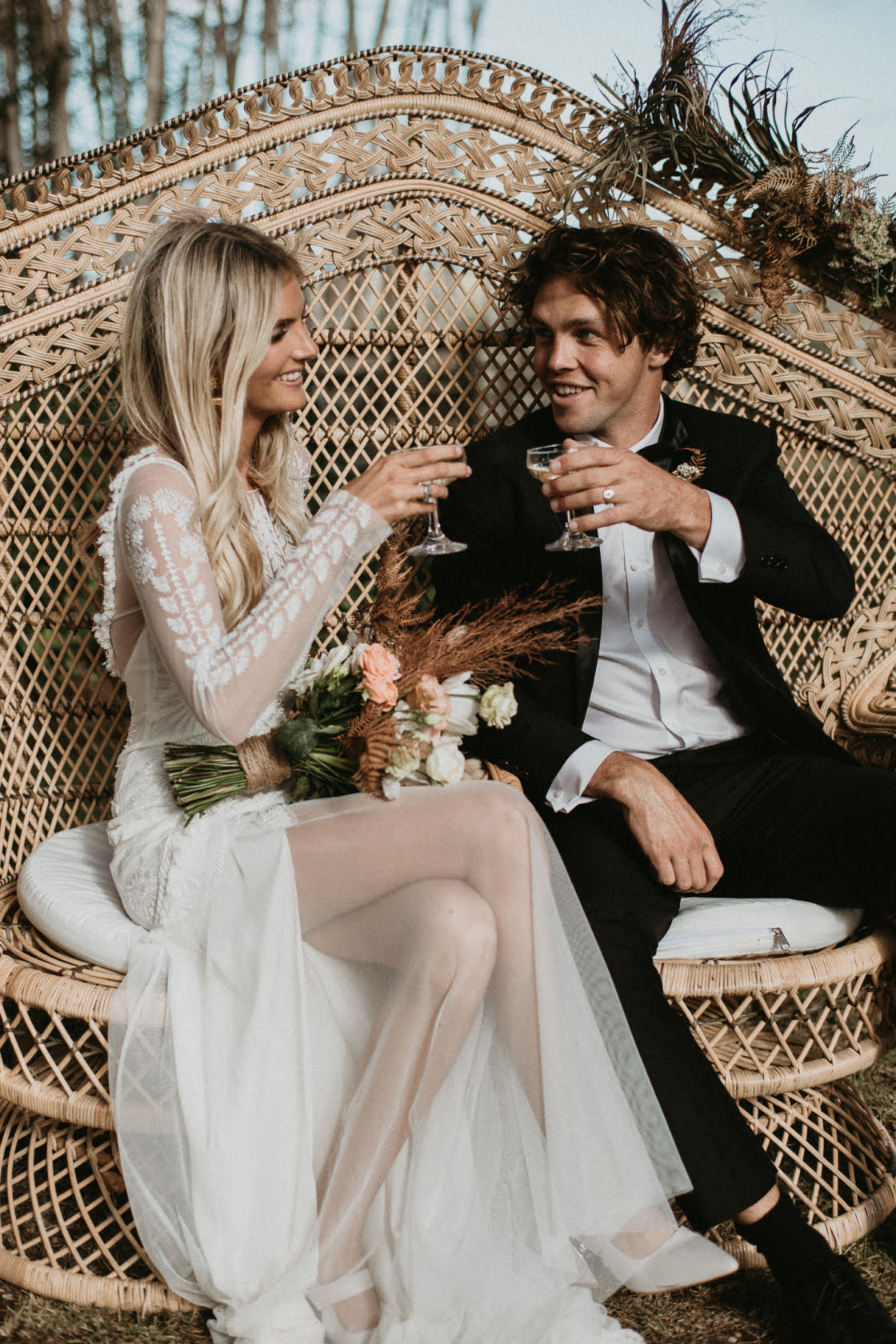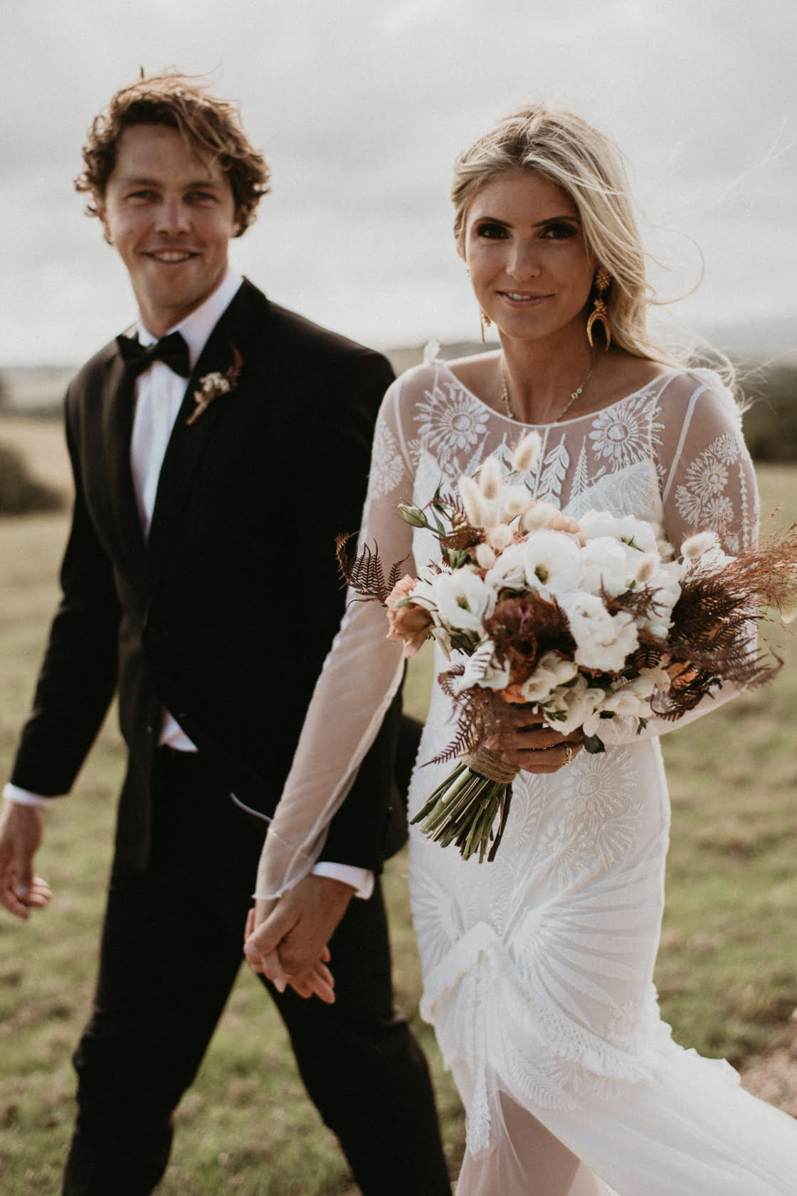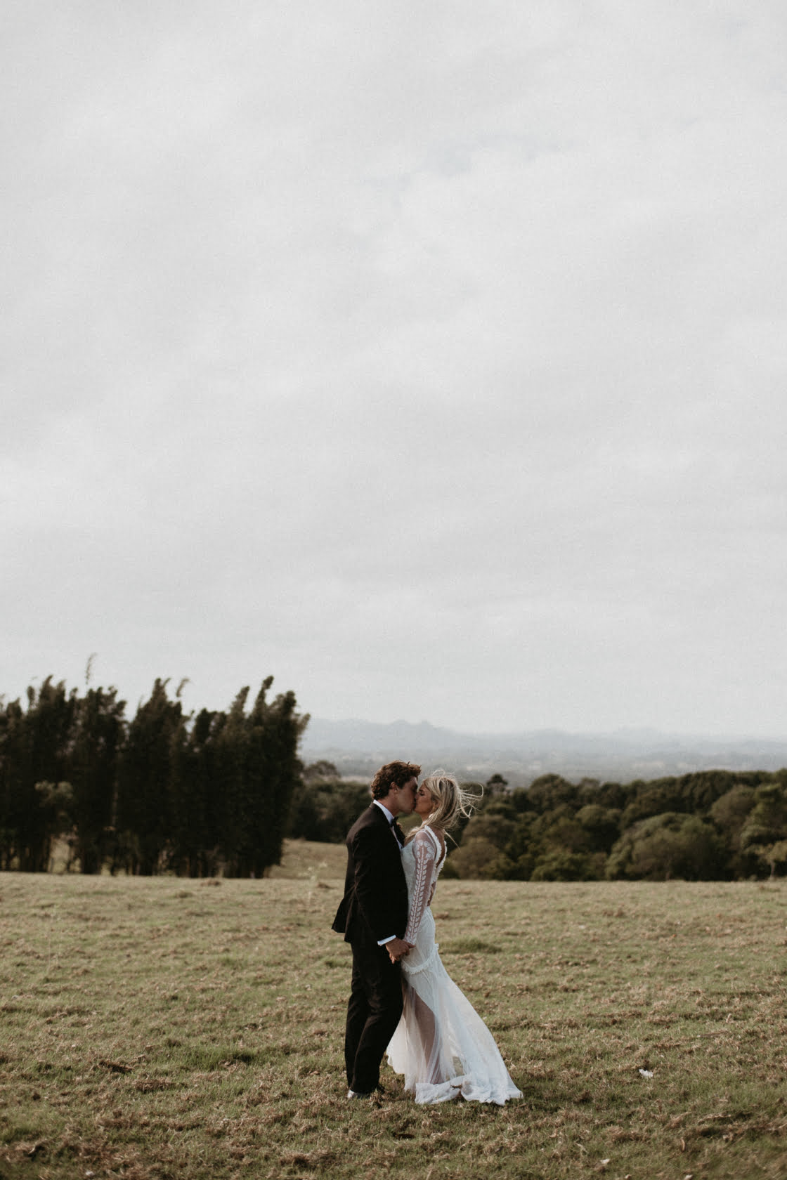 Whip your wedding planners out friends, because you are going to want to take notes on Holly and Kane’s ultra fab big day. These high school sweethearts had nine years to think long and hard about their wedding and nabbed a whole heap of our fave vendors along the way. Poppy & Fern wrangled blooms whilst The Future Mrs was on makeup. The White Tree spun tunes and Byron View Farm hosted the hinterland ceremony. Absolute gold, right? Now, scroll down and take a peek at the bride’s TWO gorge gowns. Joeseph Willis of Allume Wedding’s captures do not disappoint…