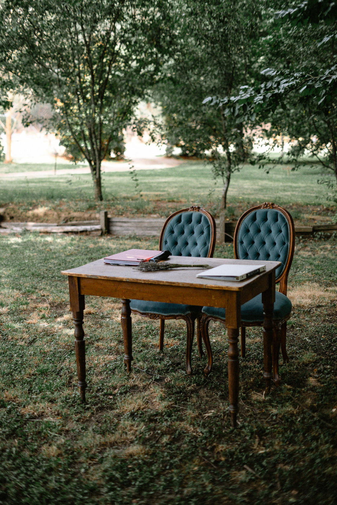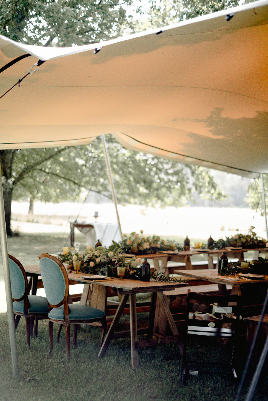 THE VIBE “We both come from Europe and are nostalgic about the European summer. We tried to recreate an early 20th-century champagne picnic with period furniture, lawn games, and a relaxed vibe.”