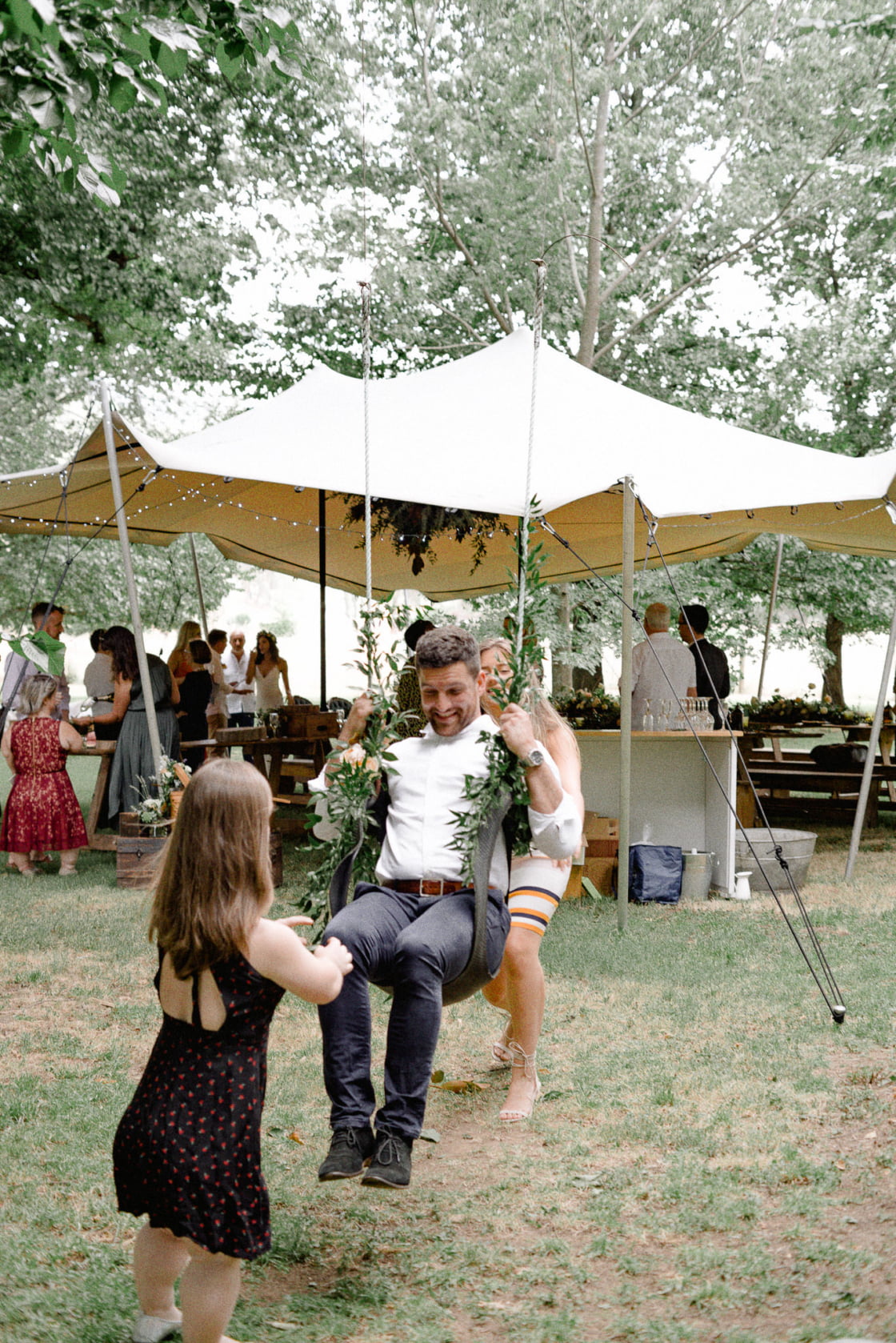 FAVOURITE MOMENTS “It was lovely to see the guests so relaxed [no doubt enjoying the good eats by Sarah Glover]. A friend of mine told me it was the first wedding that didn’t make him feel under pressure. Everyone took their shoes off and relaxed in the garden, some even fell asleep under the trees for a little siesta after a bit too much wine!”