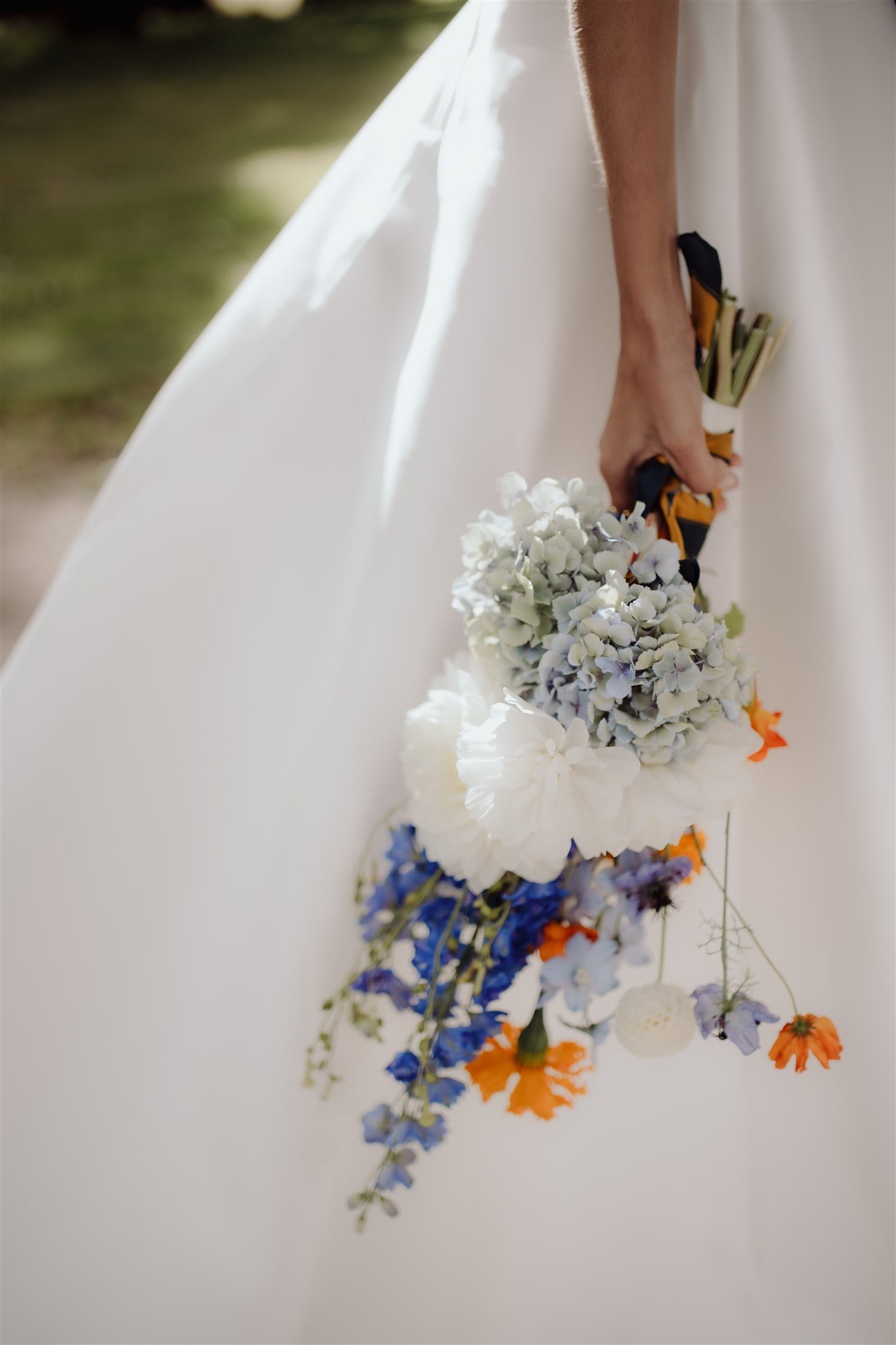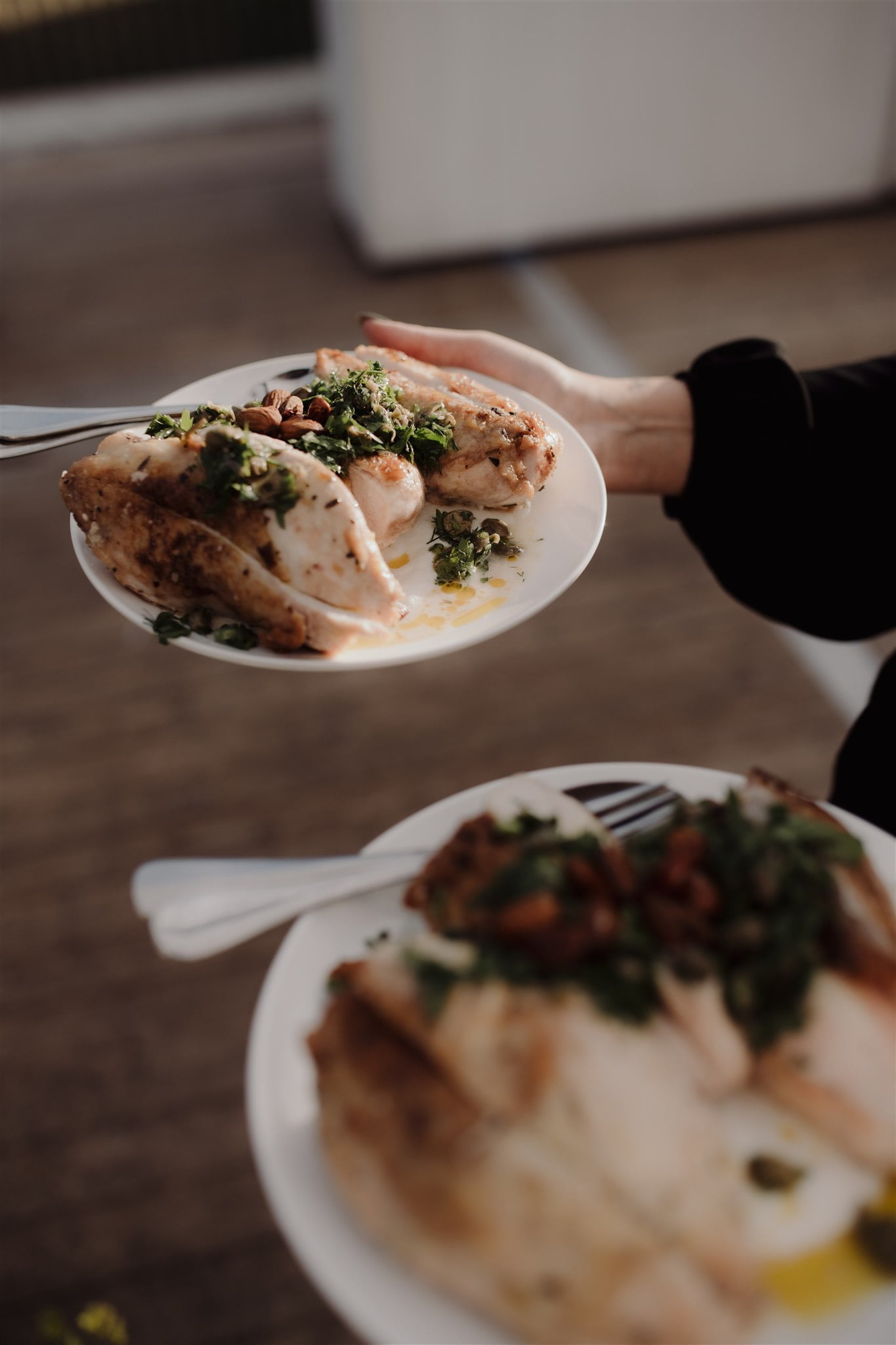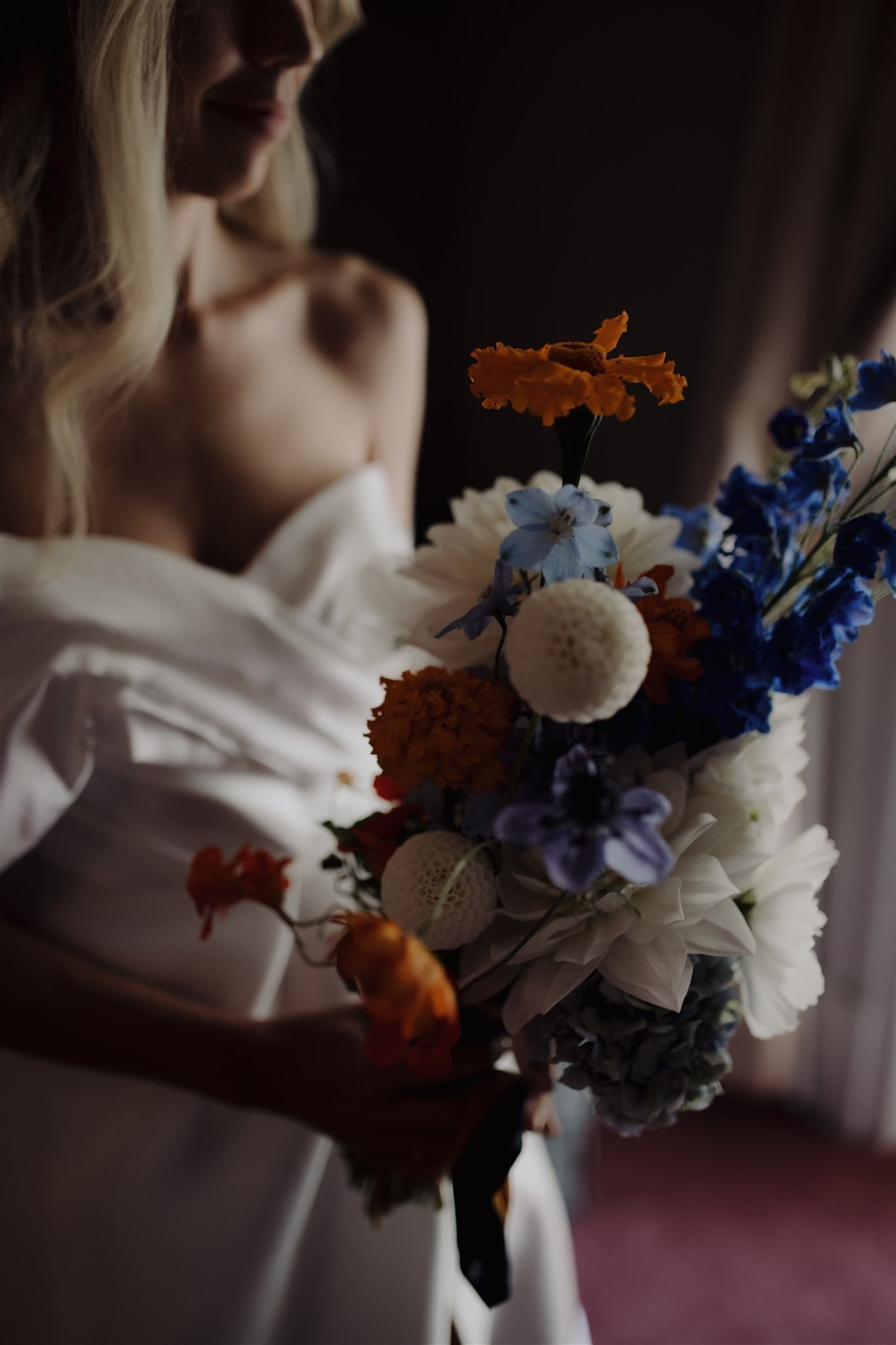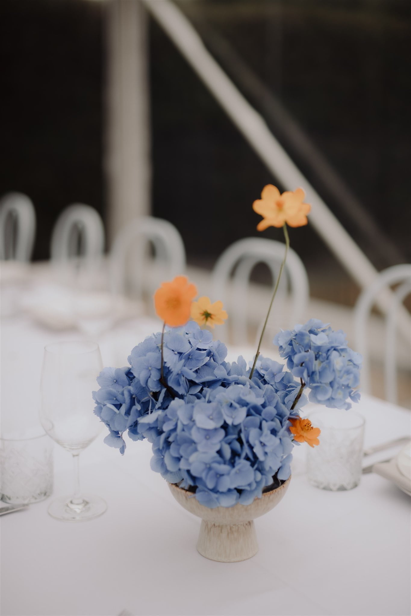 FAVE DEETS “The flowers – with a predominantly white colour palette, the bright bursts of colour from the flowers really stood out to give the ceremony space and dining tables some character. The ice sculpture by Antarctic Ice: Vetty commissioned a flower-infused ice sculpture that doubled as a piece of art and an ice-luge for pouring drinks. Straight after the ceremony, and with the sun starting to shine through the clouds, our guests poured themselves gin and tonics and mingled on the lawn.”