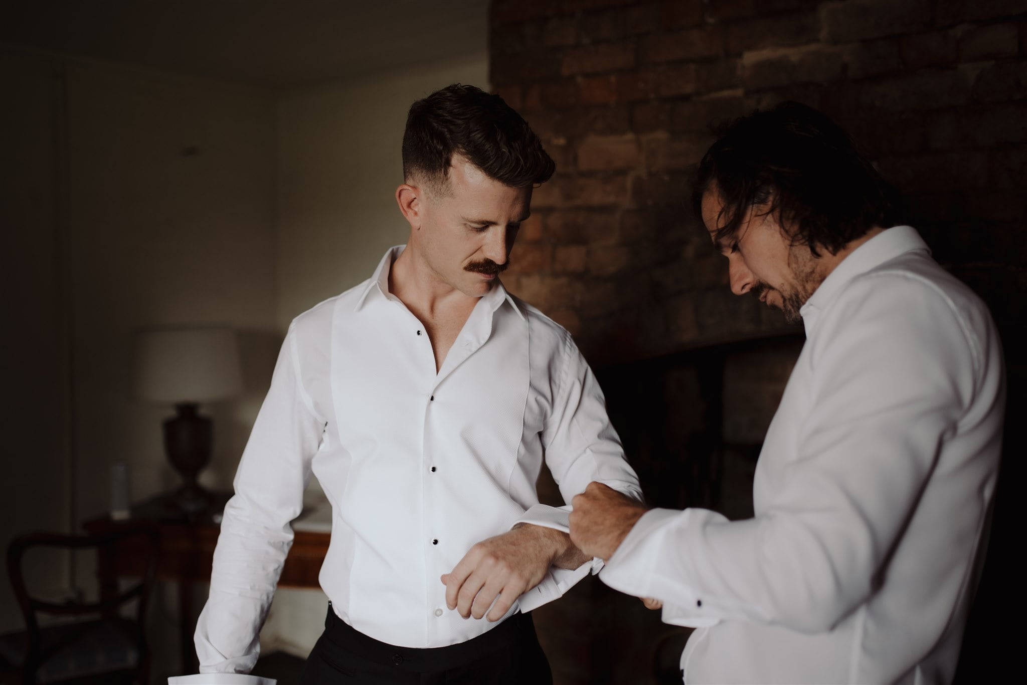 CONTRIBUTING VENDORS Photographer Jon Gazzignato Event planner & stylist Blossom Gatherings Florist The Romantics Ceremony & reception venue Vaucluse Estate Catering Timbre Kitchen Cake Blossom Cakes By Rhi Hire items Salters Hire Sound hire MA Sound Stationery & signage Ivette Rieksts Design (bride) Celebrant Nat Weaver Rings Diamondport Jewellers Transport Redline Coaches Ice Sculpture Antarctic Ice Edible Flowers Clifton Blooms THE BRIDE Bridal gown designer Kyha Bridal boutique Sphere Bridal Gallery Robes Jasmine & Will Shoes Loeffler Randall Accessories Pdpaola, Kristin Ash Hair & makeup Trish Sousa Bridesmaid dresses MLM Label Bridesmaid shoes The Iconic Bridesmaid gifts Kristin Ash THE GROOM Suit, shirt, tie & groomsmen suits Black Jacket Suiting Shoes RM Williams Grooming Stallion Barbers
