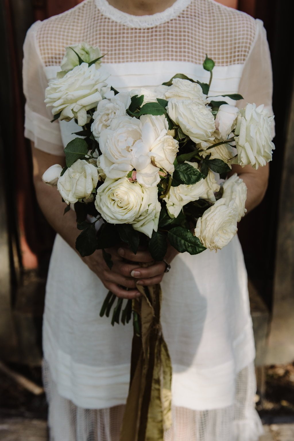 FAVOURITE DETAILS “I had planned to do my own flowers (romantically thinking I would have time to pick wildflowers), but a month out I changed my mind and contacted Arnie at Flowers In A Vase. I’m so glad I did! She arranged the most gorgeous, fresh locally-picked roses for the bridal party. As a wedding gift, my brilliantly talented sister made a stunning porcelain platter with a sgraffito etching of us. It was pride-of-place on our grazing table with a special piece of honeycomb. And wearing our Camilla Gough wedding bands that had been created two years prior.”
