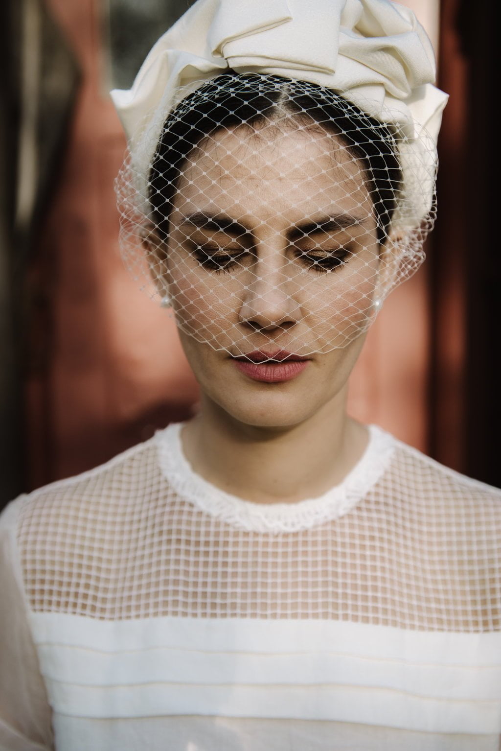 THE DRESS “I did the obligatory bridal store try on thing with my Mum, but that experience only made me even more aware that I didn’t want a ‘wedding dress’. I was never a bridey-bride girl. I randomly came across my Rochas dress online and bought it straight away. I flirted with the idea of having a veil and came across the Jennifer Behr headpiece- it was perfect. And I instantly fell head over heels for the Celine jumpsuit. Thank goodness I did, as I would have frozen in my cute little white dress!”
