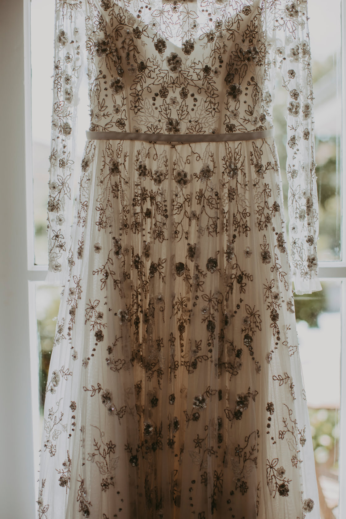THE DRESS “I went to a couple of boutiques, but I didn’t fall in love with any of the ones that I tried on. They were all way above budget, and none of them made me feel like a bride. So I went online to Still White and found my Needle and Thread London dress. It was completely unlike anything I’d tried on and I knew instantly it was The One.”