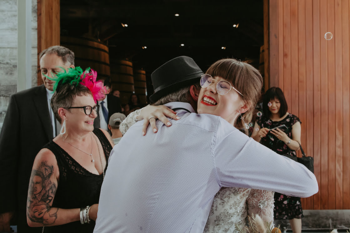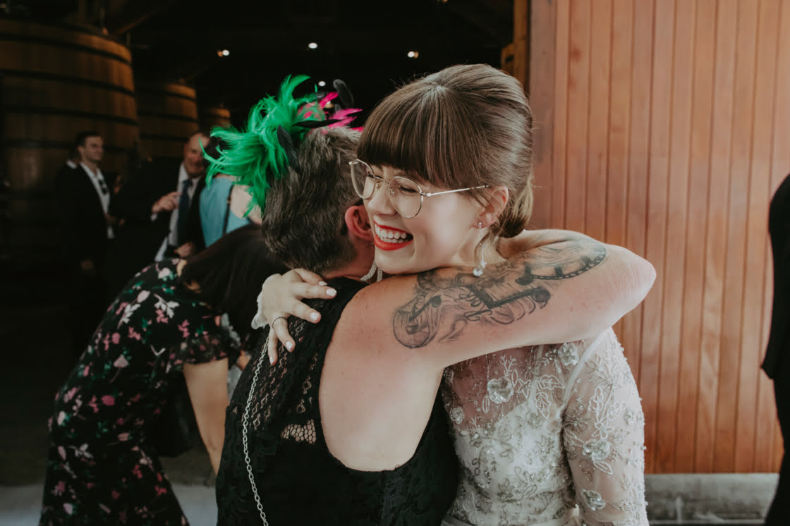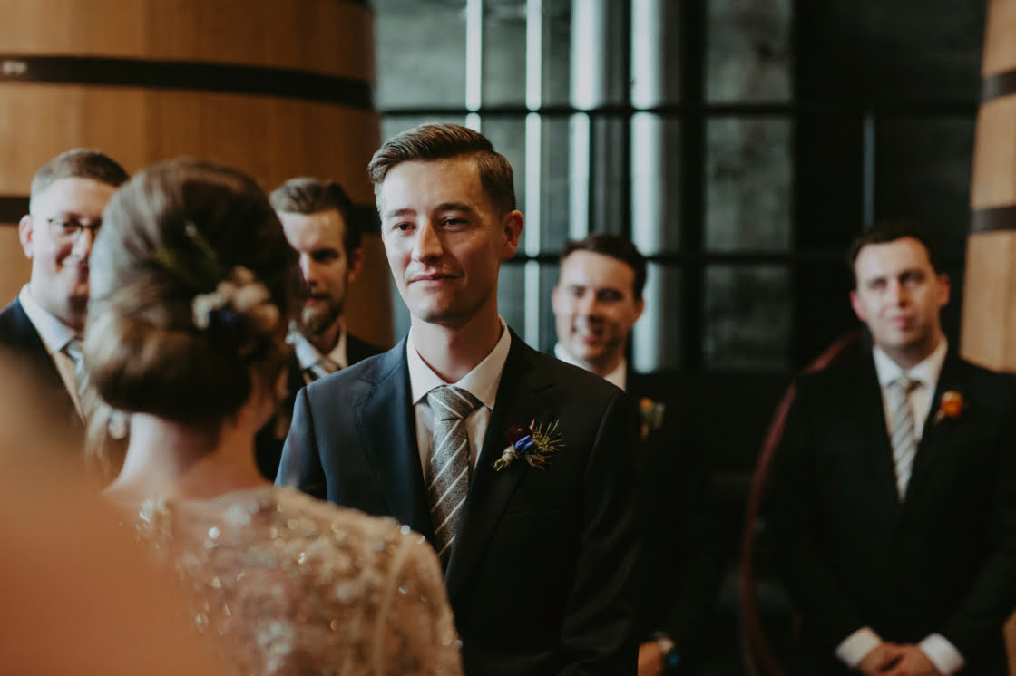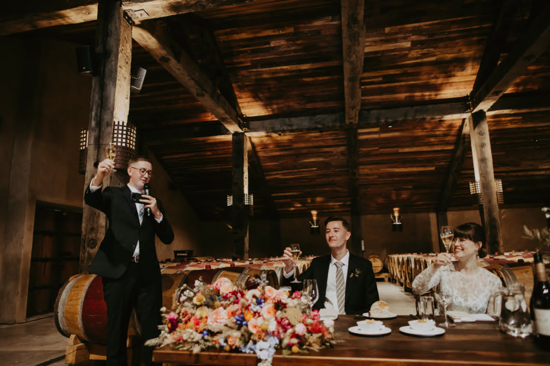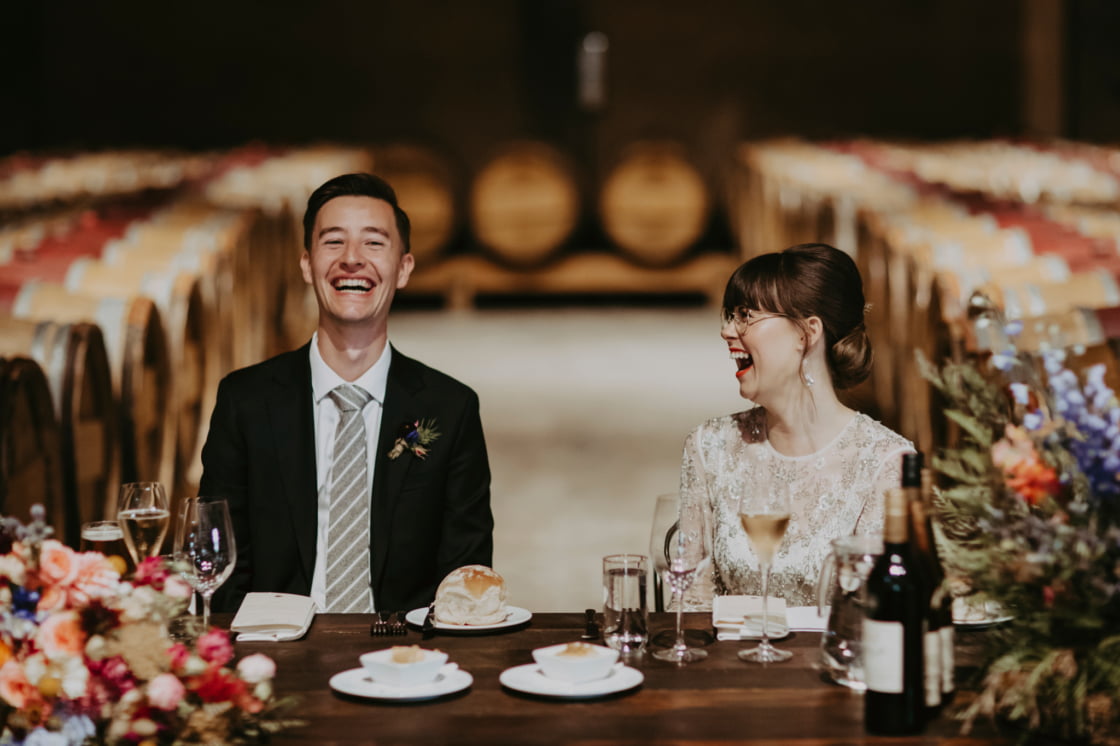 THE VENUE “We looked at quite a few venues in Hawke’s Bay, but we fell in love with the Cuve Room at Church Road Winery. The space was intimate… and moody and we love a glass of wine!”