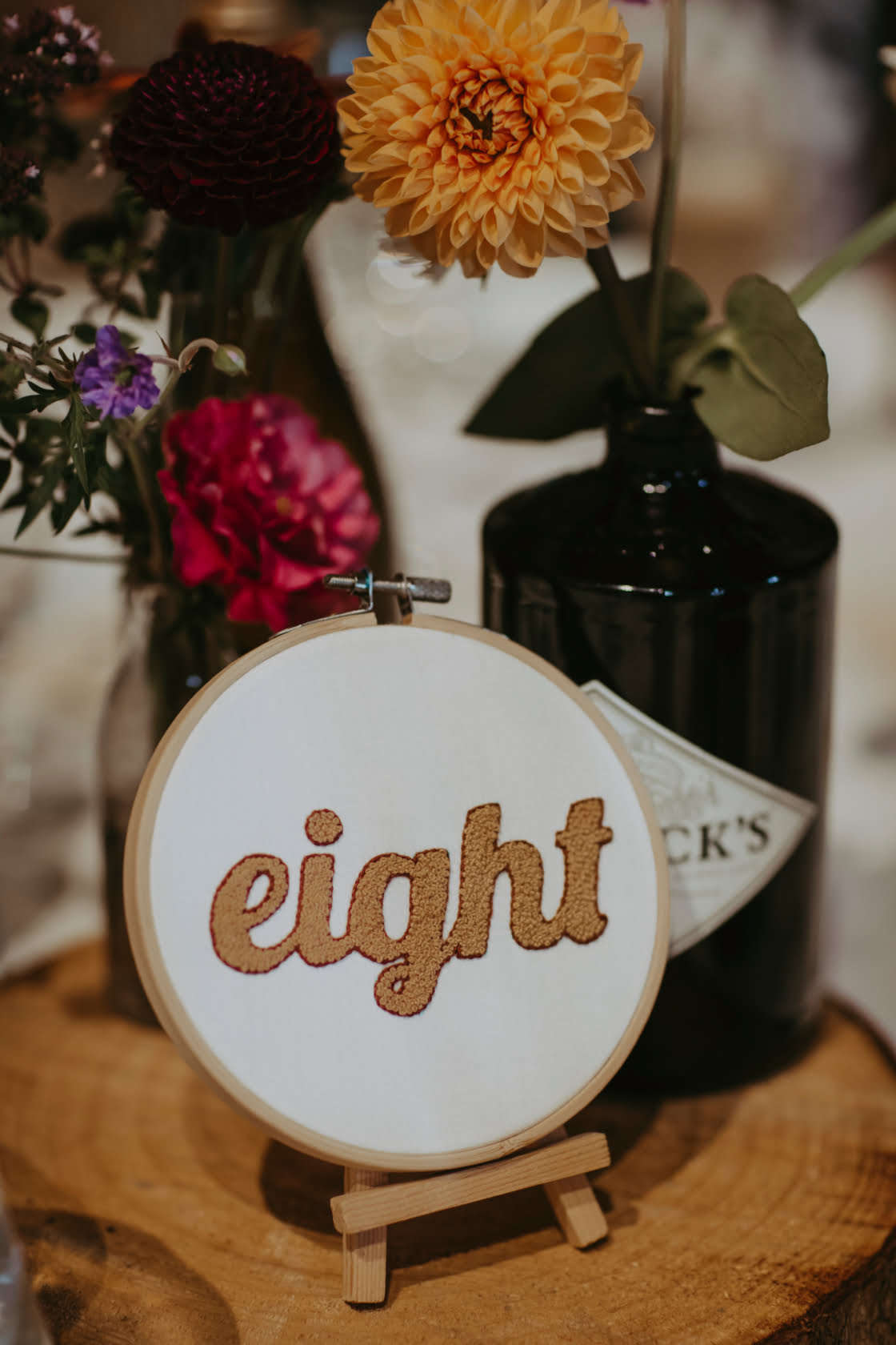 DIY “About a year before the wedding I taught myself how to embroider and thought it could be fun to tie it into the wedding, so I decided to hand-embroider the table numbers. What started as a fun craft project turned into countless hours embroidering thousands of tiny knots, right up until the afternoon before the wedding! It all came together perfectly on the day.”