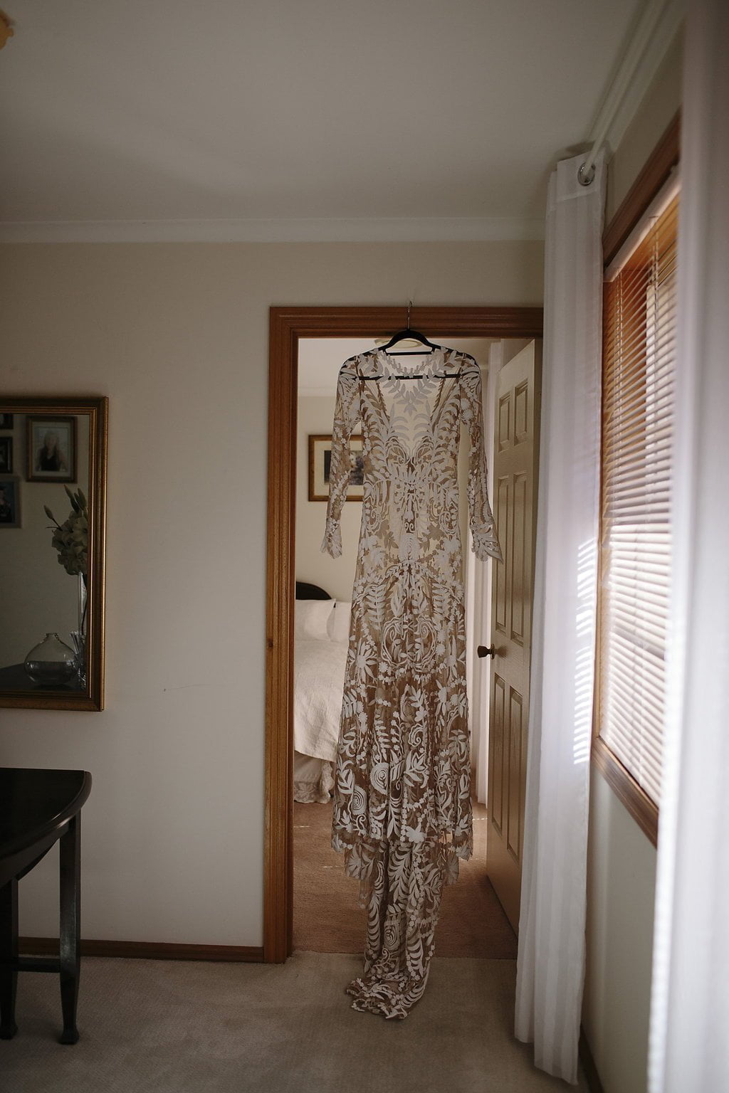 THE THEME “Dark, wild and romantic. All we wanted to do was to create a happy, warm and love-filled day that we could have fun, eat, drink, and dance with our closest people. We did a bit of everything. We tried to minimise the in-between time for our guests, so we started canapés and drinks at 5pm. We then had a sit-down, banquet-style dinner so that everyone could choose what they felt like eating and could pass around to each other like one big family dinner. We didn’t have a bridal table either- we wanted our bridal party to sit with their partners. We also had roving dessert canapés which were awesome because everyone got something sweet while on the dance floor!”
