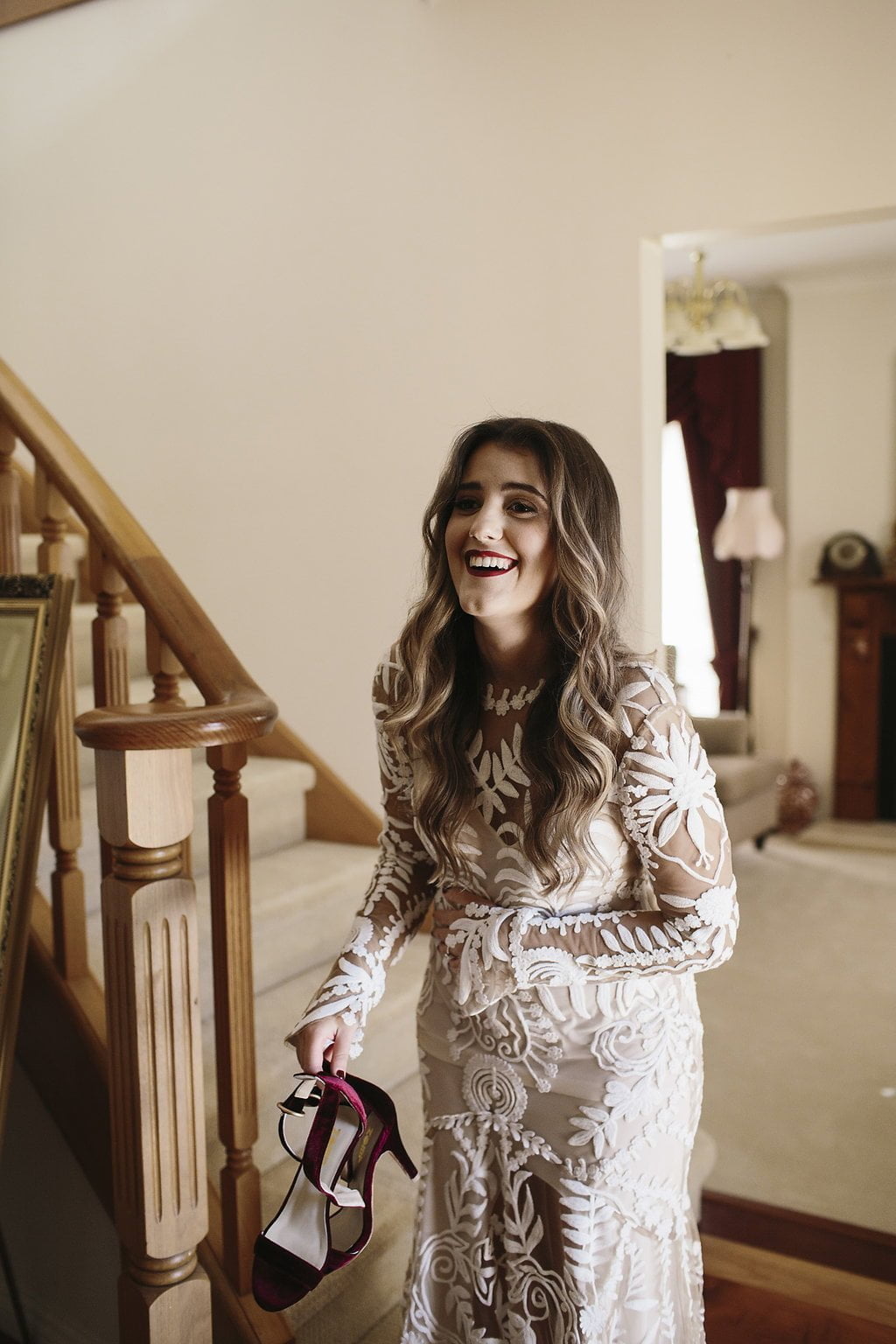 These two met during a work stint at Freedom Furniture of all places, while they were uni students. “I was working on the shop floor, and Dom was working in the warehouse. I was always happy to check if anything was out the back so I could talk to him and he’d help me carry it out so he could walk with me too.” It all came full circle when they “partied at our wedding in a warehouse,” adds the bride. And there, involved in it all, was not one, but five of our HM directory vendors, It’s Beautiful Here on photos, Miss Ladybird Cakes, a gorgeous gown by Rue De Seine from The Bridal Atelier and the fun-loving guys from Heartbreak Hotel Photo Booth…