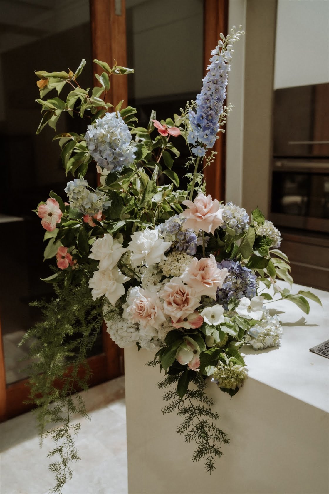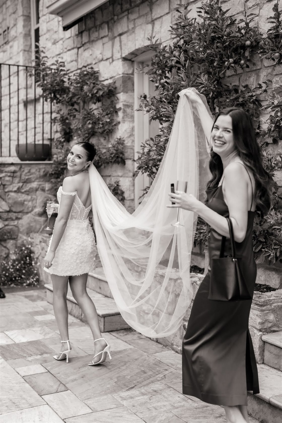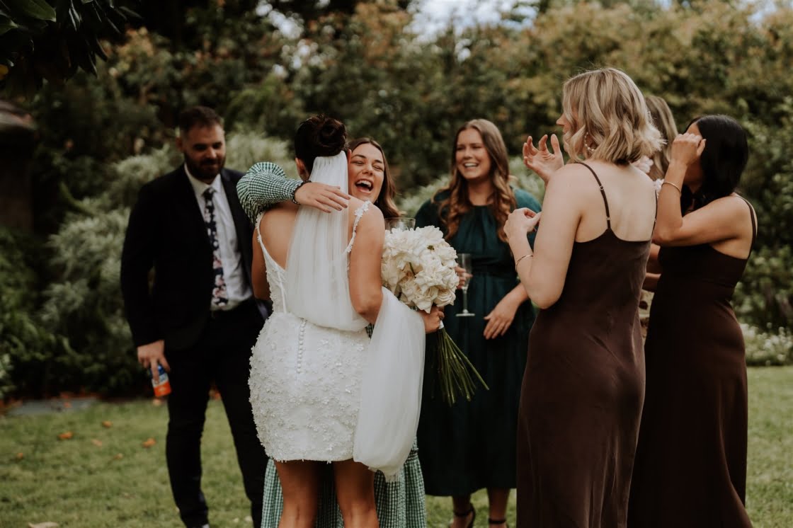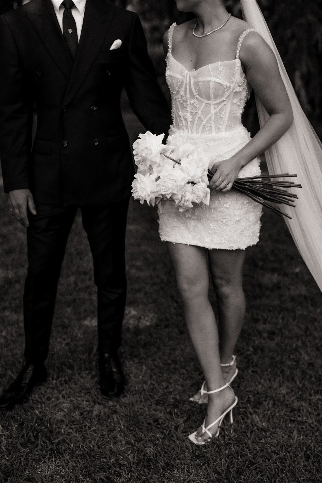 CONTRIBUTING VENDORS Photographer Shot From the Heart Florist The Petal Edition (formerly Petal Flower Co.) Stationery Greenvelope Ceremony Banool Gardens Reception Chin Chin Celebrant Panache & Co Rings Dwayne Designs THE BRIDE Gown Marquise Bridal (ceremony), Stone Cold Fox (second look) Veil Marquise Bridal Robe & PJs Piyama Shoes Bottega Veneta Necklace Dorsey Hair Weiss.hair Fragrance Maison Francis Kurkdjian Baccarat Rouge Bridesmaid dresses Scanlan Theodore, Dion Lee, One Fell Swoop, SIR. Bridesmaid gifts Piyama, Mecca THE GROOM Suit, Shirt & Tie Houndstooth Tailors Shoes Aquila Watch Bape Barber Blck & Brwn Barbershop