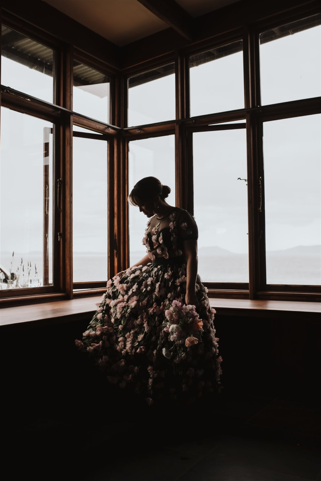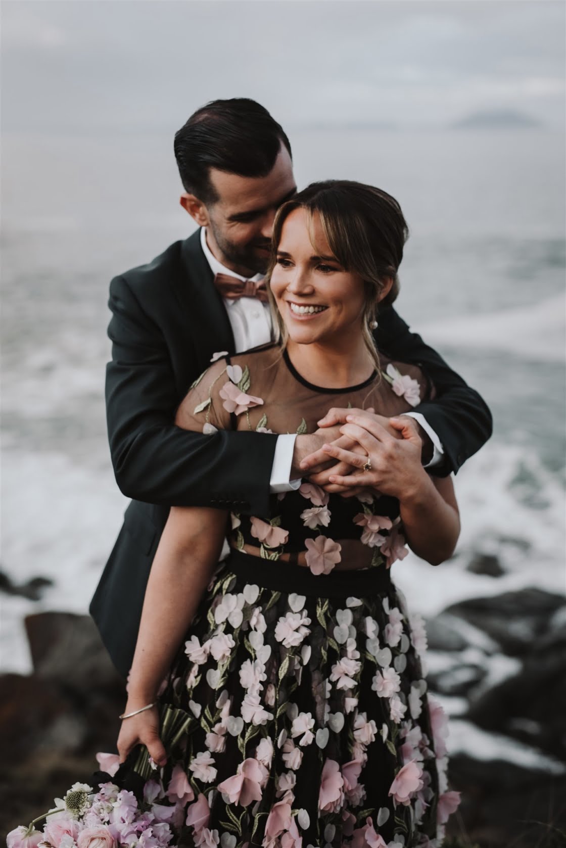 FAVE DEETS “I loved the fun, playful flowers by The Floral Criteria. The moody, stormy weather that afternoon, while not necessarily what you’d think of for ideal wedding weather, made for a beautiful and dramatic view over the bay and a cosy meal with a roaring fire that lasted well into the night. The food by Hubert + Dan was also absolutely spectacular.”