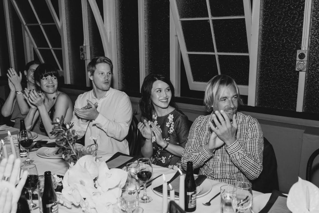 DIY “Ben made all of the candle holders himself. They were minimal white cylindrical holders of all different lengths that he made with some dowel, a drill and gloss paint. He’s taking orders if you’re keen.”