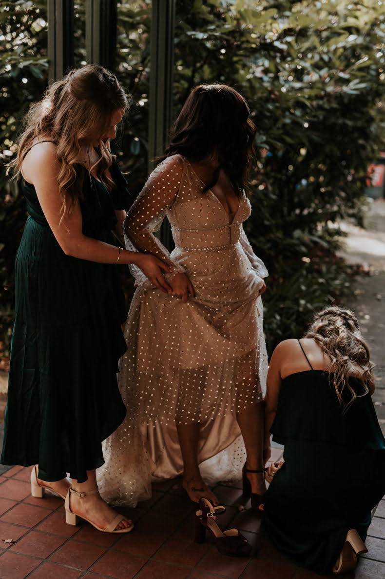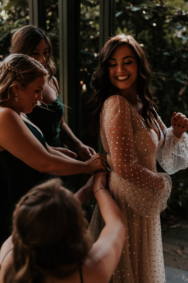 And before we take a journey through the amazing snaps from the event, can we also take a minute for that dress?! Found with help from the absolute babes at The Bride Lab, Kate swears she felt like “the most sophisticated disco ball ever” in her sparkly Willowby by Watters gown.