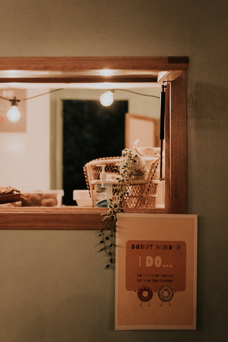 FAVOURITE DETAILS “Having hot doughnuts on a freezing night instead of a traditional wedding cake! Courtney from Mrs Sippy Mobile Coffee Caravan went above and beyond to figure out how to get us the best fresh hot doughnuts ever – she even came back the next day and spent hours making coffee for a bunch of hungover people! Legend.”