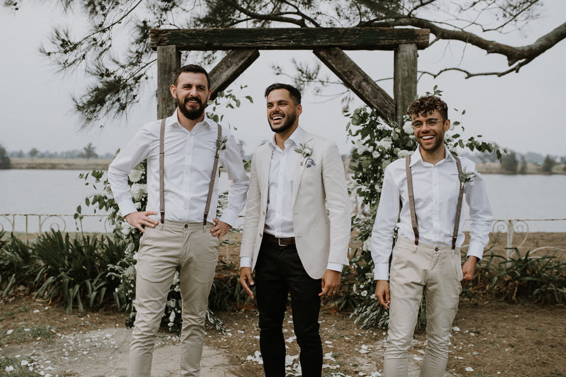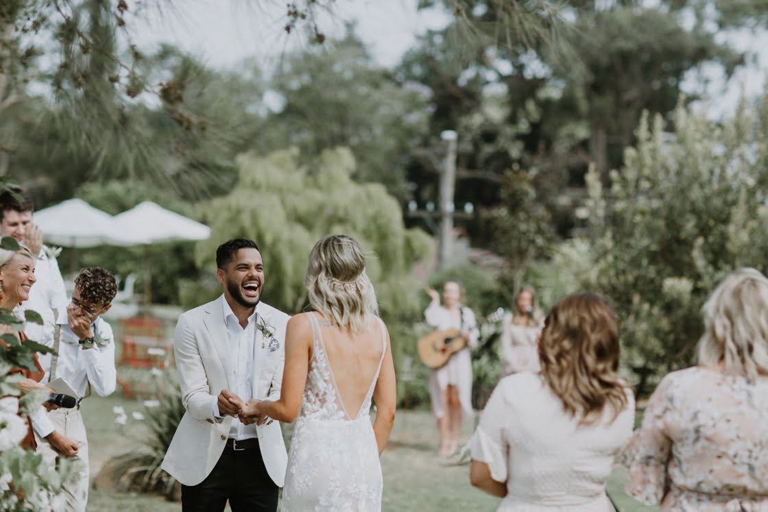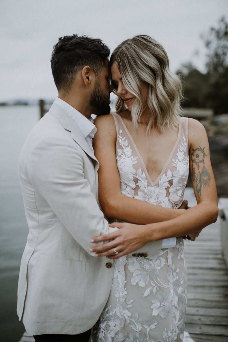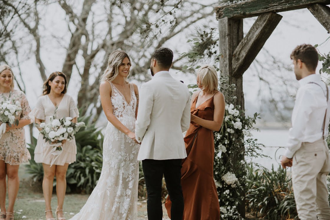 CONTRIBUTING VENDORS Photographer Josh Jay Florist Ivylane Collective Place Cards ConfettiBearDesigns via Etsy Invites DesignMummy via Etsy Venue Driftwood Shed Catering Garnish Catering Cake The Naked Cake Cake Topper Creating Monkies via Etsy Wedding Favours Teavision Welcome Sign Decal FixateDesigns via Etsy Entertainment Lana & Bek DJ XYDJ Celebrant Jacqueline Majer Rings Louise Jean jewellery, Zappacosta Jewels Napkins South Coast Party Hire BRIDE Dress Made With Love Bridal Hair Piece And You Bridal Loungewear ASOS, Cotton On Shoes Windsor Smith Hair & Makeup The Makeup Collective Bridesmaid Dresses Spicy Sugar via Gigiola, Billy J, Showpo Bridesmaid Shoes Spurr via The Iconic, Billini Shoes, London Rebel via Famous Footwear GROOM Suit M.J. Bale Pants Industrie Shoes Staple Superior via The Iconic Watch Nixon Groomsmen Shirts M.J. Bale Groomsman Pants Industrie Groomsman Shoes Staple Superior via The Iconic