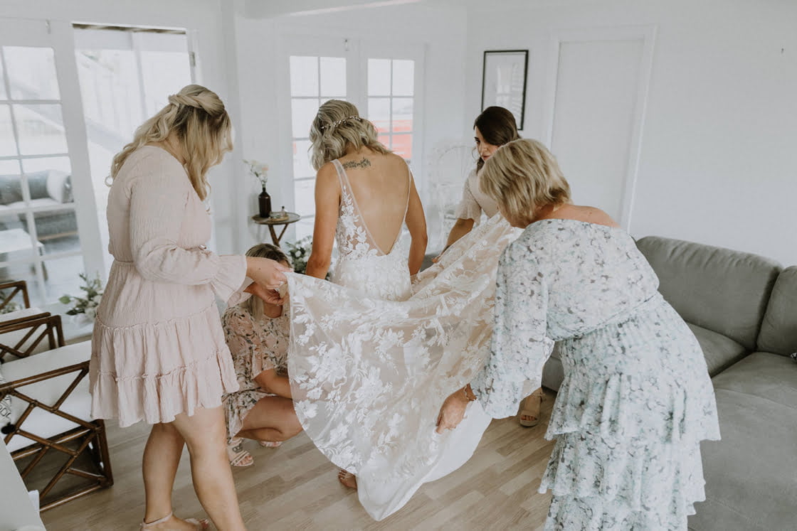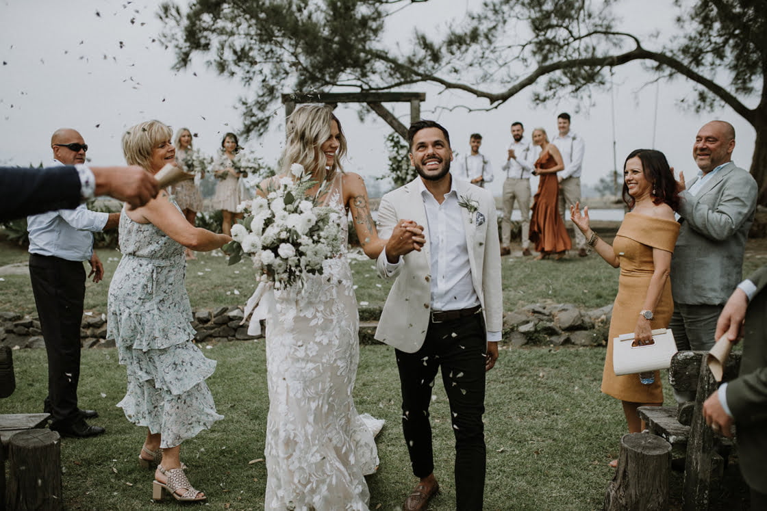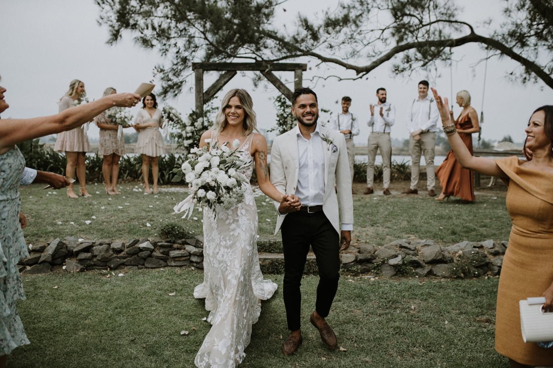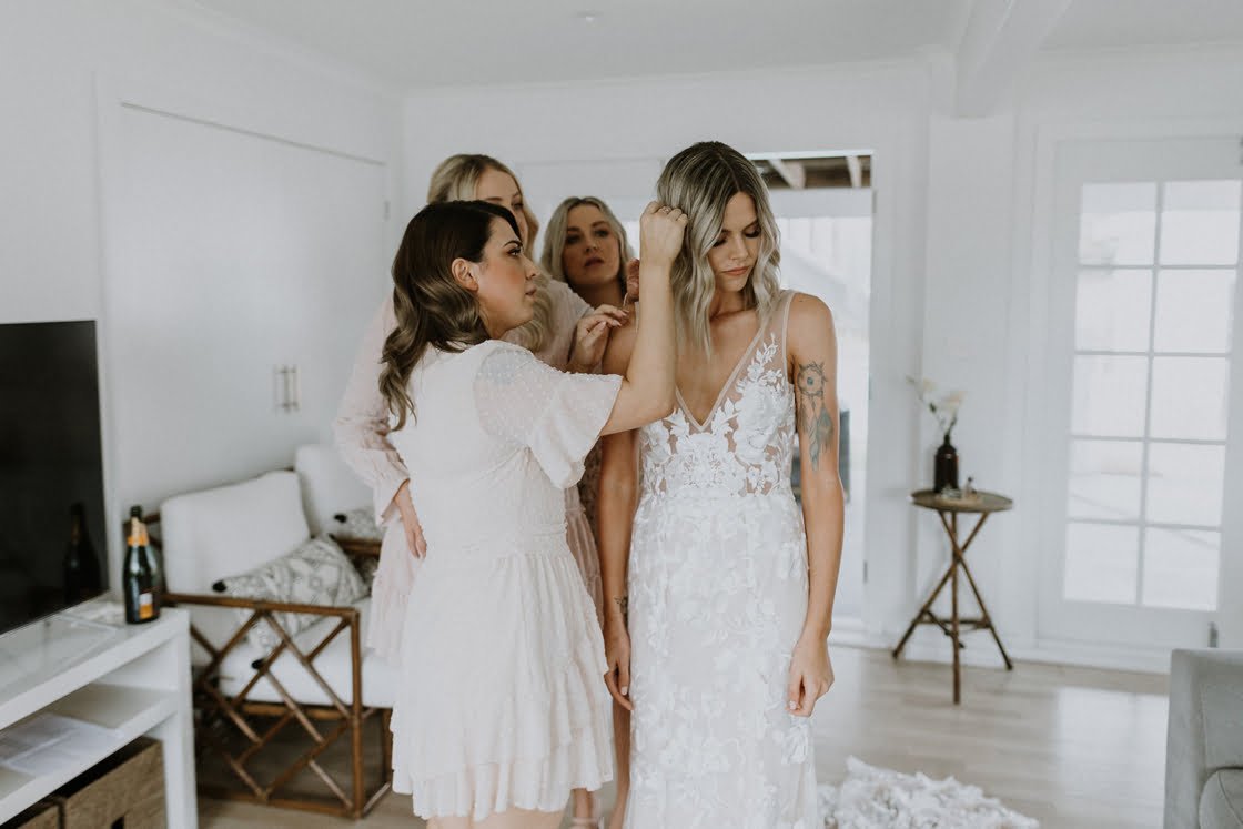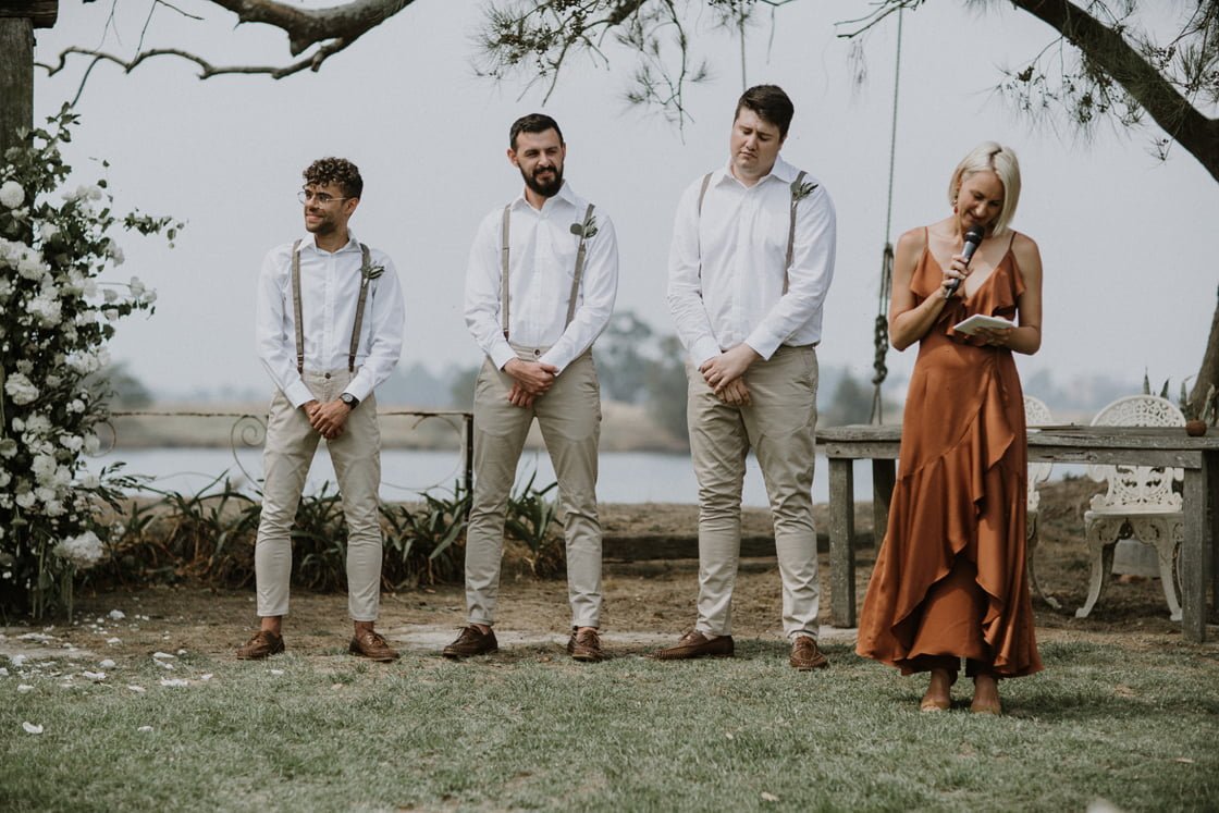CONTRIBUTING VENDORS Photographer Josh Jay Florist Ivylane Collective Place Cards ConfettiBearDesigns via Etsy Invites DesignMummy via Etsy Venue Driftwood Shed Catering Garnish Catering Cake The Naked Cake Cake Topper Creating Monkies via Etsy Wedding Favours Teavision Welcome Sign Decal FixateDesigns via Etsy Entertainment Lana & Bek DJ XYDJ Celebrant Jacqueline Majer Rings Louise Jean jewellery, Zappacosta Jewels Napkins South Coast Party Hire BRIDE Dress Made With Love Bridal Hair Piece And You Bridal Loungewear ASOS, Cotton On Shoes Windsor Smith Hair & Makeup The Makeup Collective Bridesmaid Dresses Spicy Sugar via Gigiola, Billy J, Showpo Bridesmaid Shoes Spurr via The Iconic, Billini Shoes, London Rebel via Famous Footwear GROOM Suit M.J. Bale Pants Industrie Shoes Staple Superior via The Iconic Watch Nixon Groomsmen Shirts M.J. Bale Groomsman Pants Industrie Groomsman Shoes Staple Superior via The Iconic
