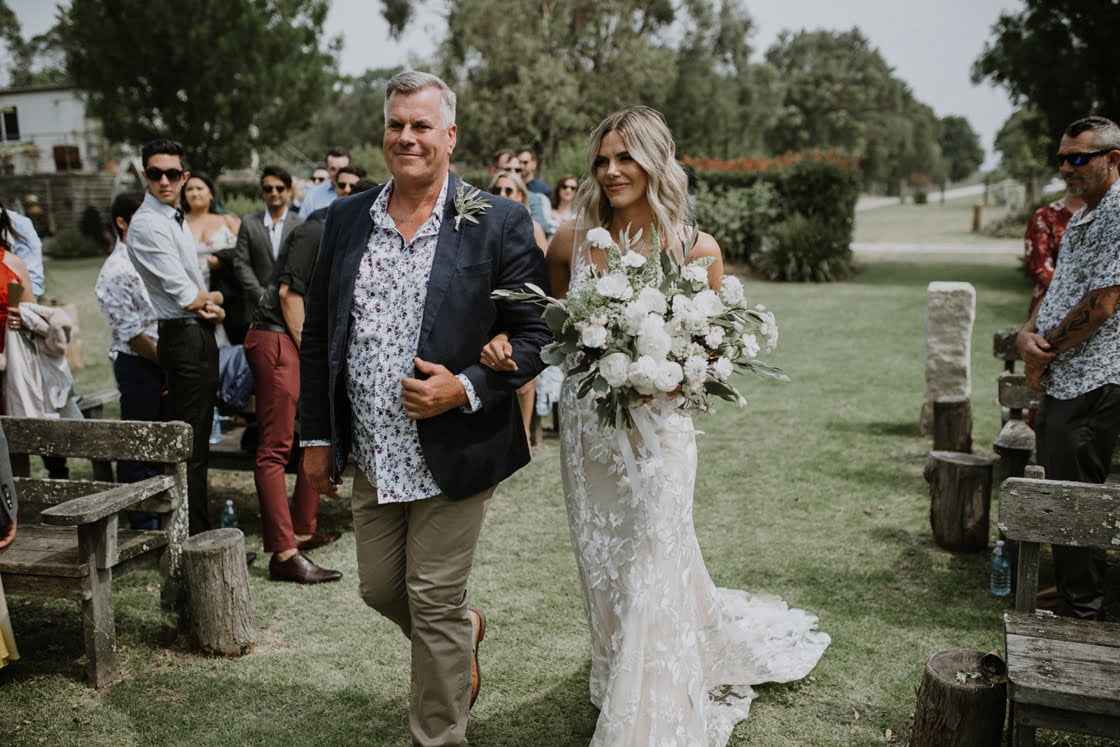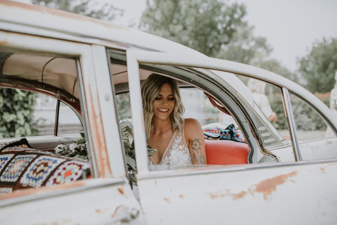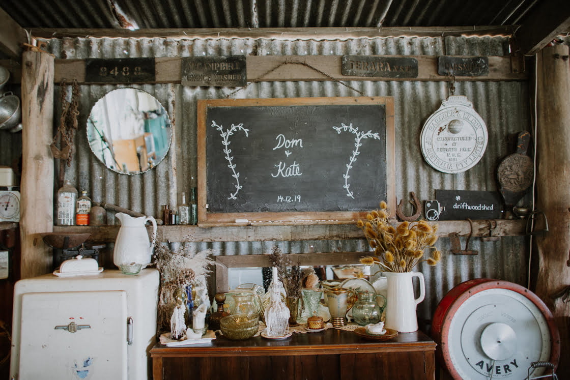 FAVOURITE DETAILS “Harry the holden came with the venue and, although not road worthy, I jumped in at the top of the driveway and made our way down to the ceremony. It was a really cool car and totally fit in with the venue. Also, Driftwood Shed itself. We were obviously blown away from the first time seeing it but even on the day, we found ourselves getting amazed by all the little details here and there. Having the fire pit going as the sunset, having so many interesting locations for our photos without having to leave, and the Shed itself to finish the night was fantastic.”