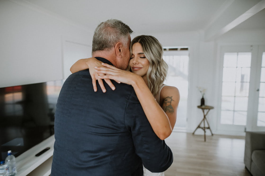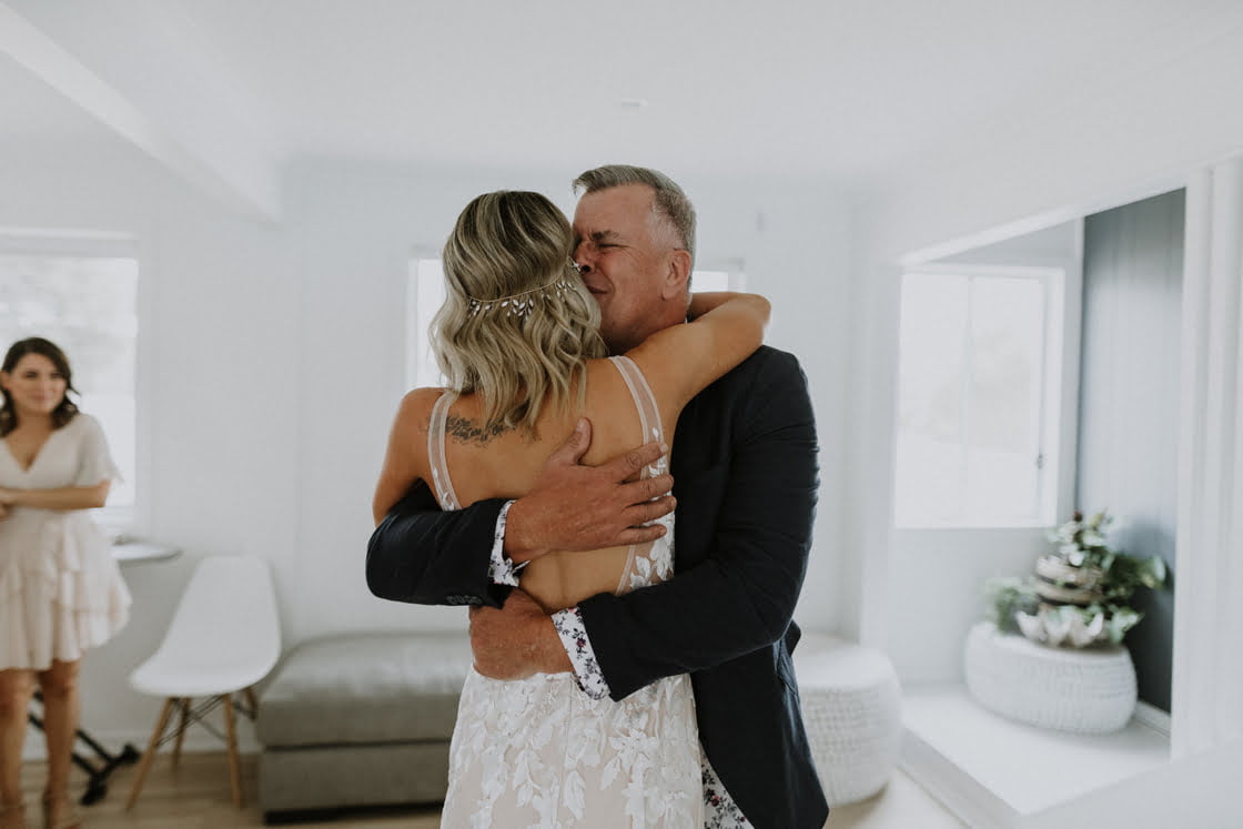 FAVOURITE MOMENT “My favourite moment of the day was the moment my dad saw me in my dress. My dad is a softy deep down but has a tough exterior, so I really didn’t expect him to shed a tear. Nothing prepared me for his reaction. He was led down the stairs with closed eyes and once he opened them emotion flooded across his face and he burst into tears. I am tearing up thinking of the moment again, we embraced and cried together, happy tears. of course. He had everyone in the room crying and Josh Jay captured the moment perfectly. I will cherish that moment forever. For Dom, he said seeing me for the first time coming down the aisle was his favourite moment. He was so convinced he was going to break when he saw me but said that was the happiest moment for him and he couldn’t do anything else but smile.”