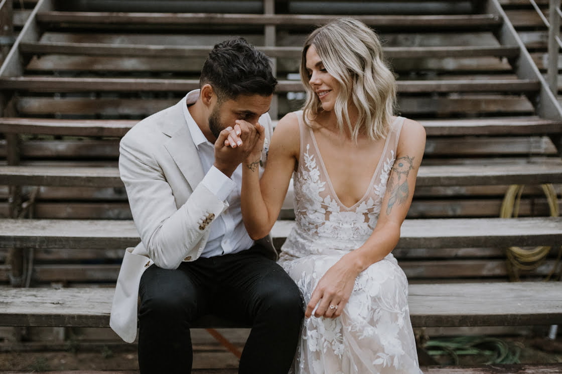 Kate & Dom met at the ripe young age of 18, but it wasn’t until a couple of years later that the two started officially dating. Seven years of travel and good times led them to Mauritius, where Dom proposed mid canoe ride. Keen to capture their adventurous side, one of Kate & Dom’s very early decision was to book photographer Josh Jay. Kate laughs, “One of the things I knew before I booked my photographer is he tends to take a lot of adventurous photos of couples whether they are on the edge of a cliff or climbing fences to get into paddocks.” A couple of fab photos later and Kate & Dom couldn’t be more stoked with the result. With catering covered by Garnish Creative Catering and suits by M.J. Bale, all other details were well thought out. Scroll down for the rather lush results…
