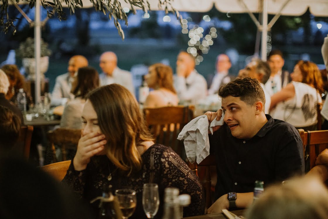 WE’RE GLAD WE “Another pleasant surprise that worked out even better than we had envisioned was getting Dom’s friend Brad, who he grew up with, to MC our wedding. It was such a great choice as he did an outstanding job, filling the night with personal stories and jokes that included everyone there. This was such a nice, personal touch and gave such a warm and fun feel to the night. We definitely recommend choosing a close friend as an MC.”