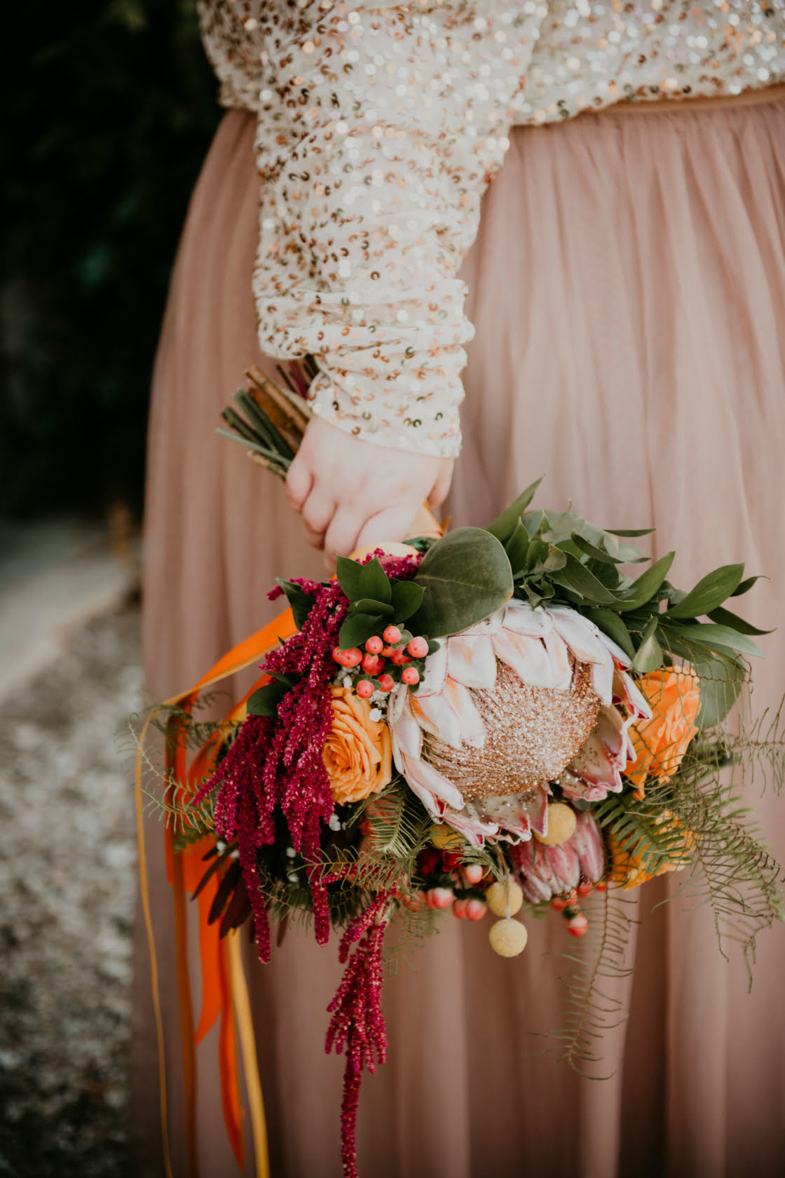 THE VIBE “We both love colour and eclectic vibes, and I love sparkles and glitter. The day had to be bright, fun, sparkly and unique. It also had to be intimate, casual, relaxed and fun. It also had to be a day that didn’t cost a fortune. In saying that, we didn’t purposely set out with a budget we had to stick to. Going into the planning we knew what we did and didn’t want to pay, and we knew what parts of the day we wanted to spend our money on. We just made sure we included the things we wanted and were important to us.”