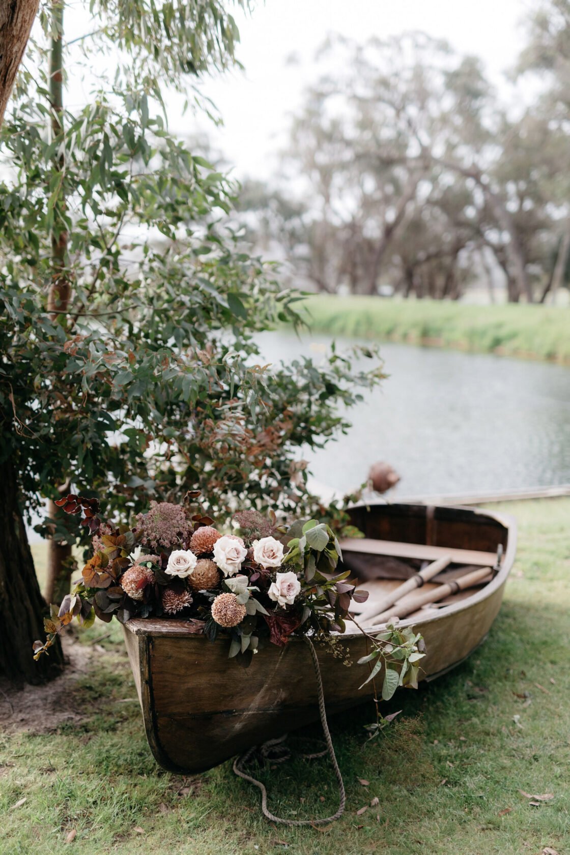MEMORABLE MOMENT “Stepping outside just the two of us during the reception to have some photos taken. We walked out to the most incredible sunset over the gorgeous heart-shaped lake at Tanglewood. We got into a wooden rowboat decorated with flowers and rowed out to the middle of the lake. It made for some of our favourite photos, but it was also just so special to have the time out for the two of us.”