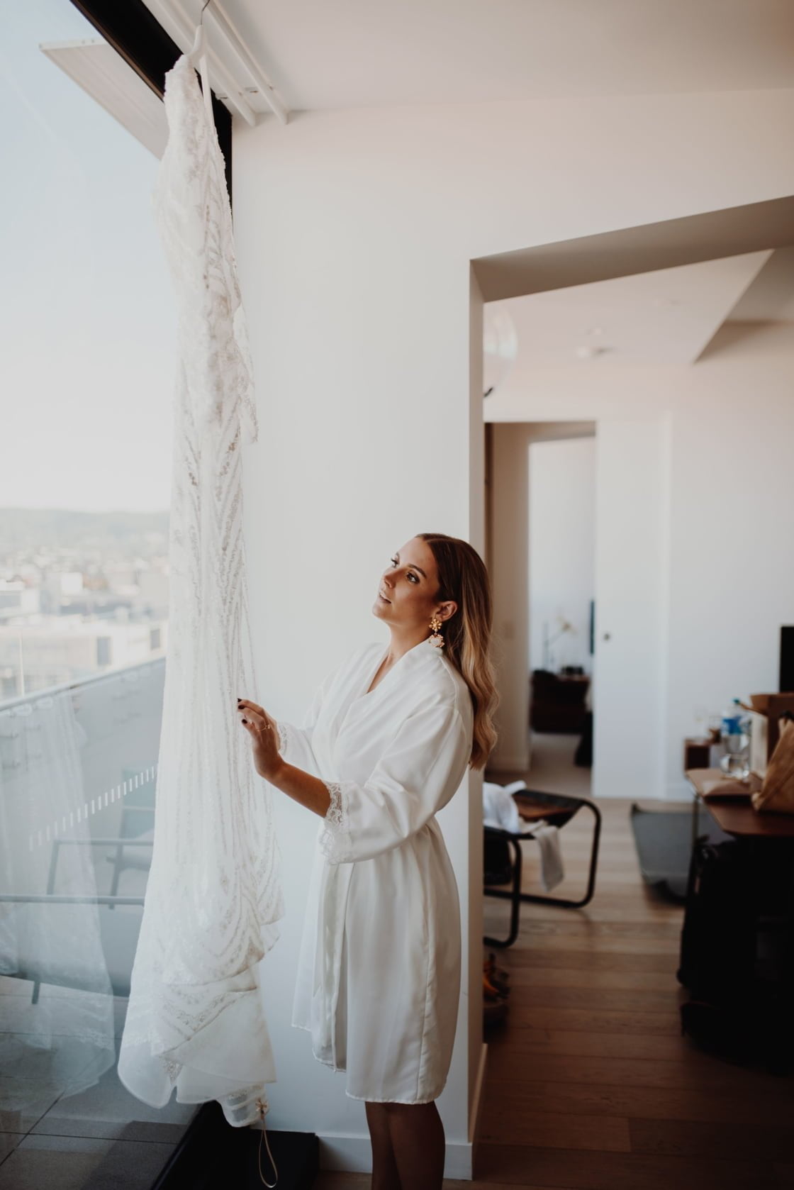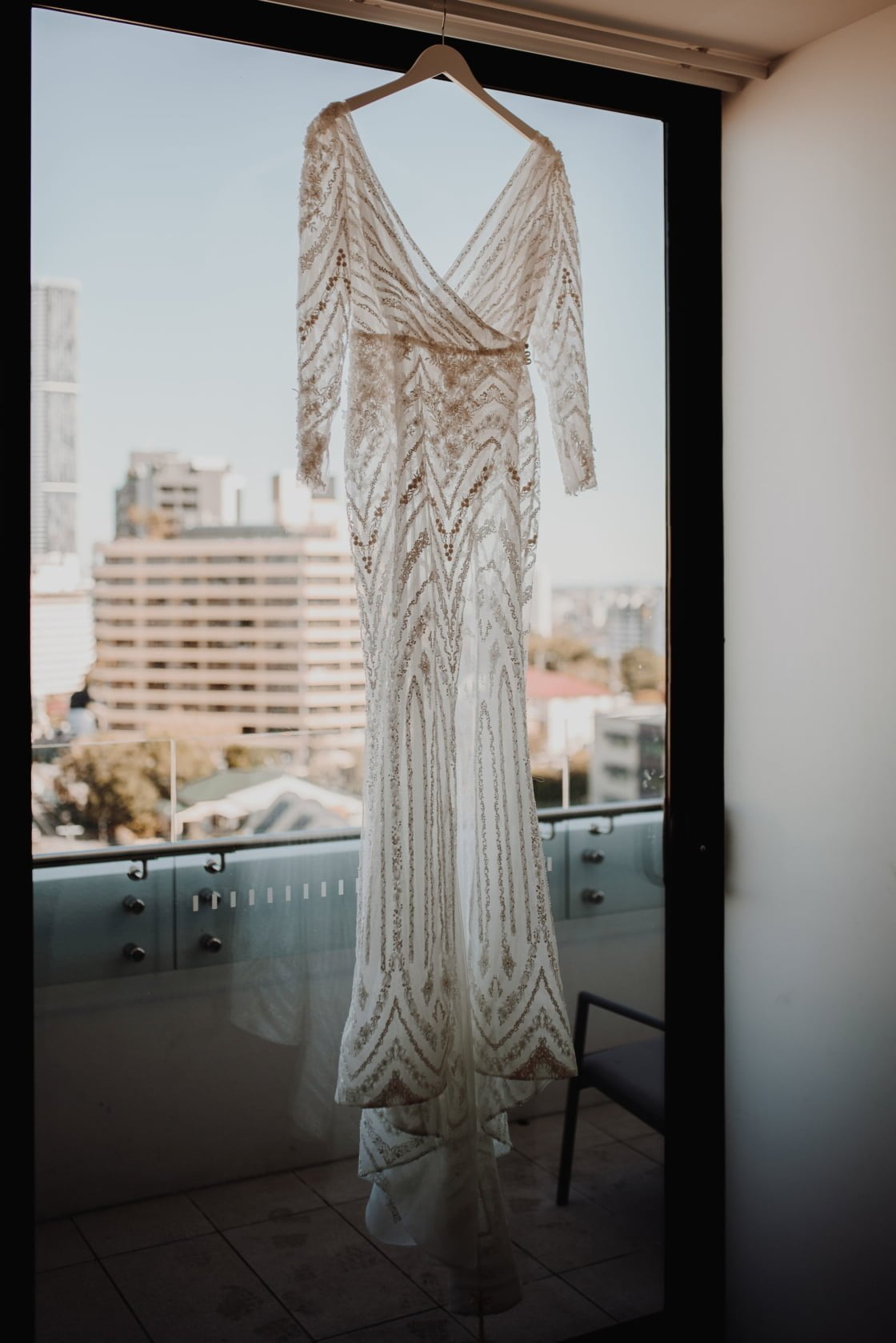 THE DRESS “The very first dress I fell in love with was The Bowery by Pallas Collective. Its ethereal style was so perfect but we were trying to keep the wedding as low key and budget-friendly as possible, so I decided not to splurge. I ordered another online and had a little hiccup when the dress turned up completely different only three months out from the wedding! It turned out that all roads led back to Pallas, I rushed straight into the Claremont boutique and the ladies were so lovely and I ended up with the dream dress I had loved from the beginning! Some things are just meant to be.”