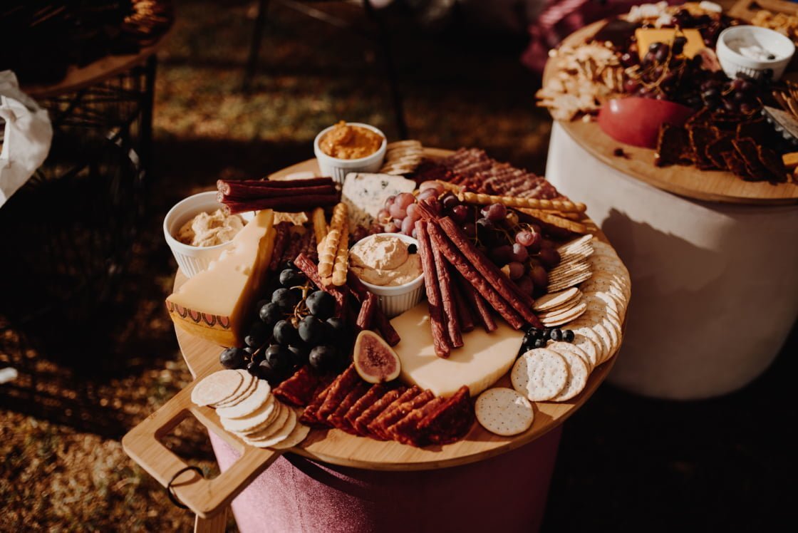 THE VIBE “We wanted our wedding to feel like our favourite kind of Friday night at home- albeit a little more glam than our typical weekend. The food and wine were a big part of the day. We had Aperol Spritz’ and chose our favourite wines to go with an epic grazing table from The Platter Collective, our favourite wood fired pizza’s from Pizzantica and the mother of all dessert tables with my favourite cakes from Jocelyn’s Provisions and the most delicious brownies from Baix Brownies. I had always loved the idea of a winter wedding and so we went for that as the theme, choosing dark colours for all the florals and beautiful dusty pink and deep burgundy velvet couches and chairs from Hampton Event Hire with lots of black accents as well.”