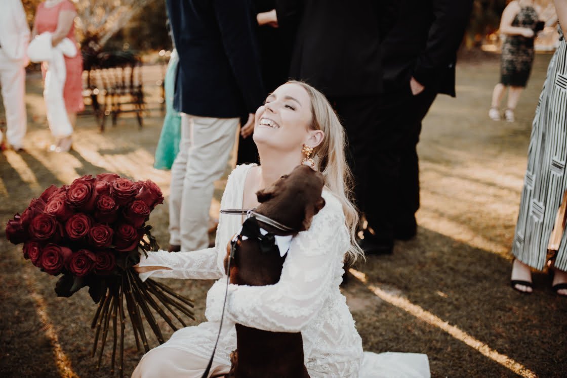 CONTRIBUTING VENDORS Photographer Mike Hemus Photography Cinematographer Luna On The Day Coordination Hello Friend Creative Florist Ivy and Bleu Stationery Tori Walsh Ceremony & Reception Private Property (Yatala, QLD) Catering The Platter Collective & Pizzantica Cakes Jocelyn’s Provisions Brownies Baix Brownies Wedding Favours Daiso (Pots) Glistening Occasions (Gold Acrylic Toppers) Hire Items Hampton Event Hire (Furniture & Crystal Glassware) Wishing Well Sketch and Etch Marquee Tentz Entertainment Steven Childs Celebrant Shea Morrison (Friend) Rings Ashley Douglas and Xennox Diamonds Portable Toilets Portable Powder Rooms THE BRIDE Bridal Gown Pallas Collective Reception Dress Zimmermann Robe Soho Robe via MYER Pyjamas Missguided Shoes Billini Earrings by Christie Nicolaides Hair Farrah. Makeup The Beauty Journal Bridesmaid Dresses Gary Bigeni Bridesmaid Gifts Tree of Life (Crystals), Mecca (Lipstick) Seed Heritage THE GROOM Suit, Shirt, Bow Tie & Shoes Black Jacket Suiting Cufflinks Calibre Grooming The Emporium Barber Groomsmen Gifts Happy Socks & Hard To Find (Cocktail & Crystal Tumbler Set)