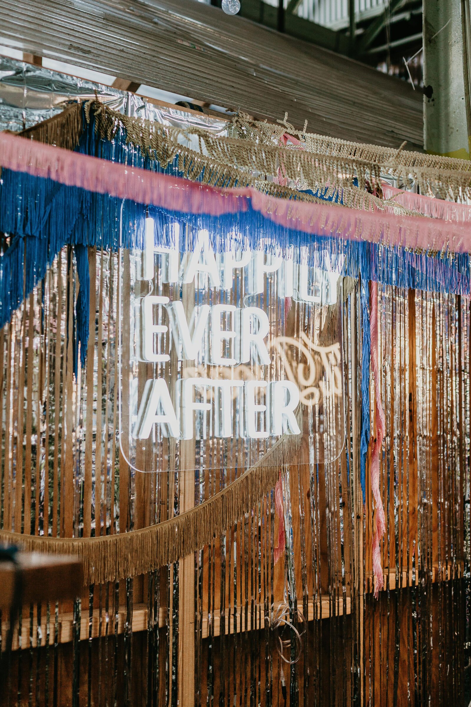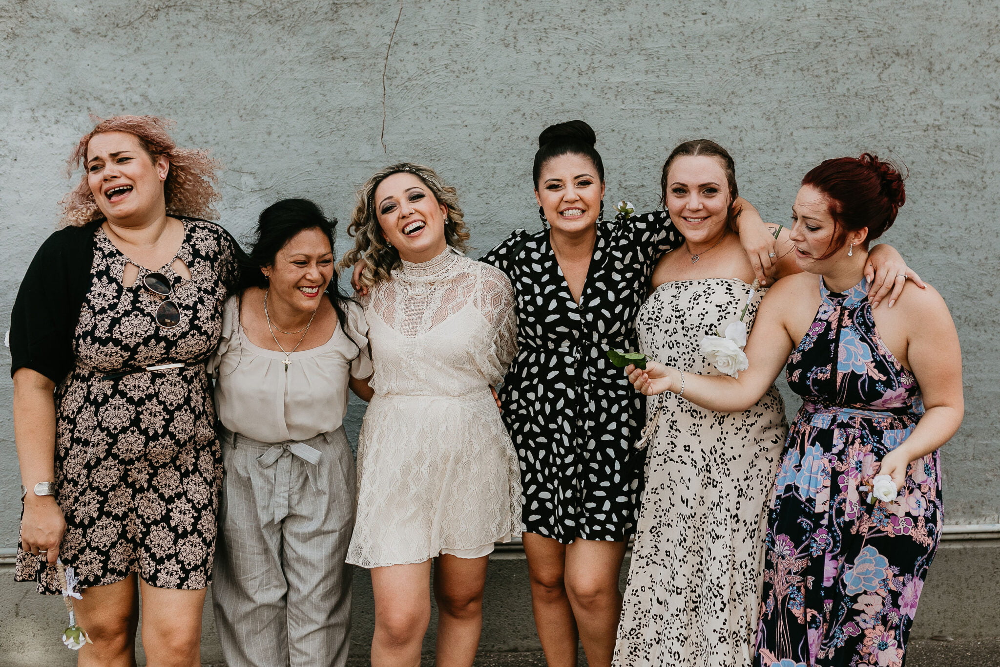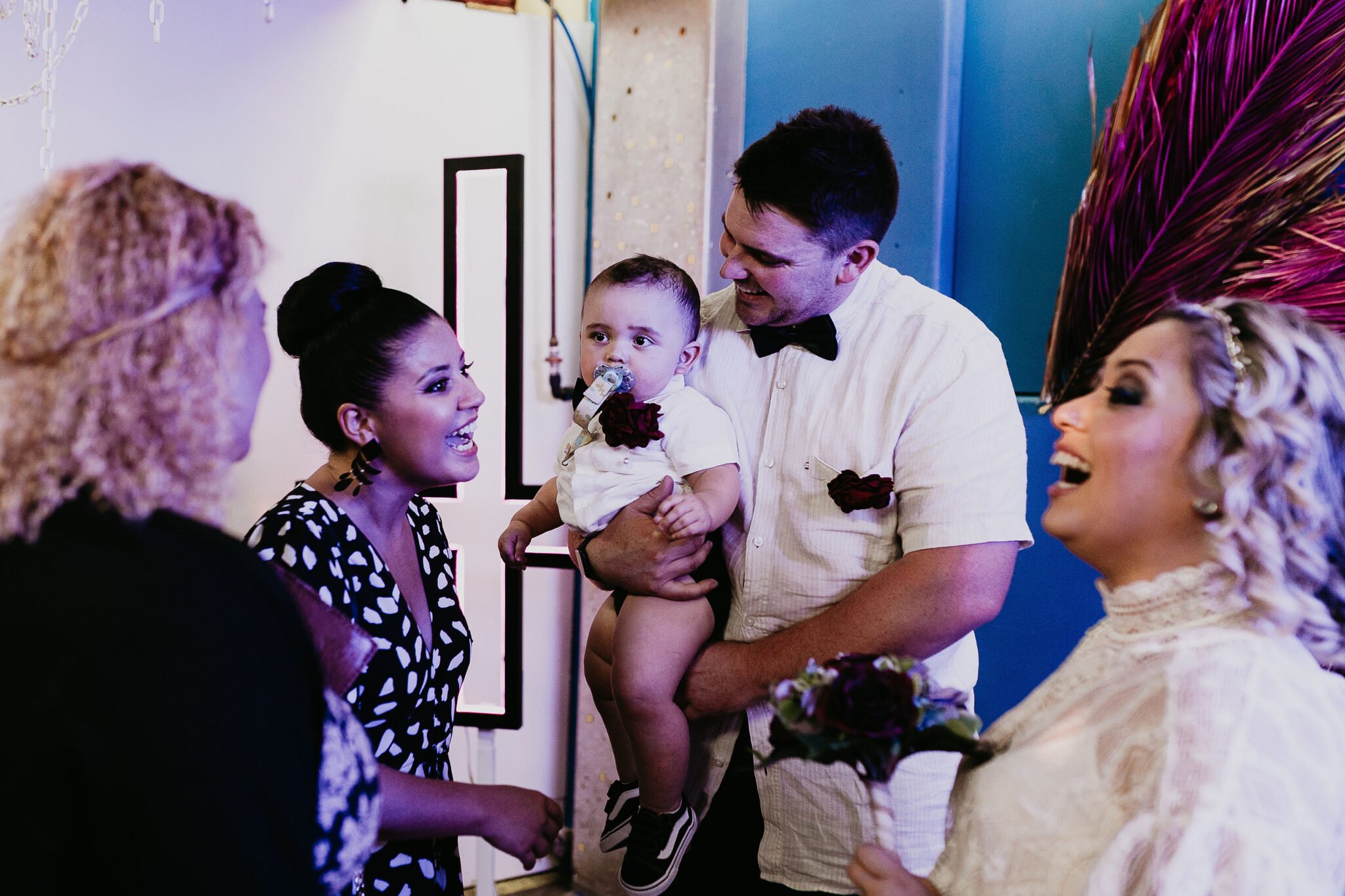 After six years together, hopeless romantic Billy proposed to Lu in a fairy light strewn gazebo and from the sounds of things, Lu was pretty stoked, as she tells us, “When we got underneath the gazebo there was a small table with a framed photo of our baby’s ultrasound and a lightbox next to it with the words “Will you marry daddy?” Billy then gave me the ring and I said yes!”. Opting for a Vegas registry style wedding, complete with an epic Photo Booth (Heres looking at you Heartbreak Hotel Photo Booth), the pair were channelling an urban retro vibe. Scroll down for some fab captures from the wonderful Miranda Stokkel…