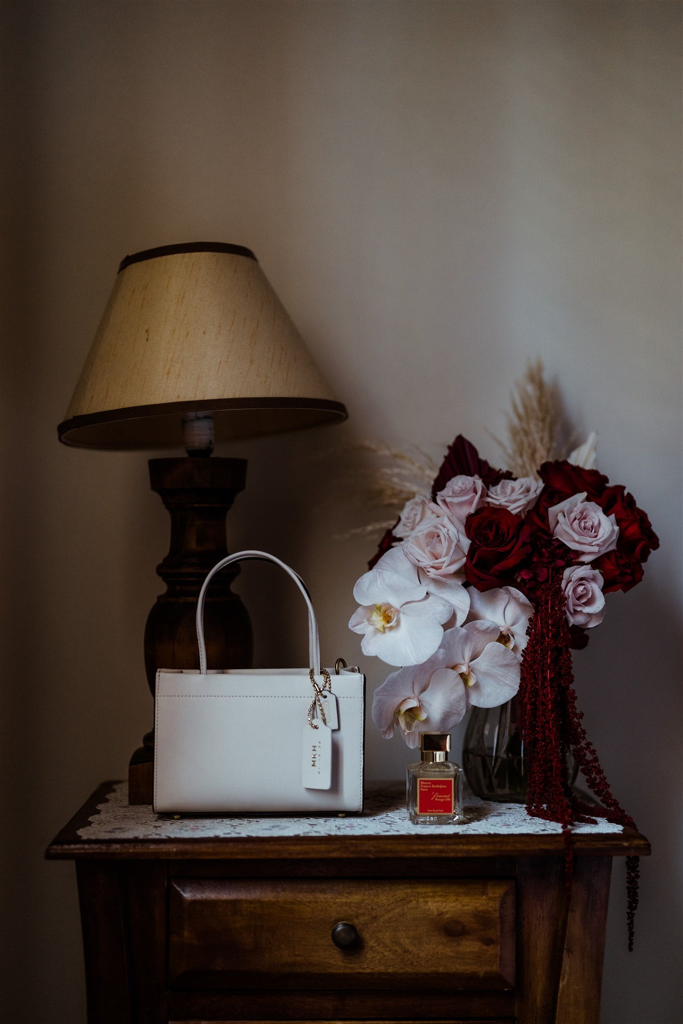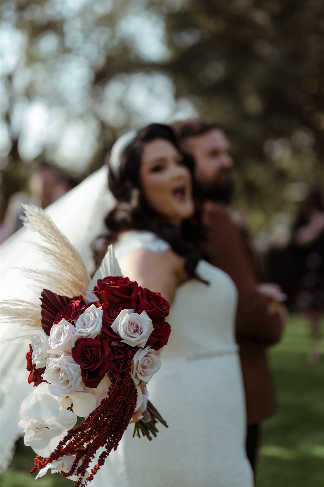 CONTRIBUTING VENDORS Photographer & Cinematographer Ring and Veil Florist WA Florists, Perth Wedding Stylist Stationery & signage Dream State Decor Ceremony & reception venue Rothwood Catering & dessert TasteScape Hire Items Hire Society Harvest Hire Style Neon Sign Say It In Neon Entertainment Champagne Wedding Duo Celebrant Kiss Me You Fool Rings Emessa Jewellery Transport Bingo Party Bus THE BRIDE Bridal gown designer & veil Studio Levana Bridal Boutique Confetti Occasions Hair piece Patricia Ann Bridal Robes Le Rose Shoes Novo Accessories Coach Hair Koko Blaq Makeup Jasmine Lee Fragrance Maison Francis Kurkdjian Baccarat Rouge 540 Eau de Parfum Bridal party outfits AM PM DRESSMAKER THE GROOM Suit Institchu Suspenders Bowtie and Arrow Tie Bolo Revival Shoes Florsheim