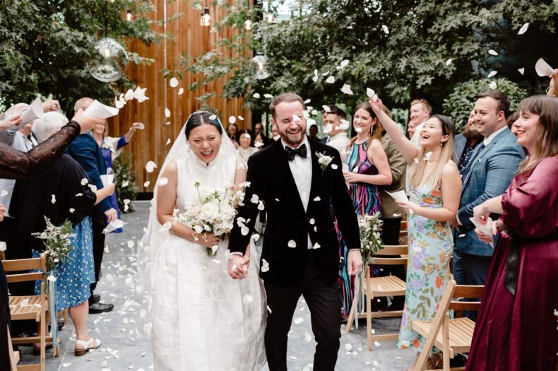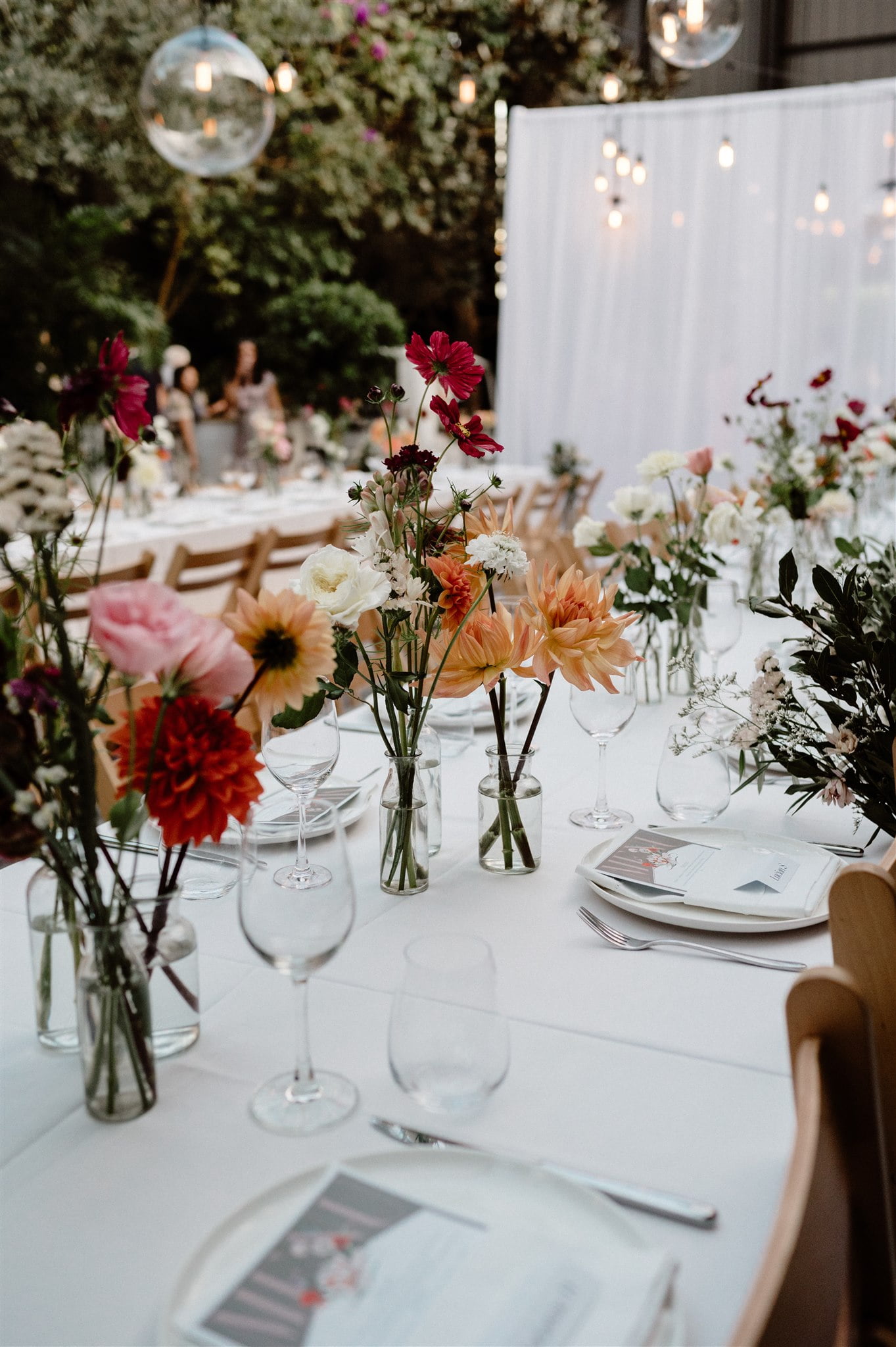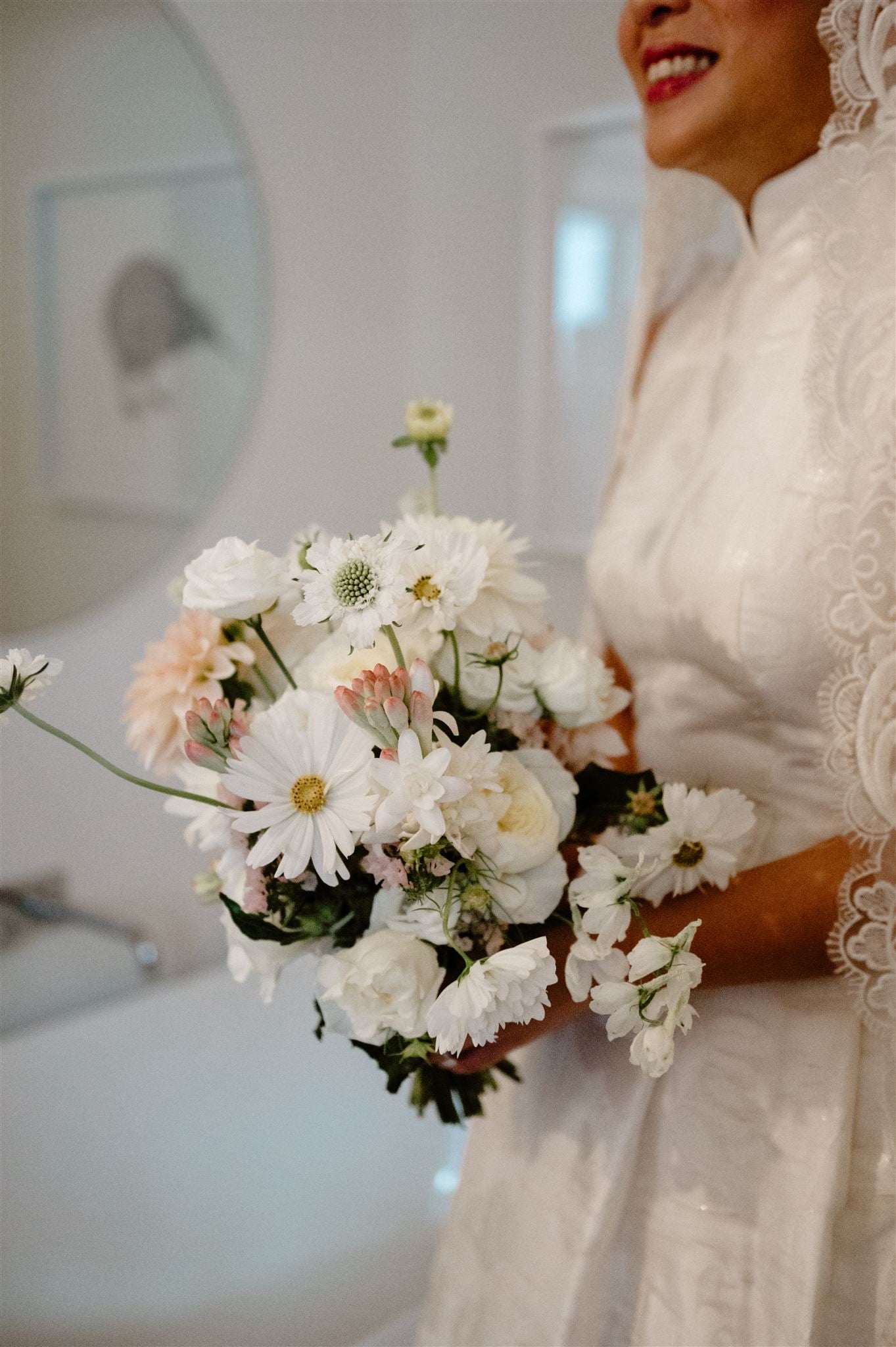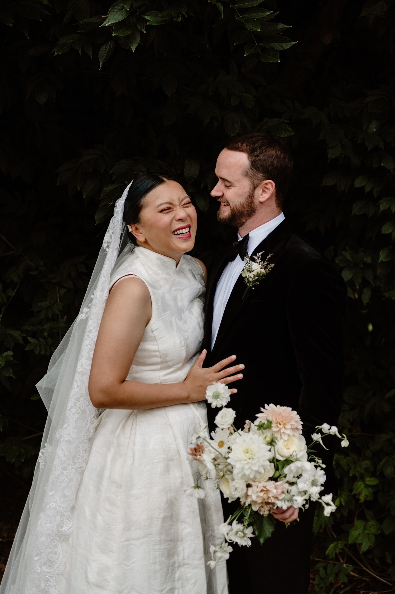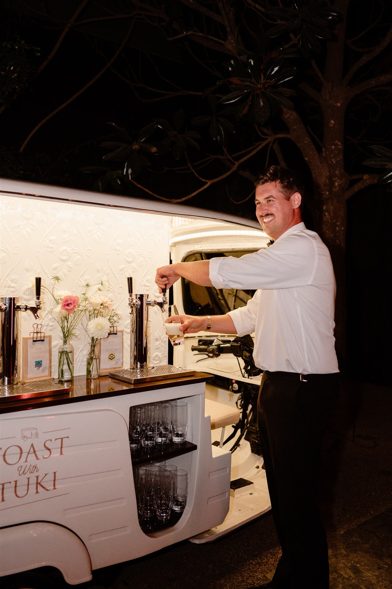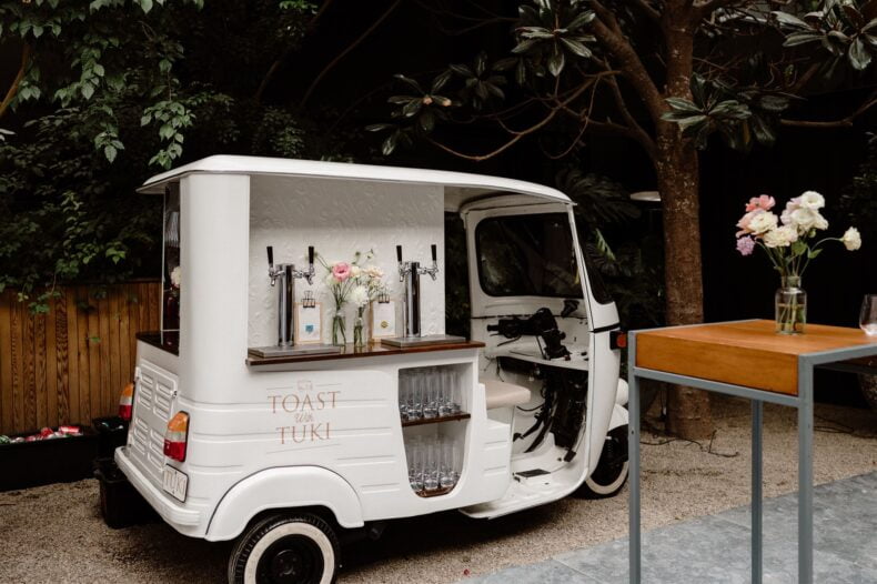 CONTRIBUTING VENDORS Photographer Kasia Kolmas Florist Kensal Stationery Design by Felix Lu (Melody’s brother) Ceremony & reception venue Glasshouse Food Trucks Toast with Tuki Cake Catroux Cake Topper Kensal Hire Items & signage Arkade Lighting Hire La Lumiere Entertainment DJ Sam Jones Celebrant Monica Mu Rings Hannah Cross Jewellery, Naveya and Sloane THE BRIDE Bridal gown designer Shiatzy Chen Reception outfit A.W.A.K.E Mode Veil Second hand Hair piece Simone Rocha Shoes Maison Margiela Accessories Hannah Cross Jewellery Hair Phillippa Hofman, Zoe Taylor Makeup Rae Sacha Fragrance Creed White Flowers Bridesmaid dresses Uniqlo, Zara THE GROOM Suit, shirt, tie & cufflinks Crane Brothers Black shirt PYE Shoes Joseph Cheaneys & Sons Watch Tissot Barber Christopher Huia Woods Groomsmen suits Frank Casey Suit hire