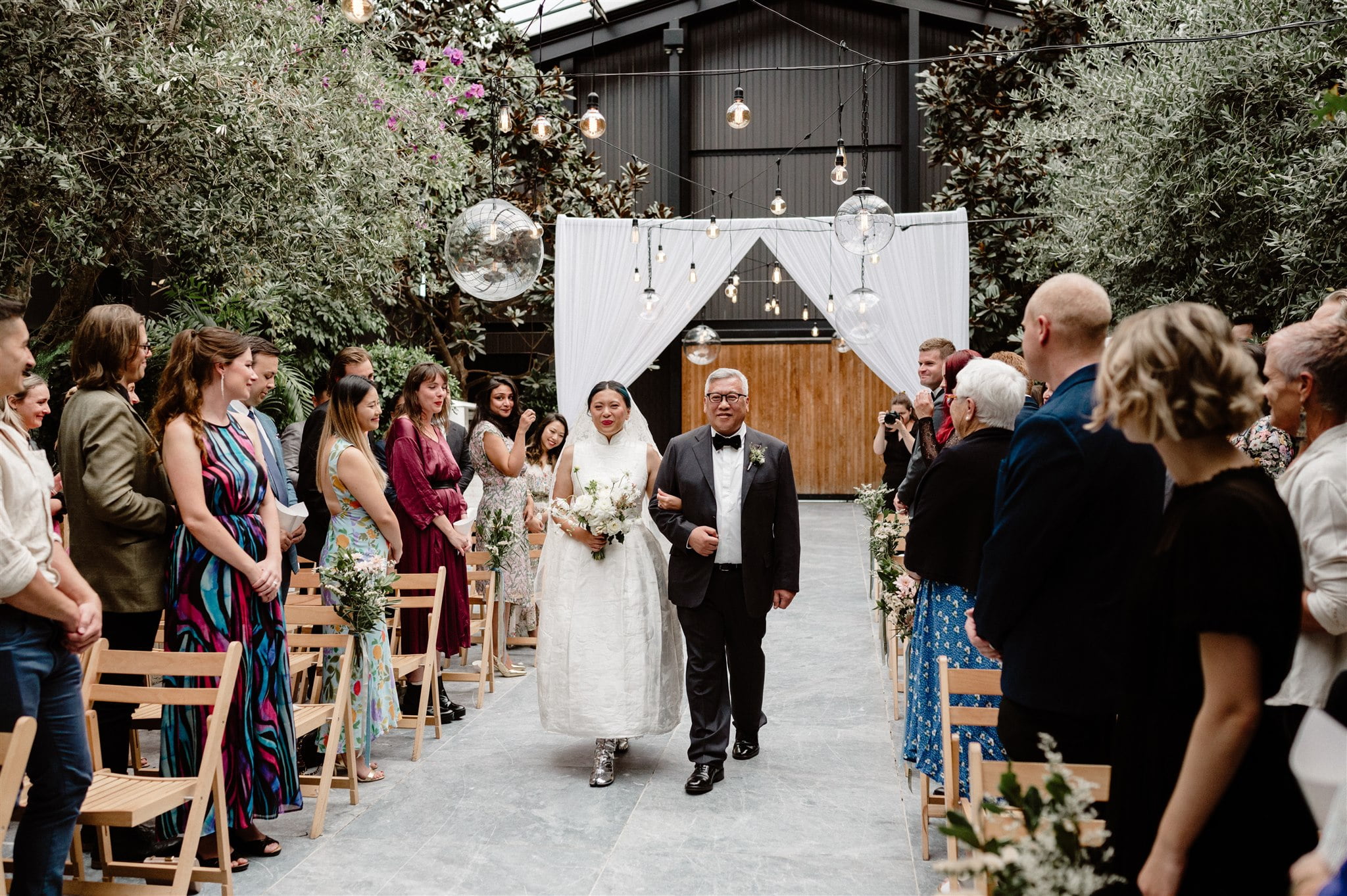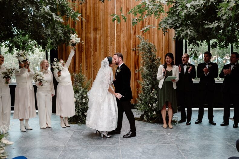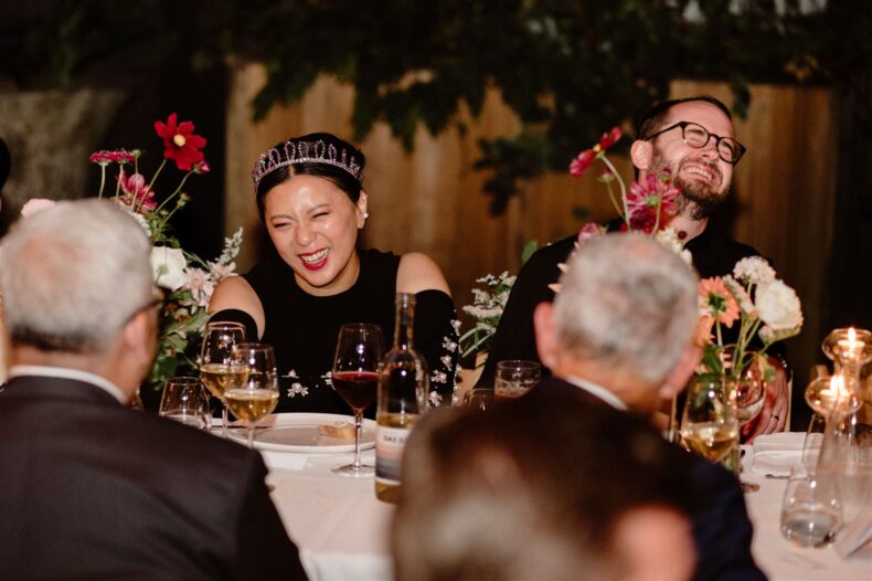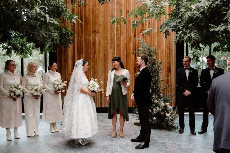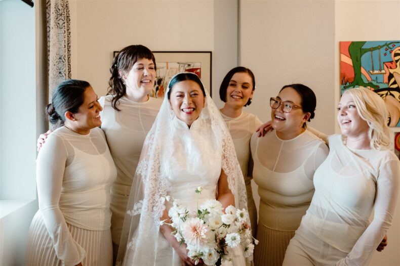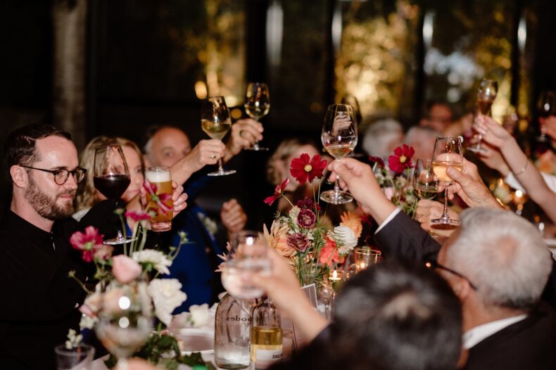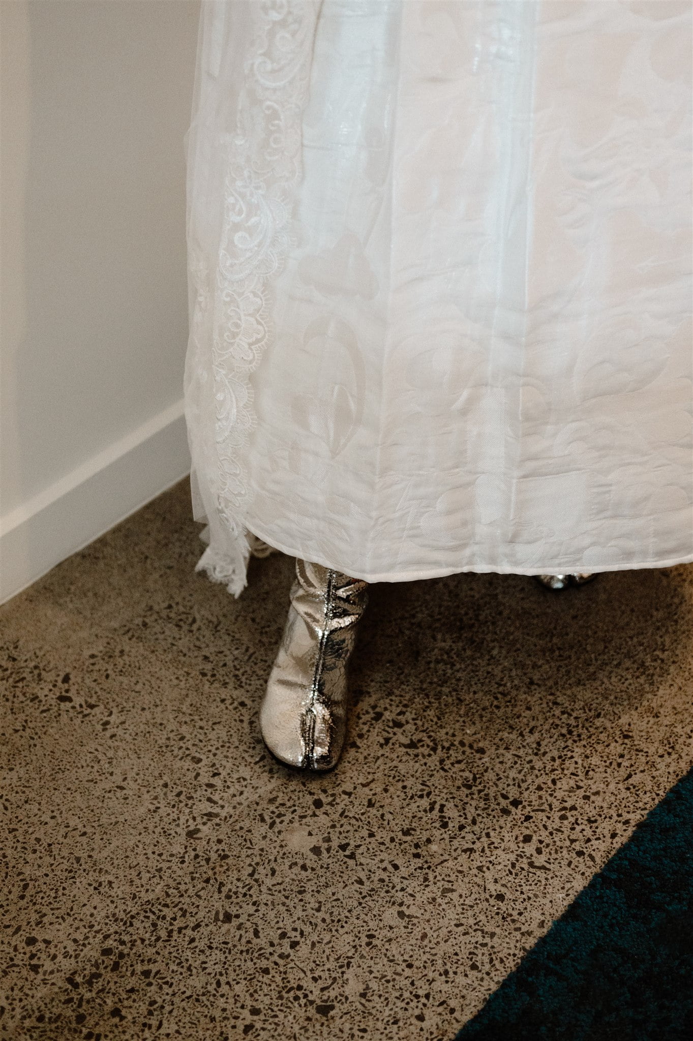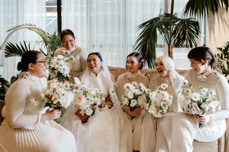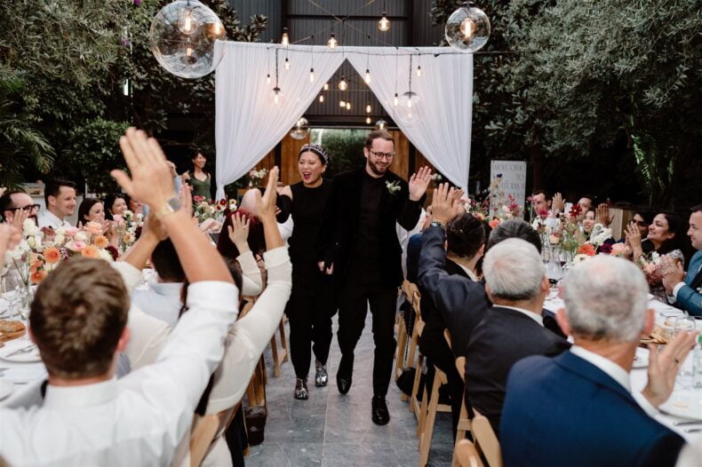 Meet Melody and Lucian, better known to their people as Mel and Goose. After 12 years together, they got married in the heart of Auckland at Glasshouse, and tell us they wanted it to “feel warm, romantic and natural. We created a cosy vibe in the evening as if our guests were coming over to our house to have dinner.” So sweet. Throw in the bride’s EPIC silver boots and killer reception outfit, and you’ve got yourself a good time. Kasia Kolmas was on-hand to catch the whole delish day on camera. Come on, let’s scroll…